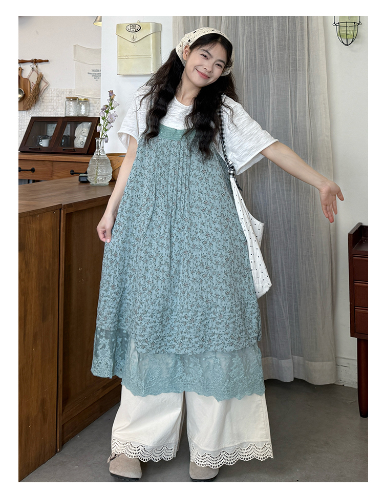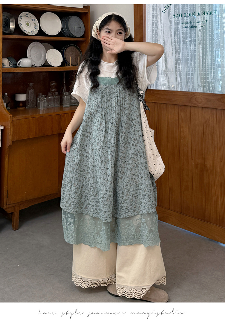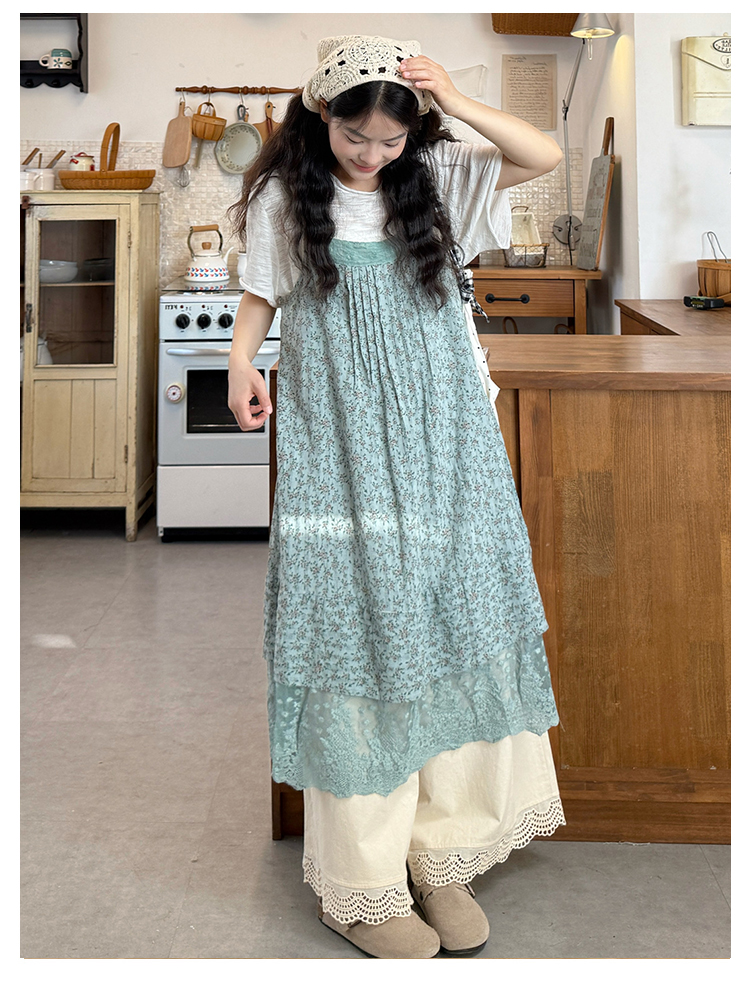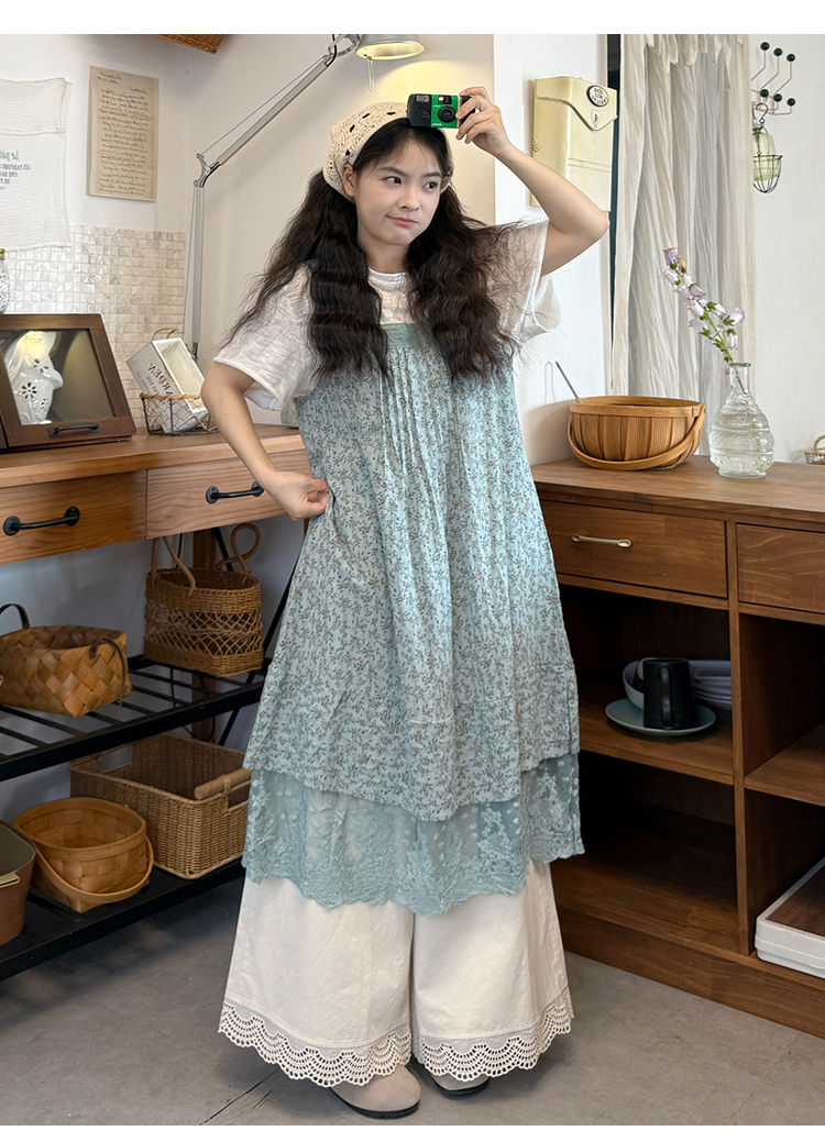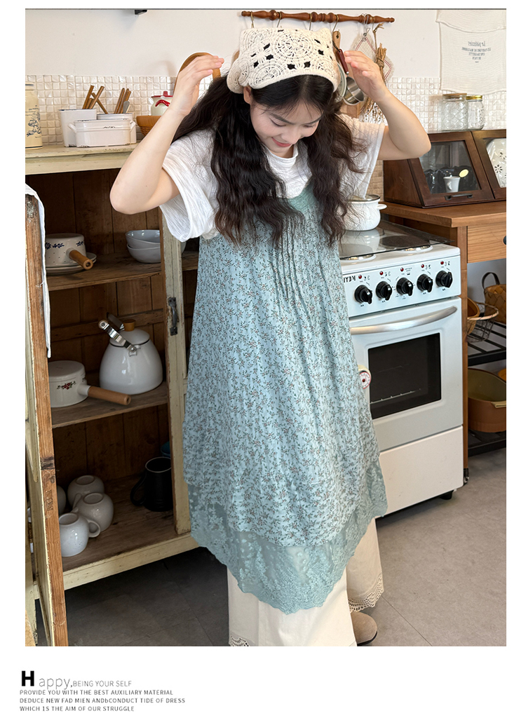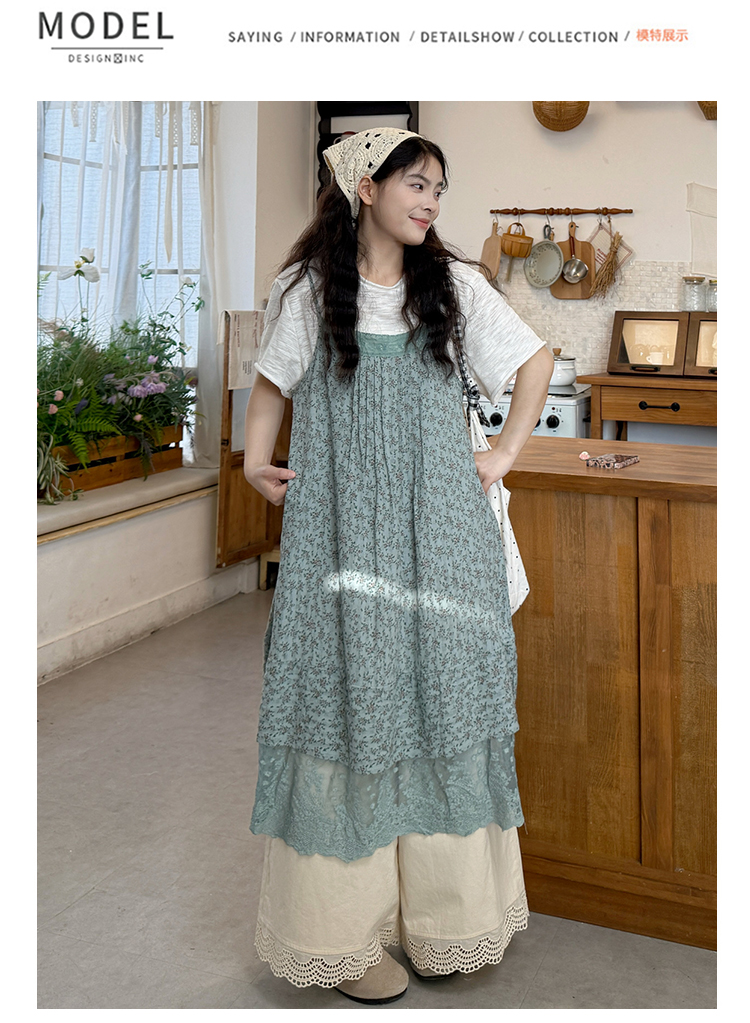 실사 2026 여름 섹션 임산부 자수 레이스 슬립 드레스 스택 착용 화이트 티셔츠 레이스 반 스커트 세트