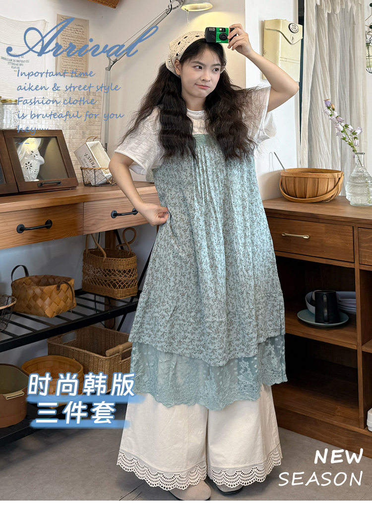 실사 2026 여름 드레스 새로운 레이스 t 치마 작은 꽃 베스트 반신 스커트 3종 세트