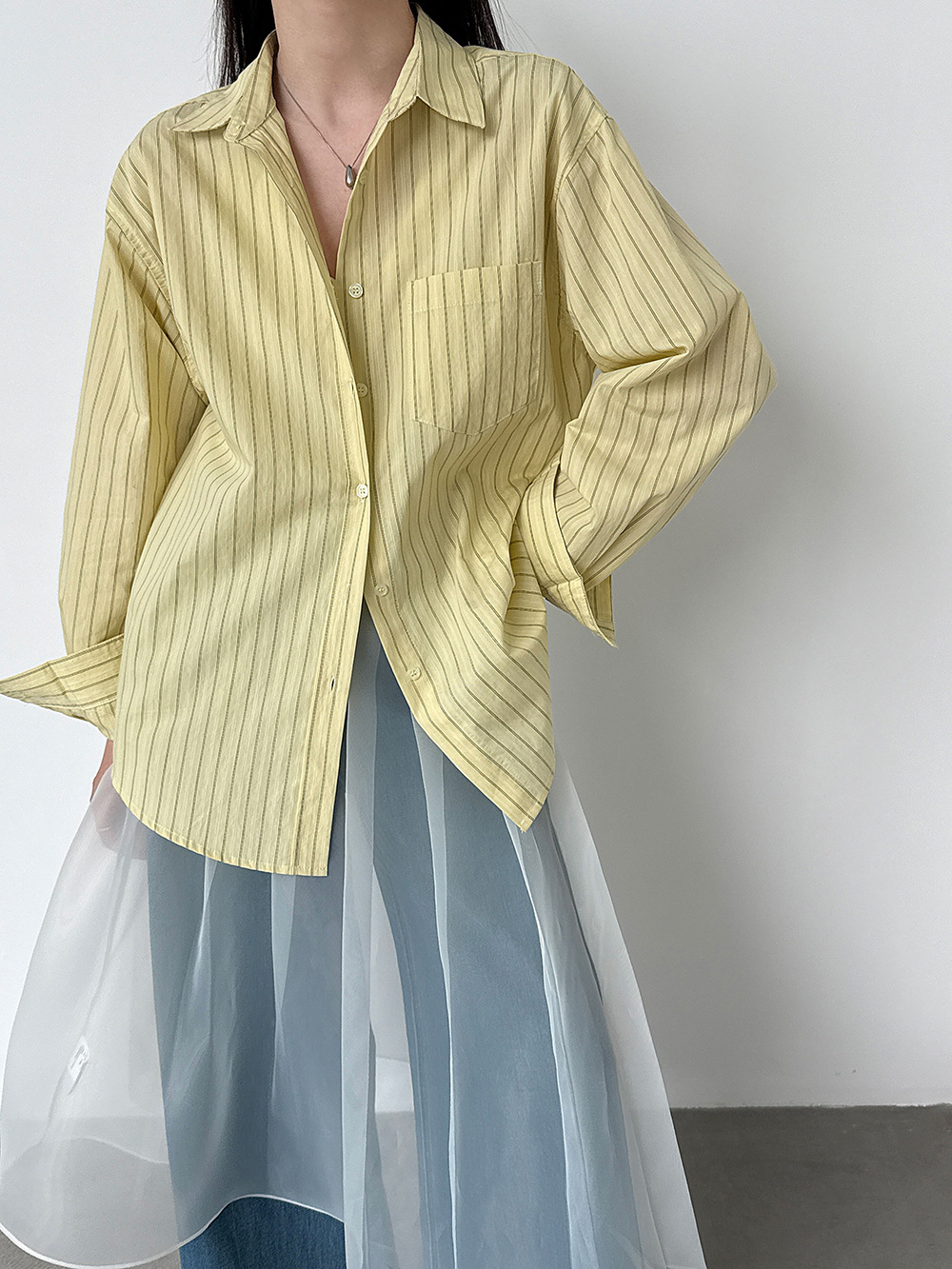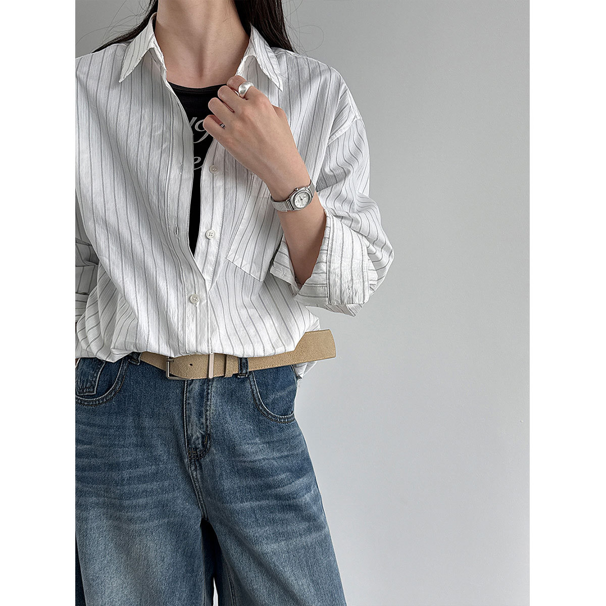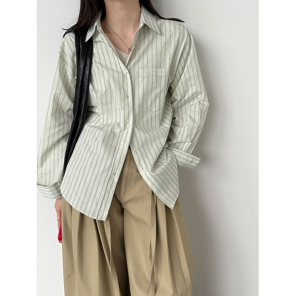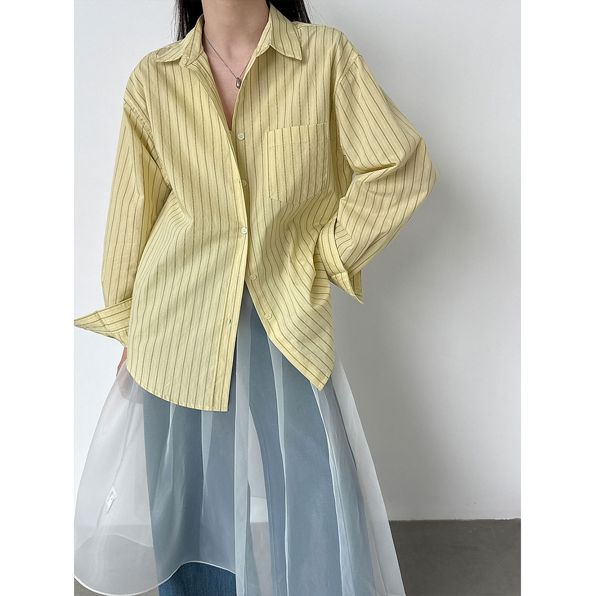 한 부서 느긋한 바람 핀 스트라이프 셔츠 여성 2026 봄 새로운 다용도 슬림해 보이는 자외선 차단 재킷