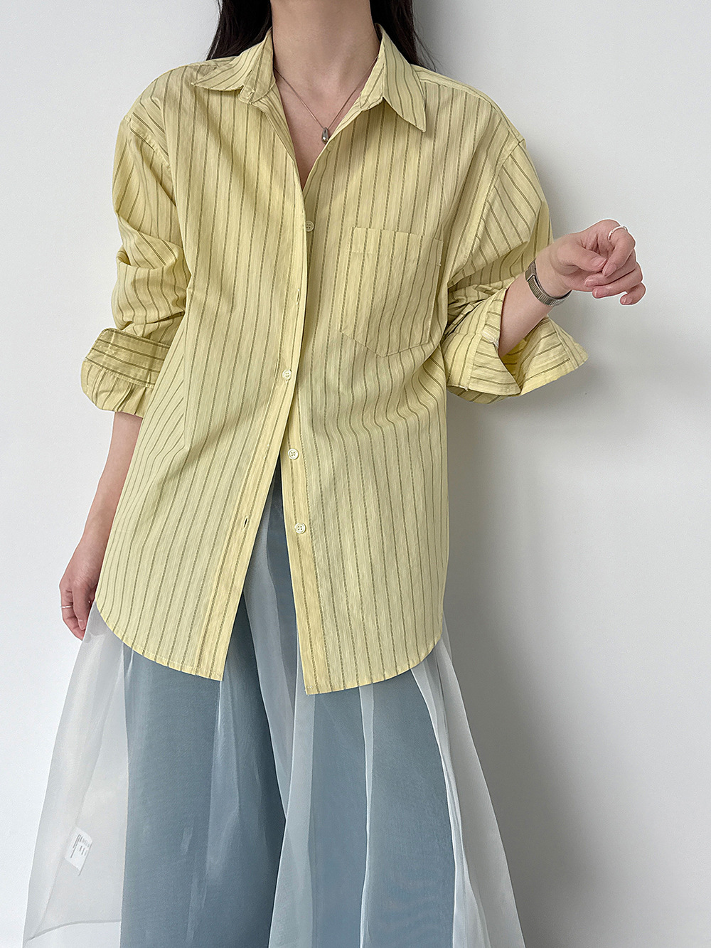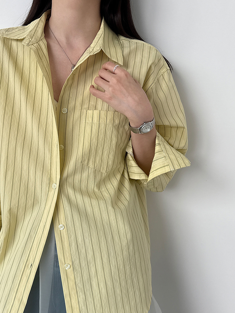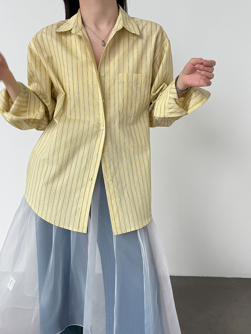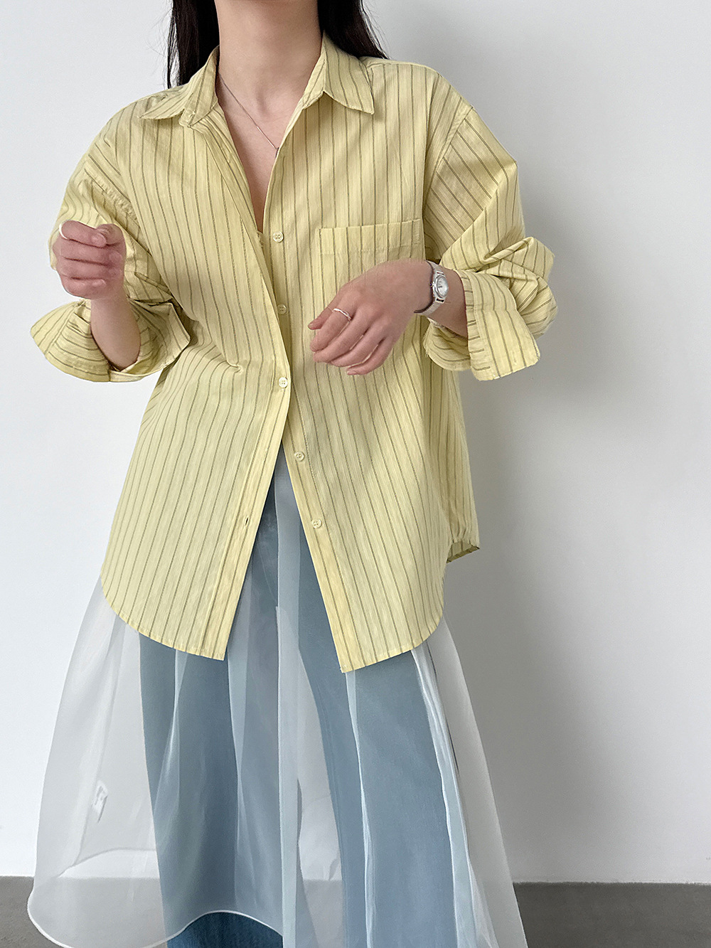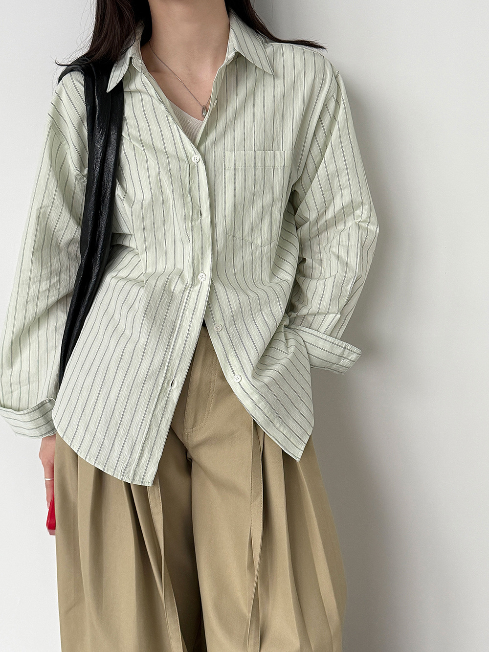 한 부서 느긋한 바람 핀 스트라이프 셔츠 여성 2026 봄 새로운 다용도 슬림해 보이는 자외선 차단 재킷