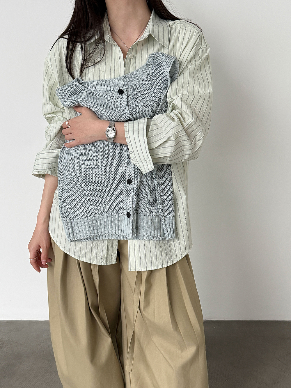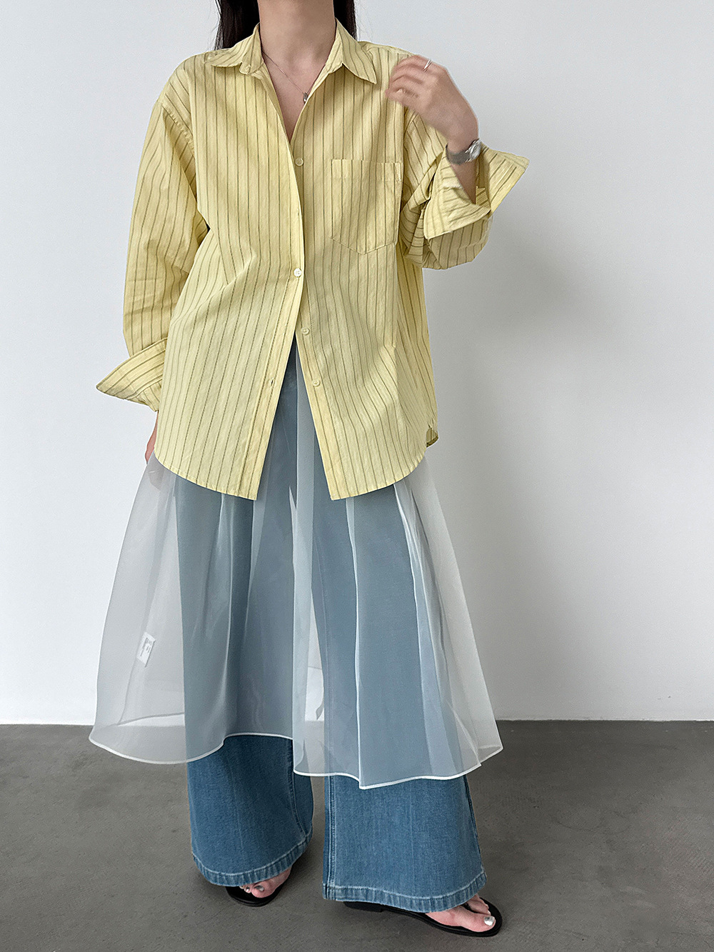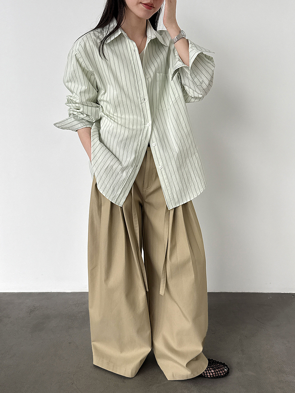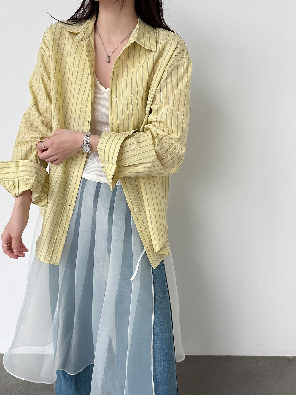 한 부서 느긋한 바람 핀 스트라이프 셔츠 여성 2026 봄 새로운 다용도 슬림해 보이는 자외선 차단 재킷