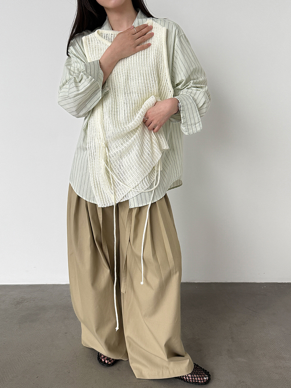 한국 스타일 레이스 조각 민소매 조끼 여성 슬림해 보이는 표지 고기 불규칙 스택 착용 맨위