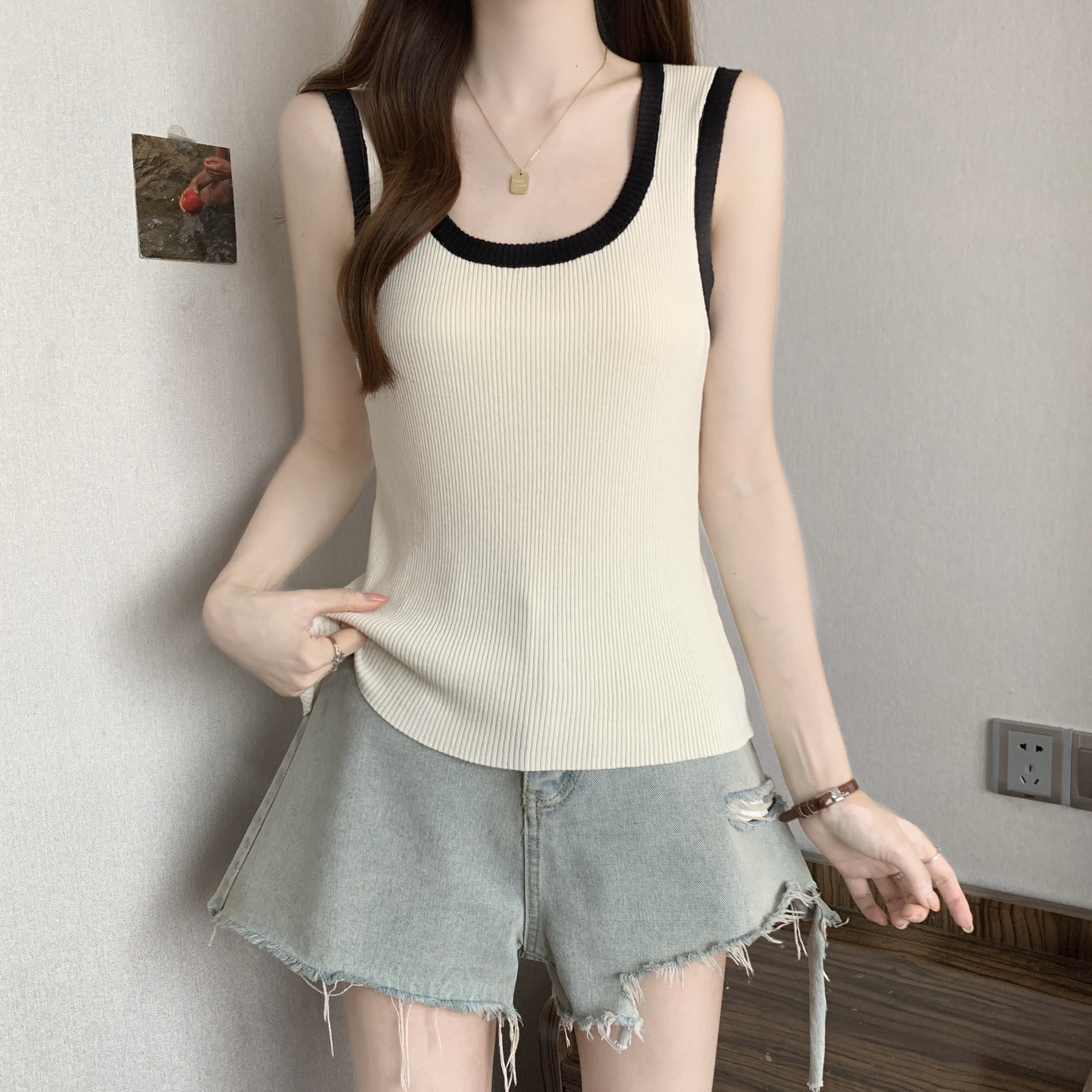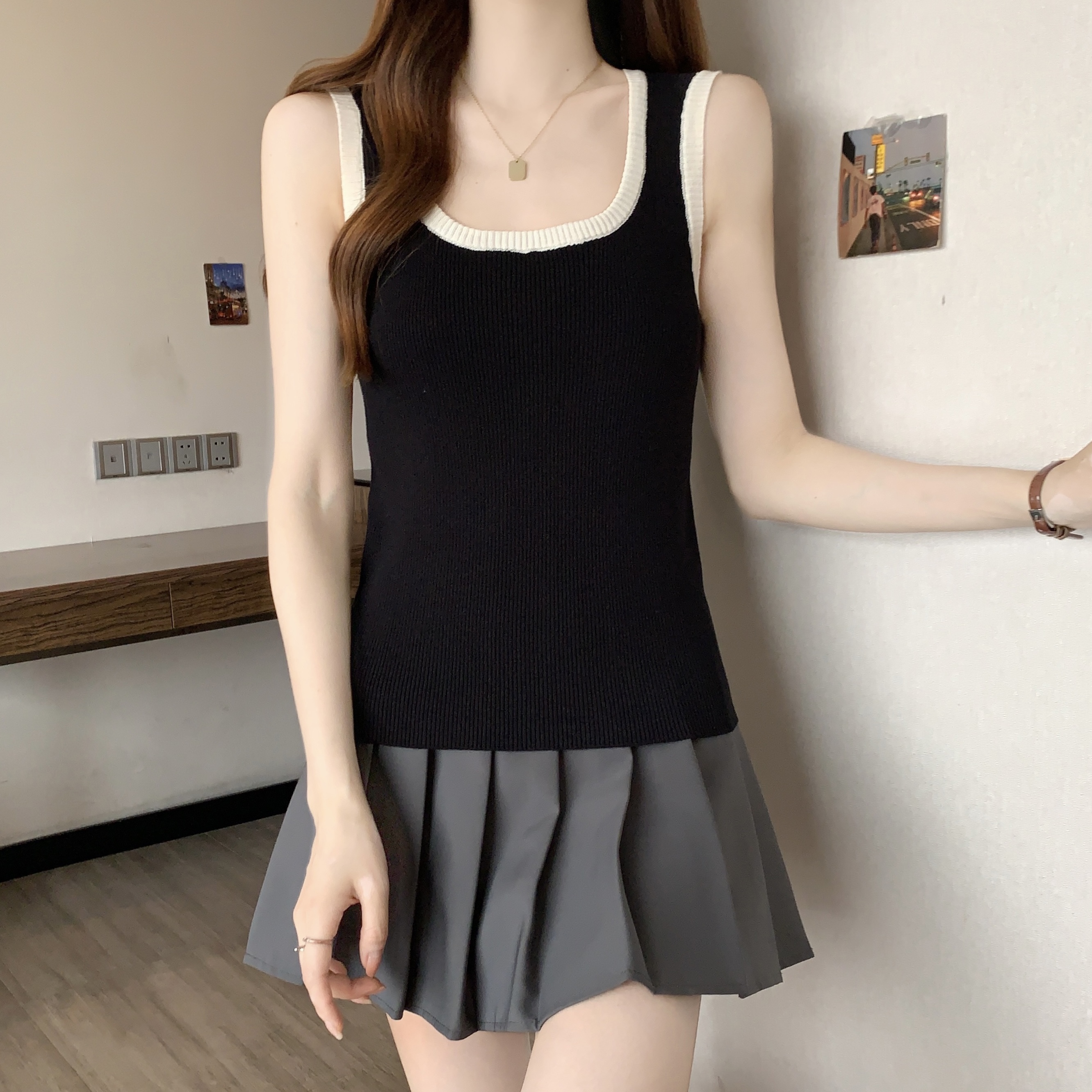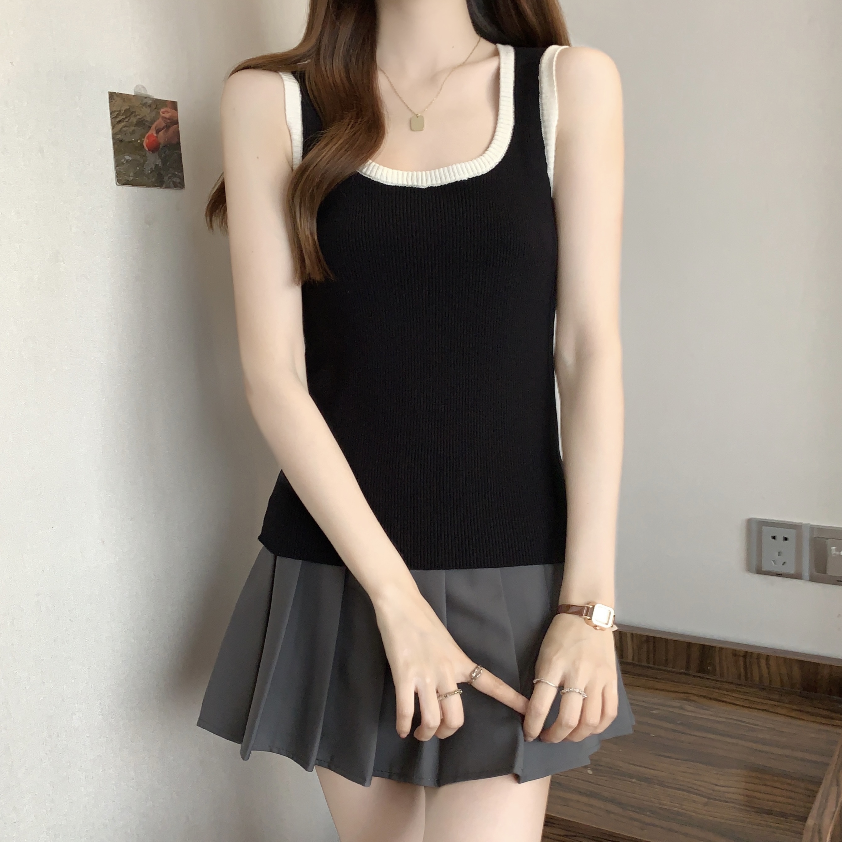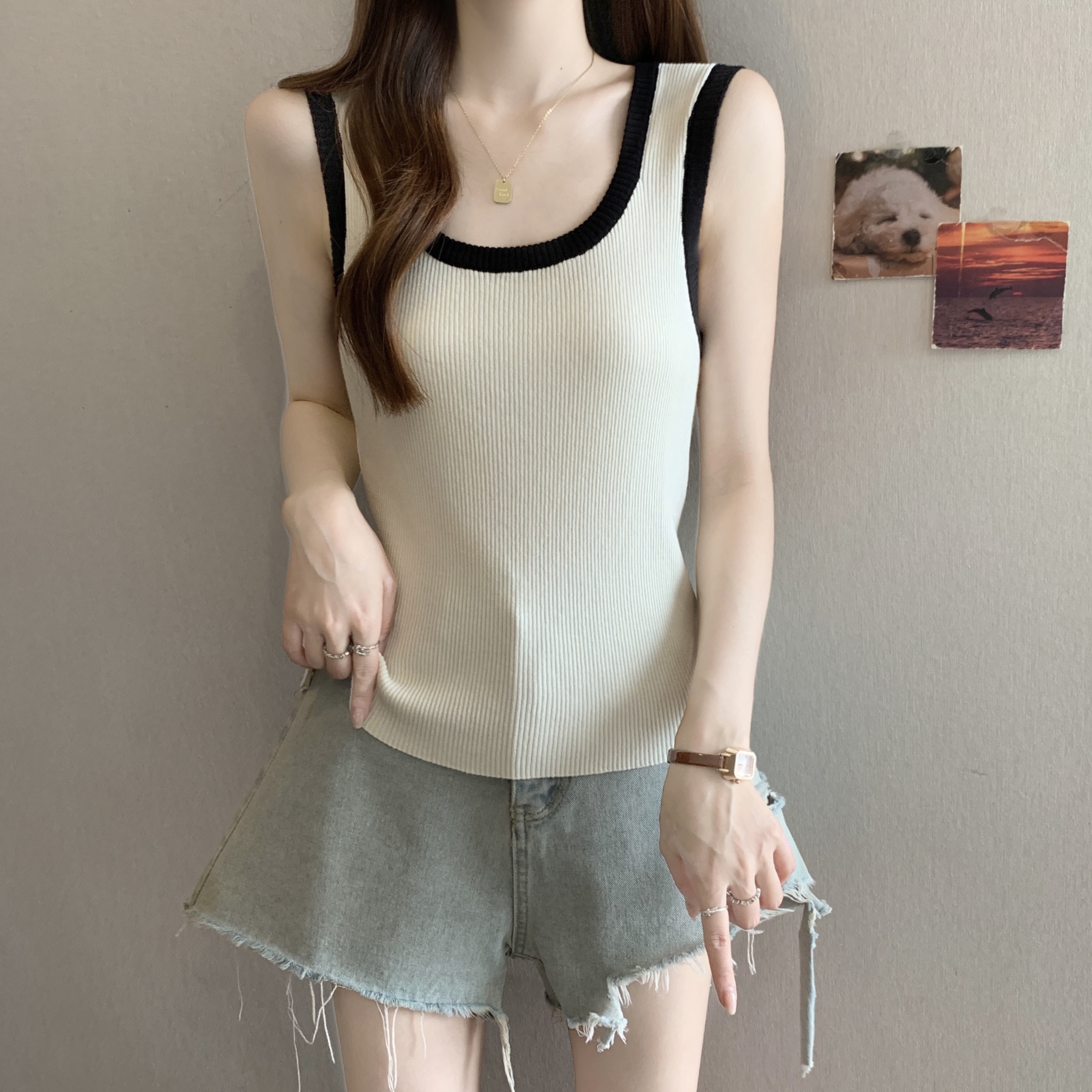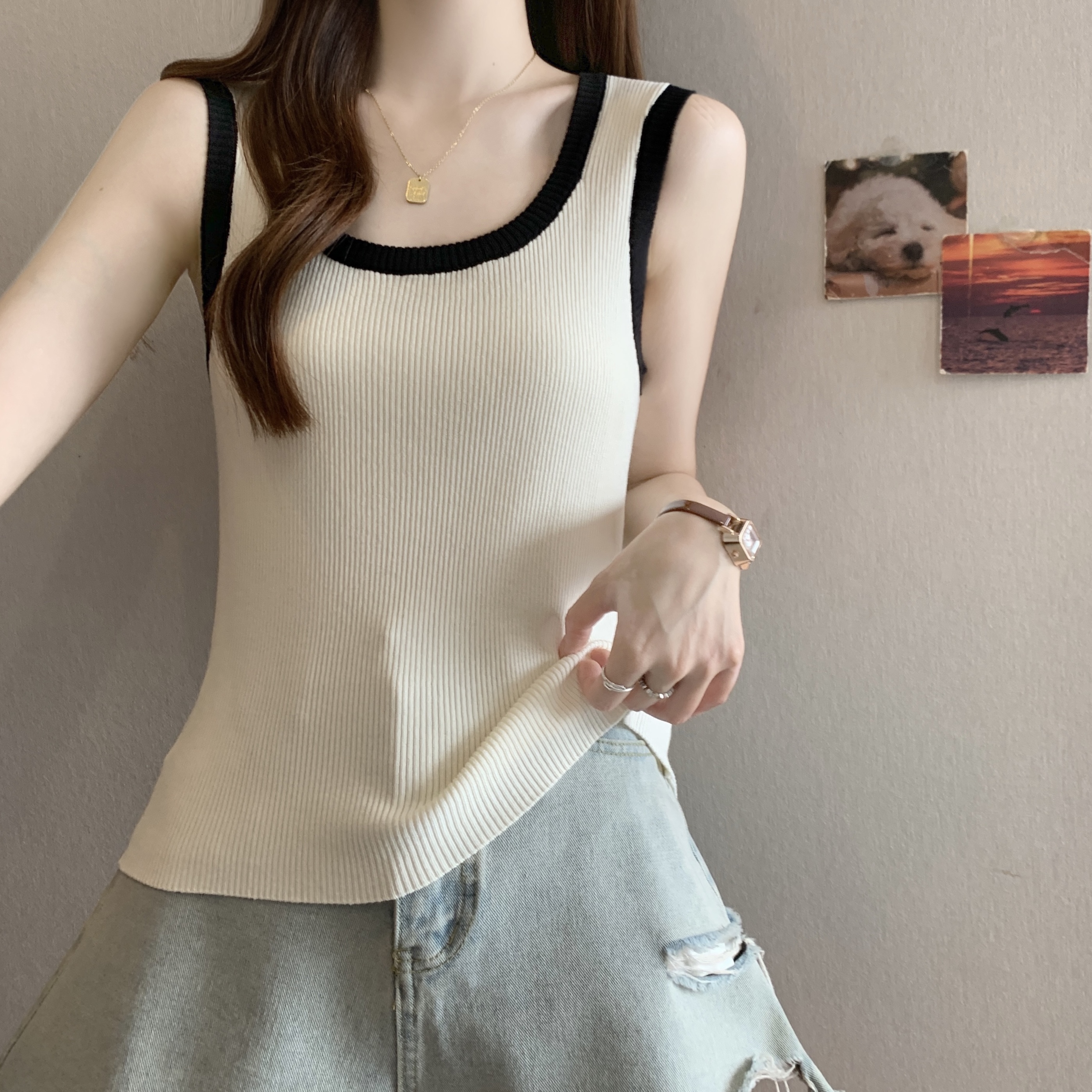 실사 빅 사이즈 지방 mm 새로운 디자인 센스 달콤한 스타일 미니멀리즘 노출 방지 조끼 슬립 슬림해 보이는 표지 고기 맨위