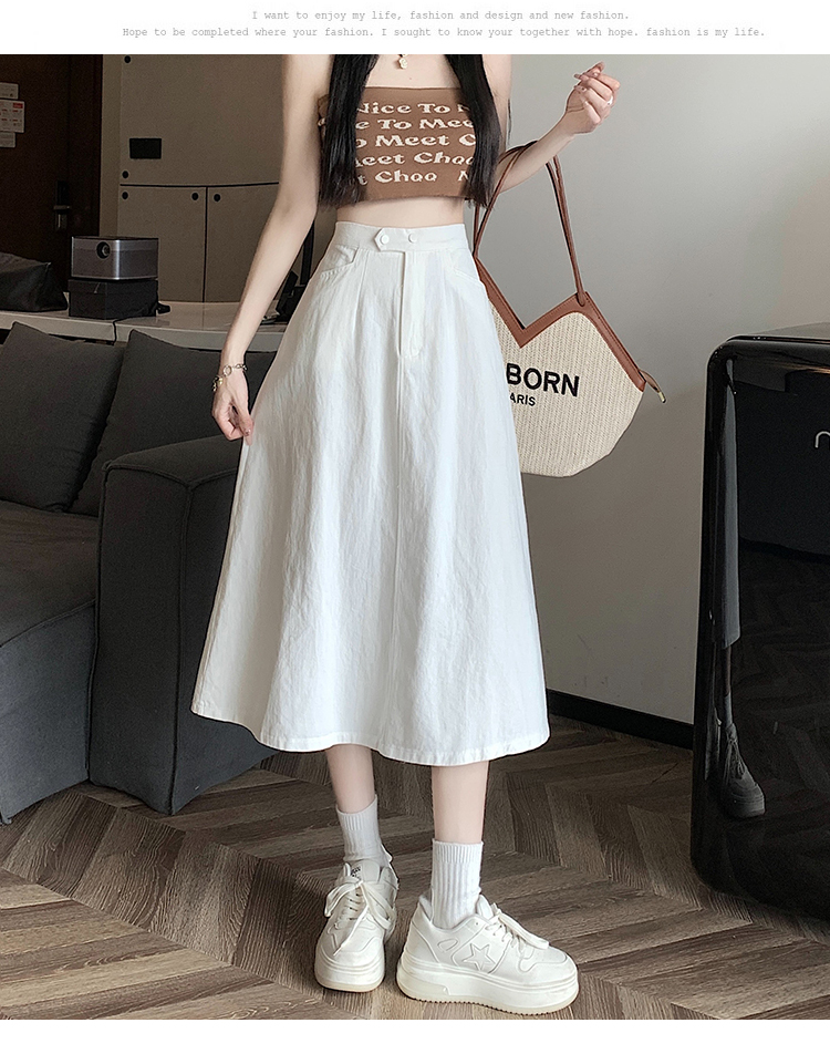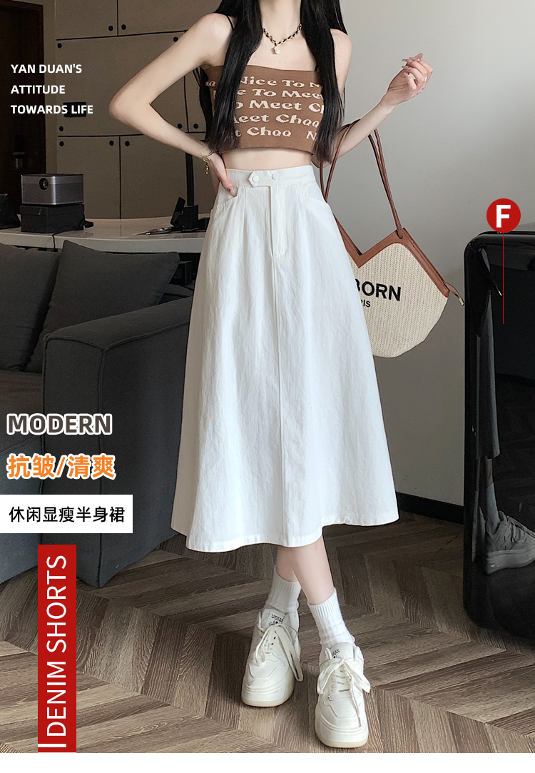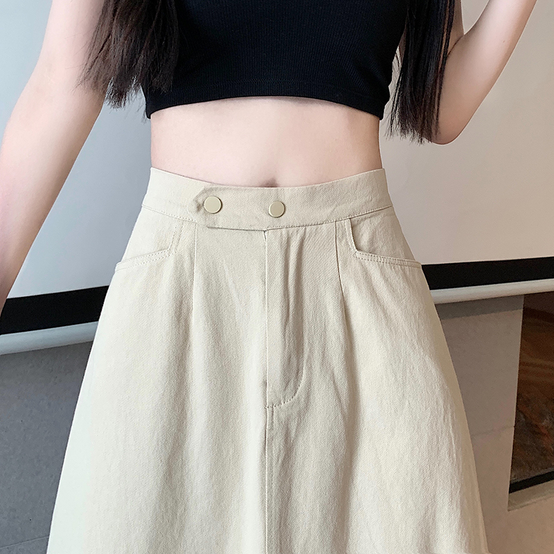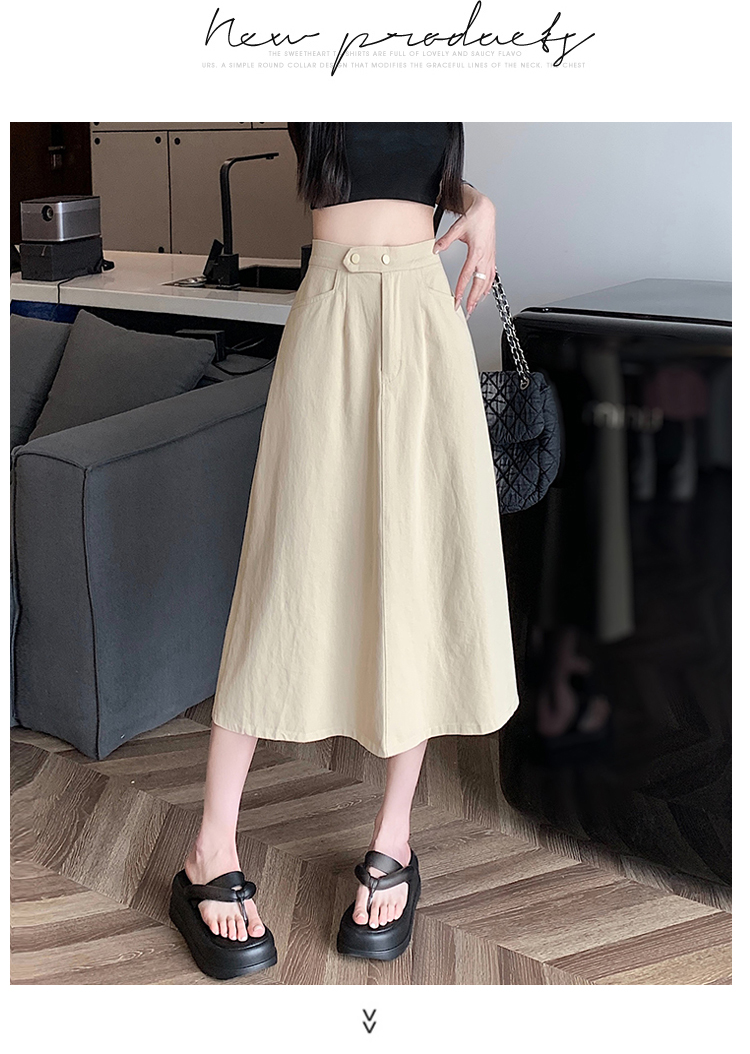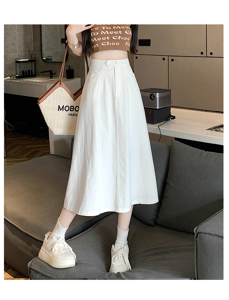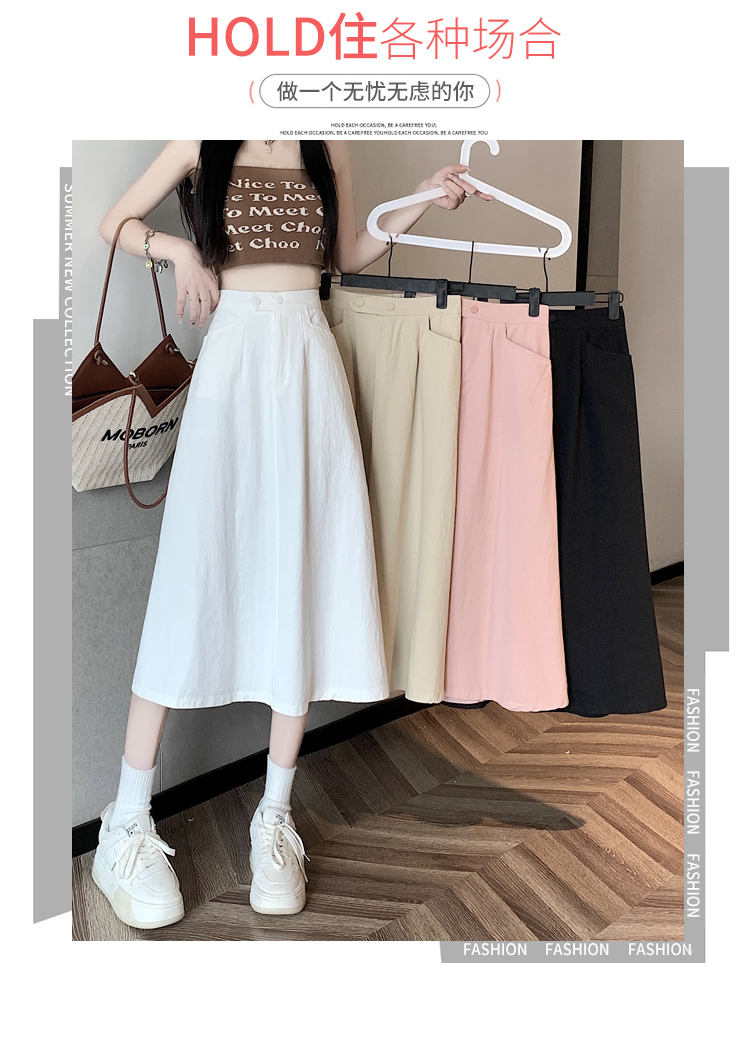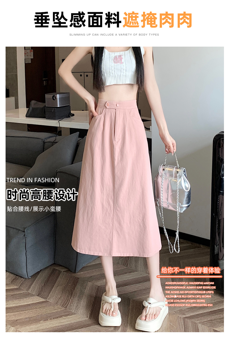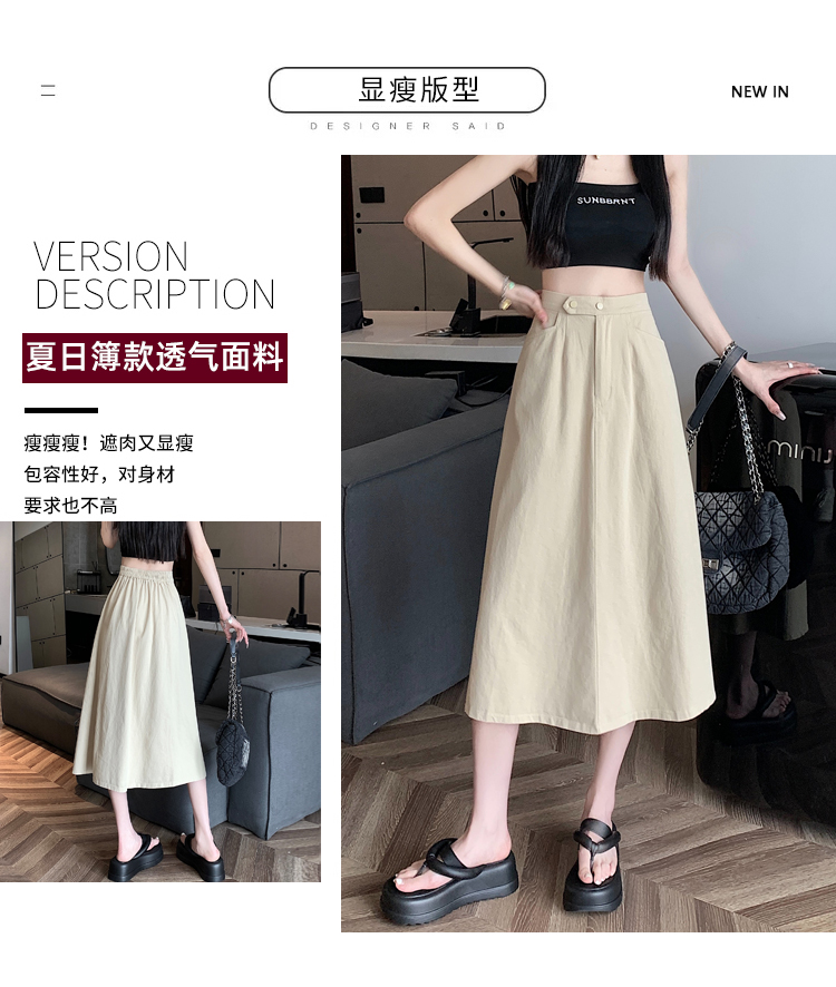 실사 하이웨이스트 표지 넓적 다리 중 롱 스커트 여성 여름 새로운 아마 한국 스타일 다용도 한 마디 큰 진자 반신 스커트 벨트 포함