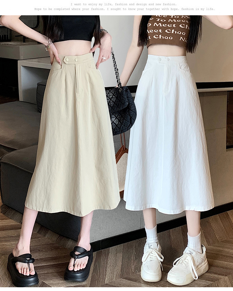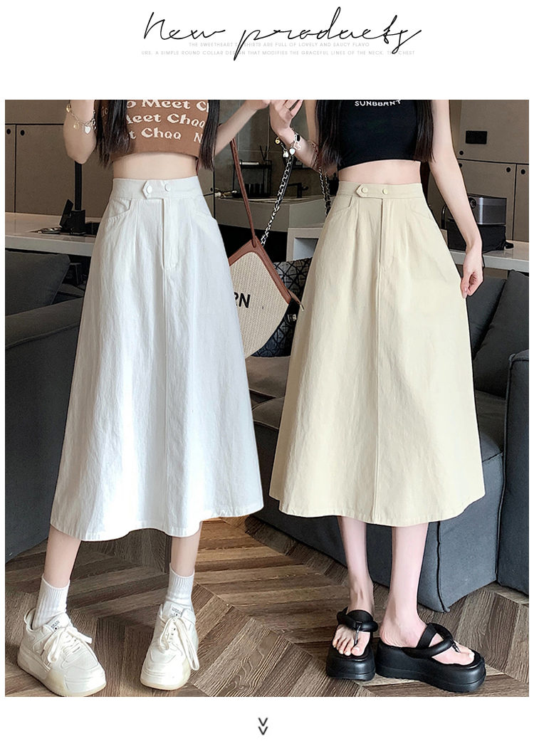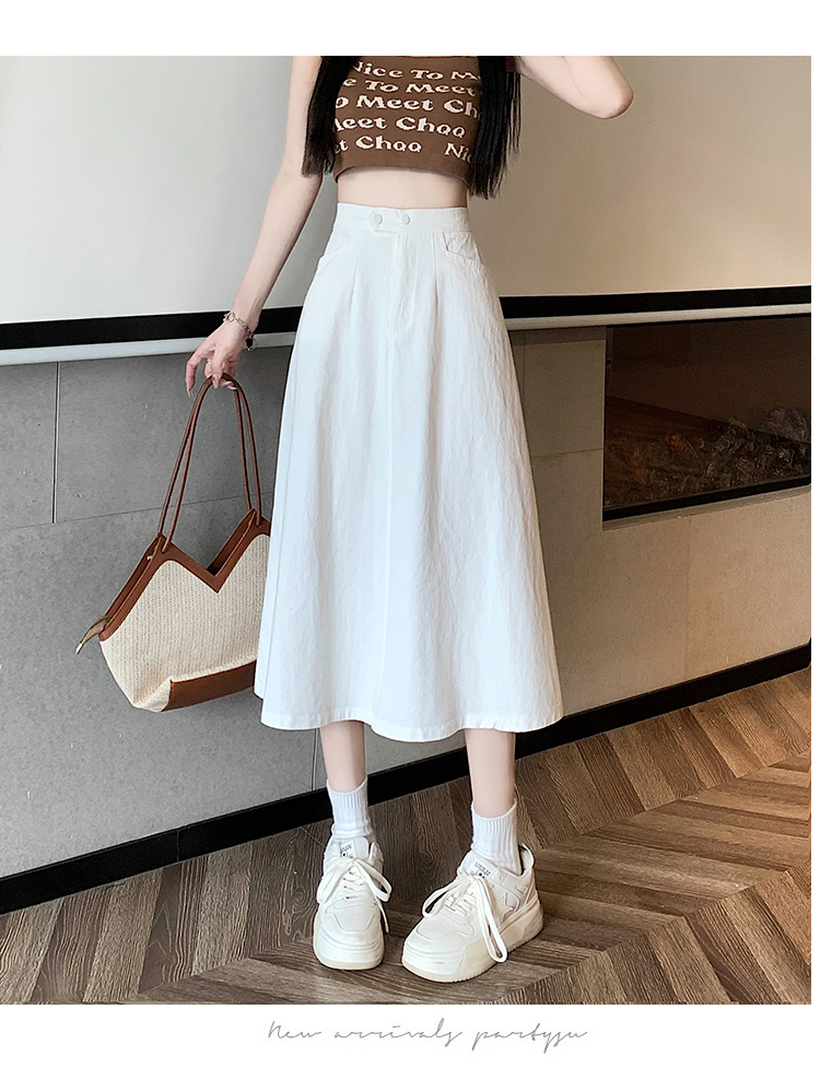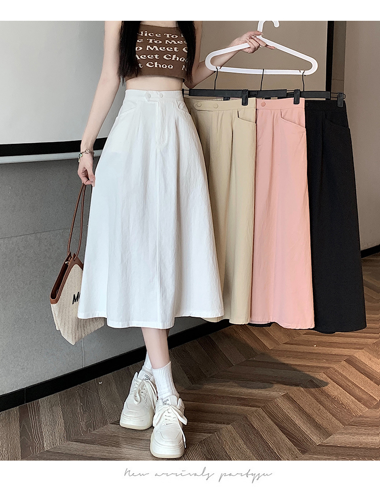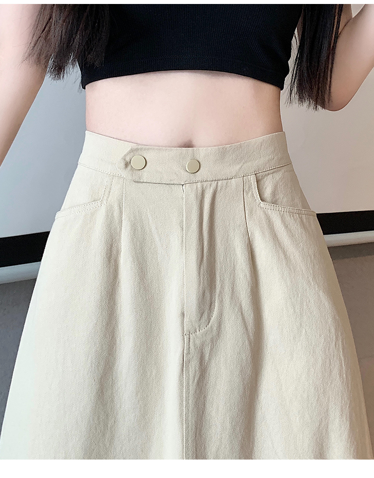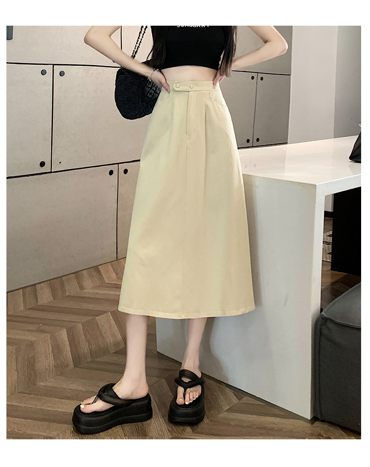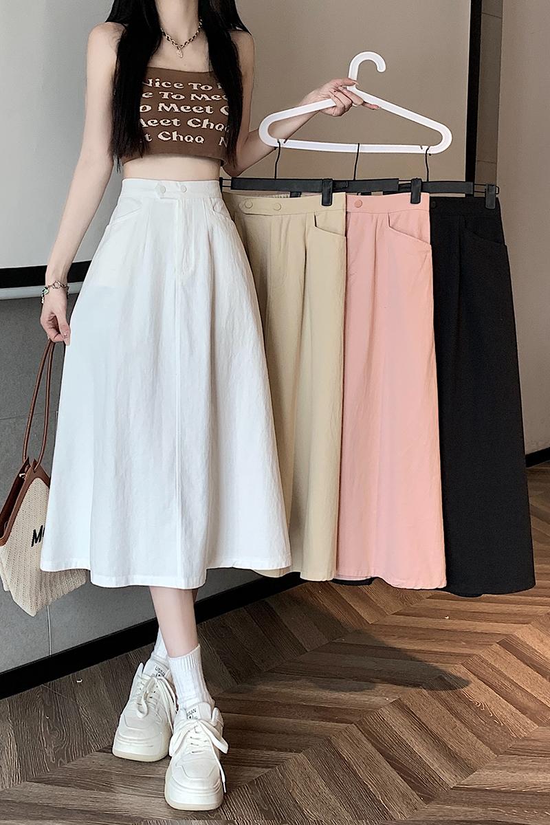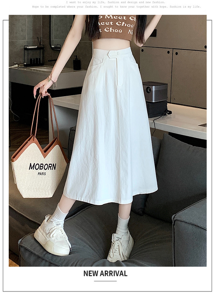 실사 하이웨이스트 표지 넓적 다리 중 롱 스커트 여성 여름 새로운 아마 한국 스타일 다용도 한 마디 큰 진자 반신 스커트 벨트 포함
