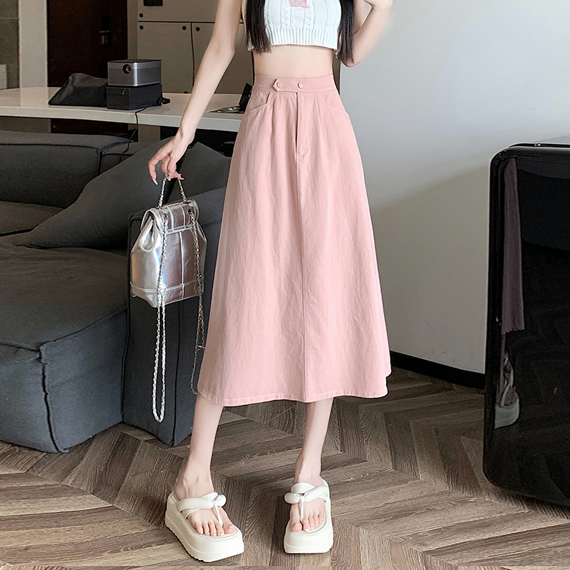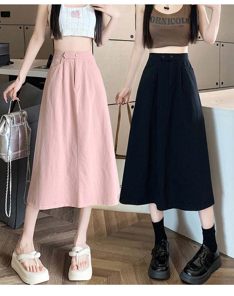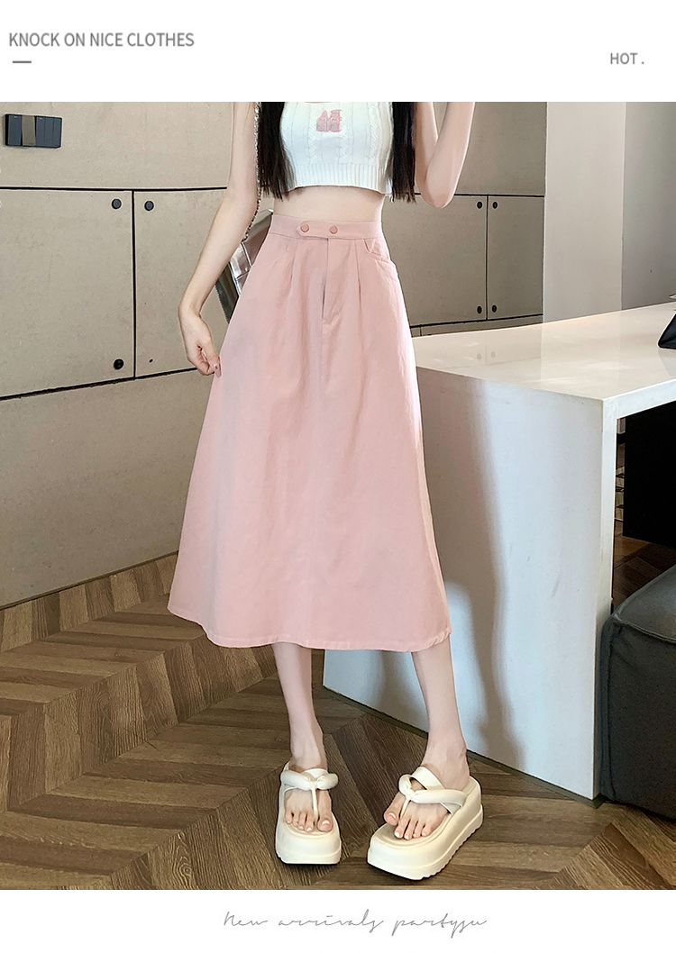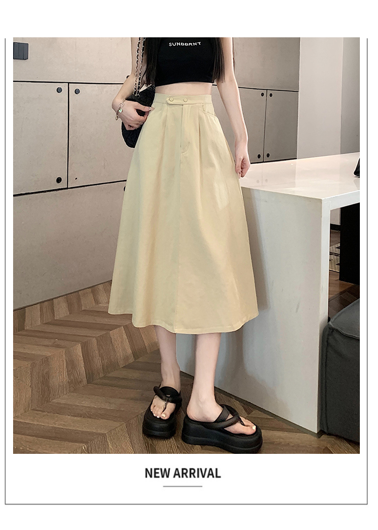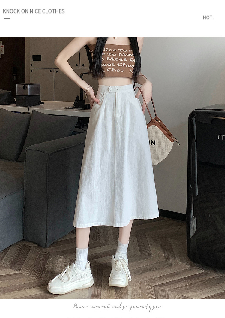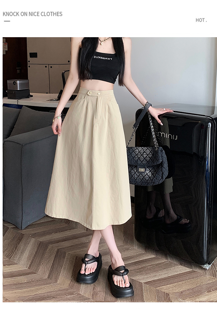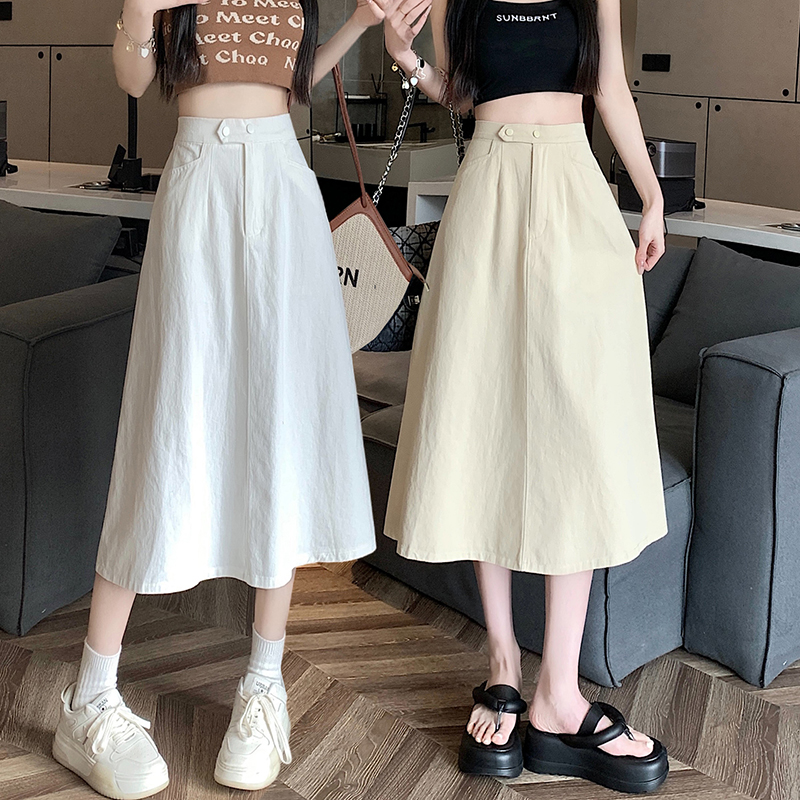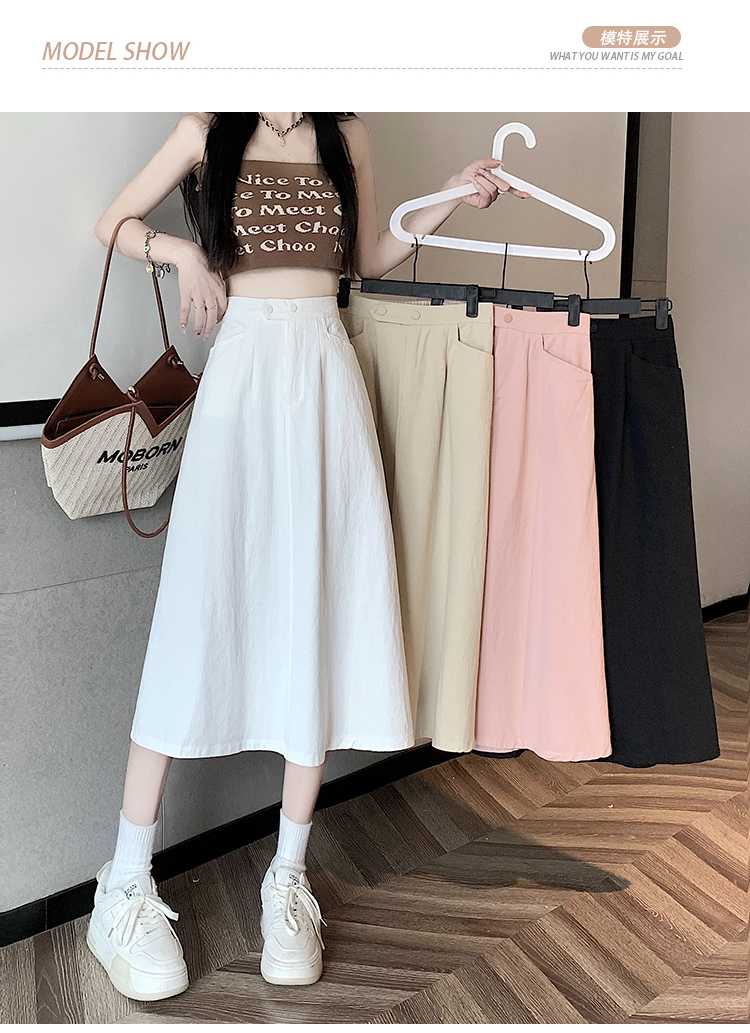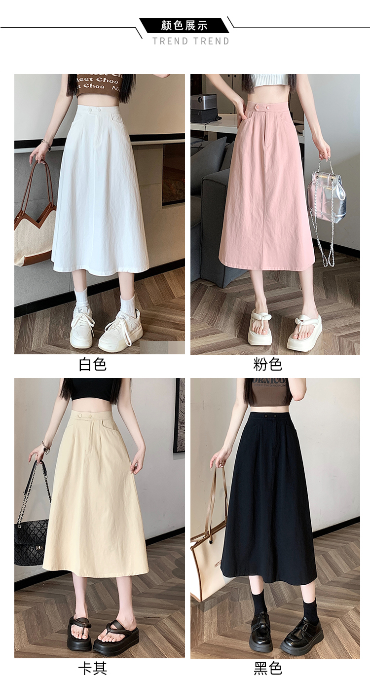 실사 하이웨이스트 표지 넓적 다리 중 롱 스커트 여성 여름 새로운 아마 한국 스타일 다용도 한 마디 큰 진자 반신 스커트 벨트 포함