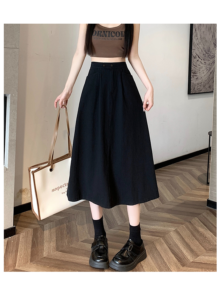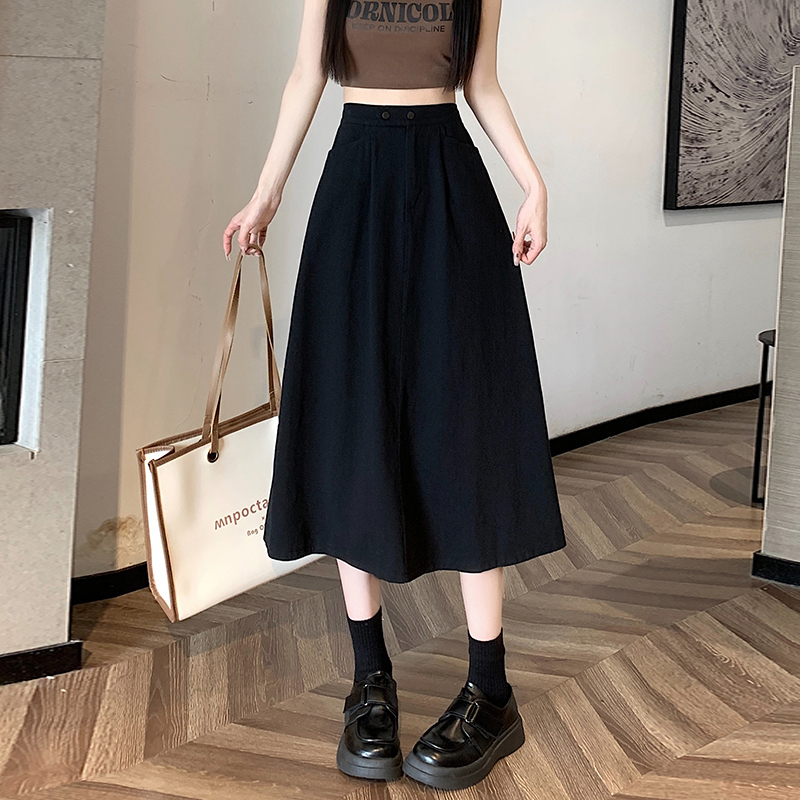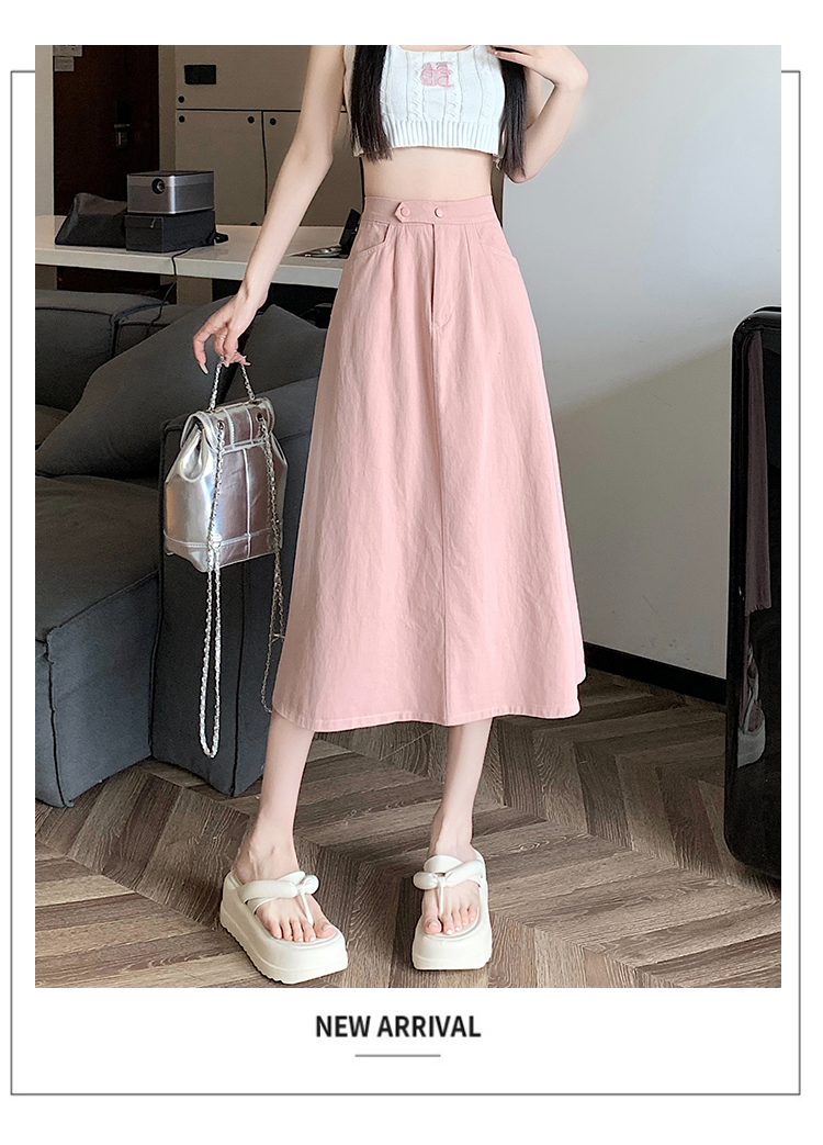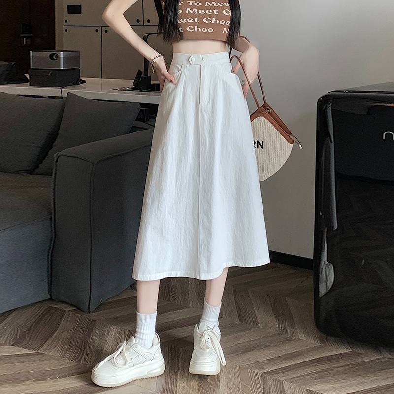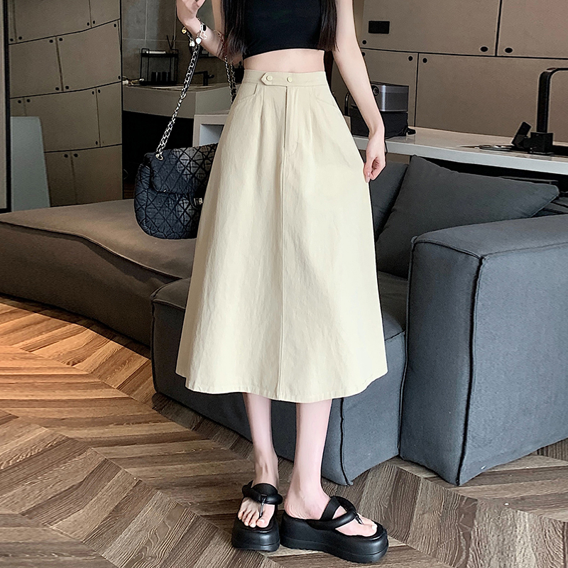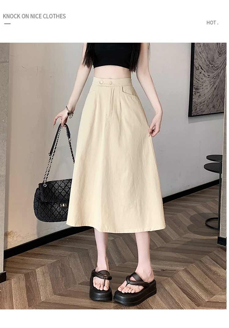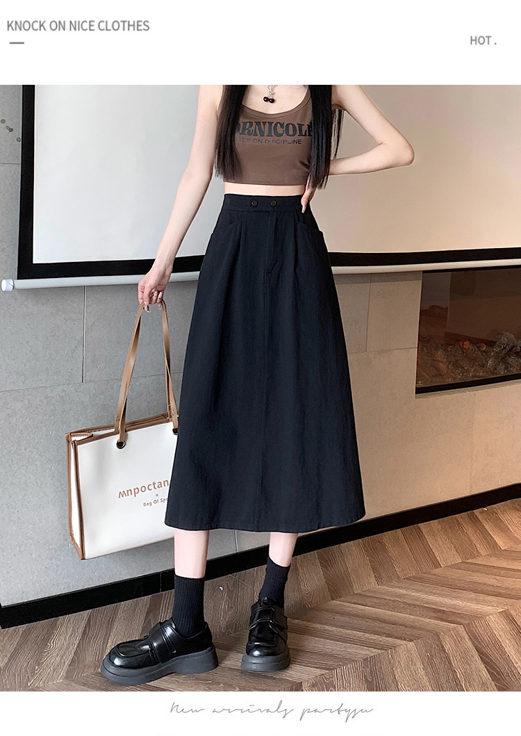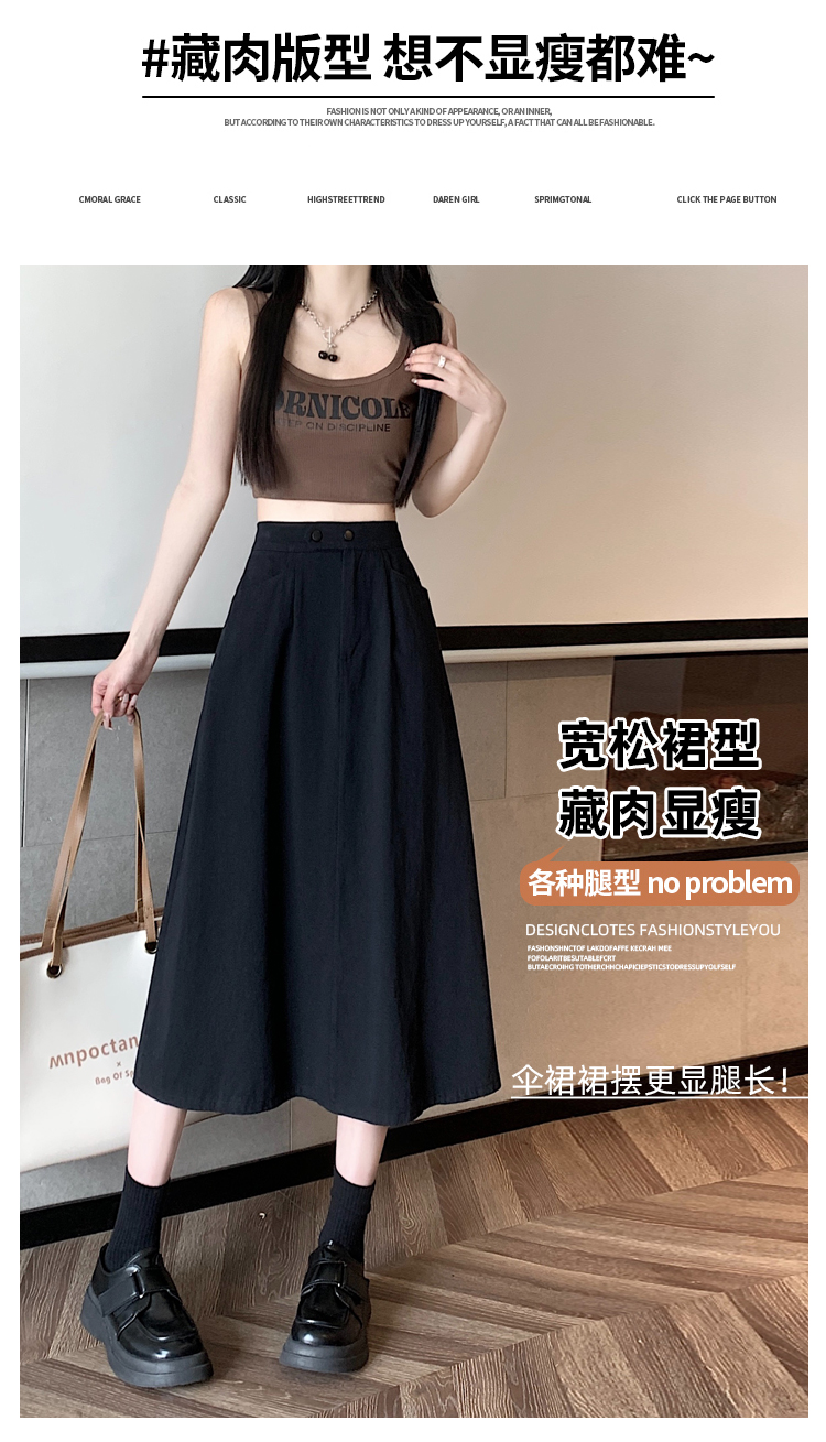실사 하이웨이스트 표지 넓적 다리 중 롱 스커트 여성 여름 새로운 아마 한국 스타일 다용도 한 마디 큰 진자 반신 스커트 벨트 포함