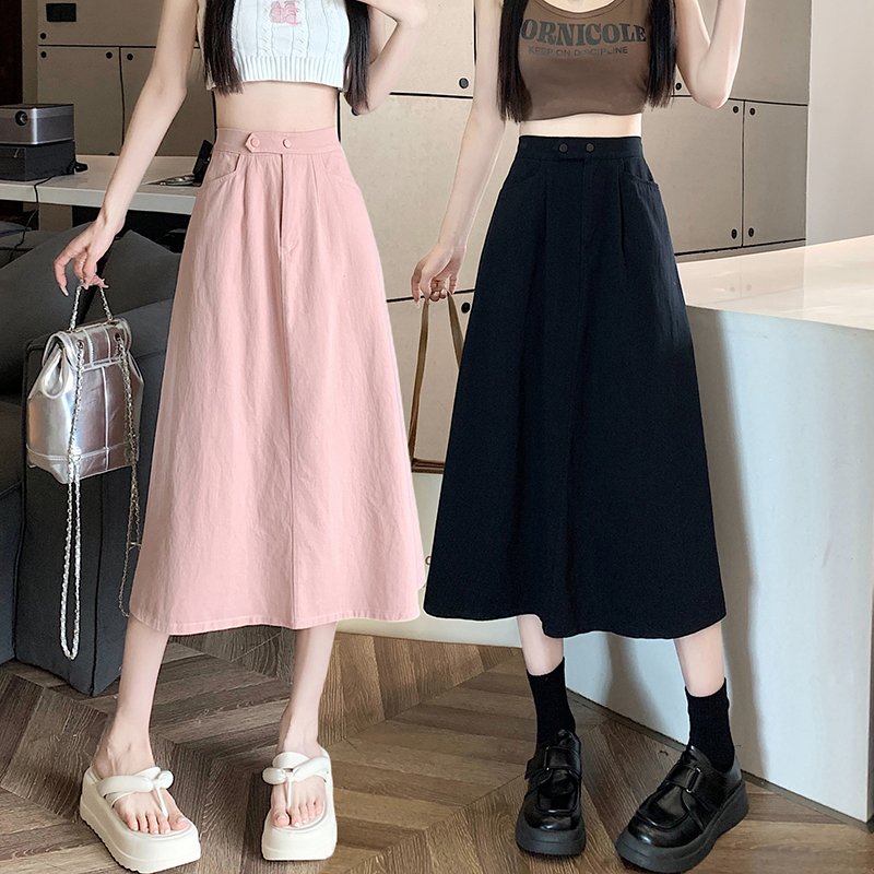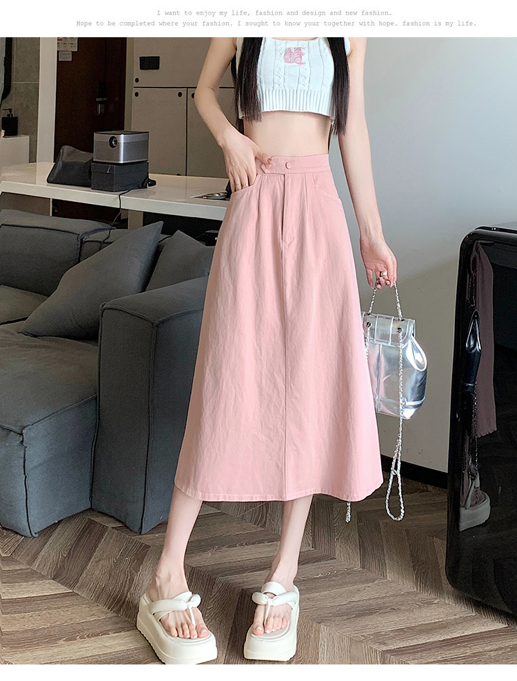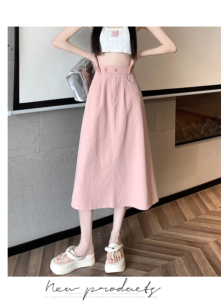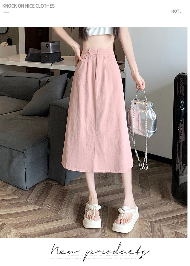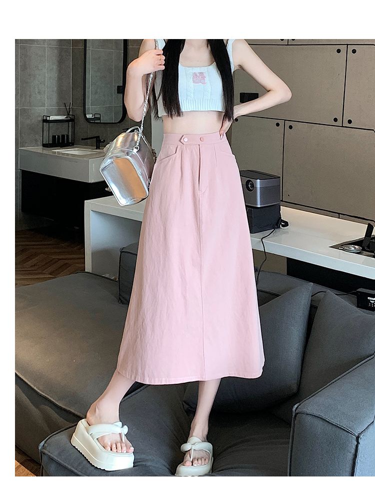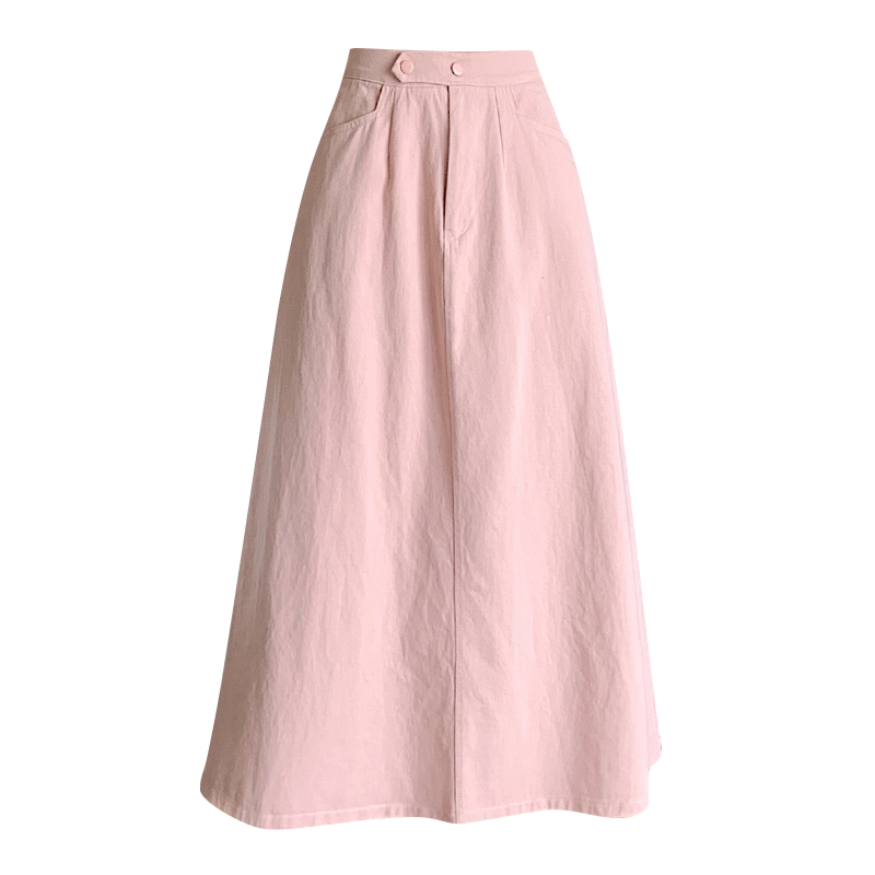 실사 하이웨이스트 표지 넓적 다리 워싱 데님 스커트 슬림해 보이는 사쿠라 꽃가루 한 마디 반신 스커트 중간 길이 워크웨어 치마 우산 치마