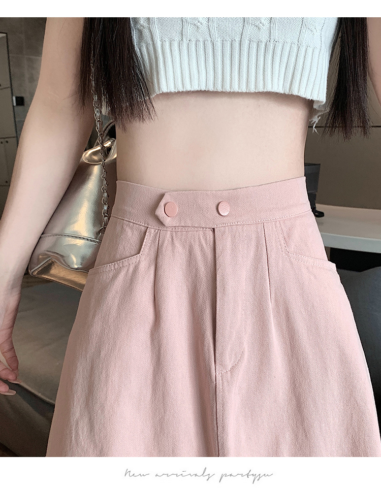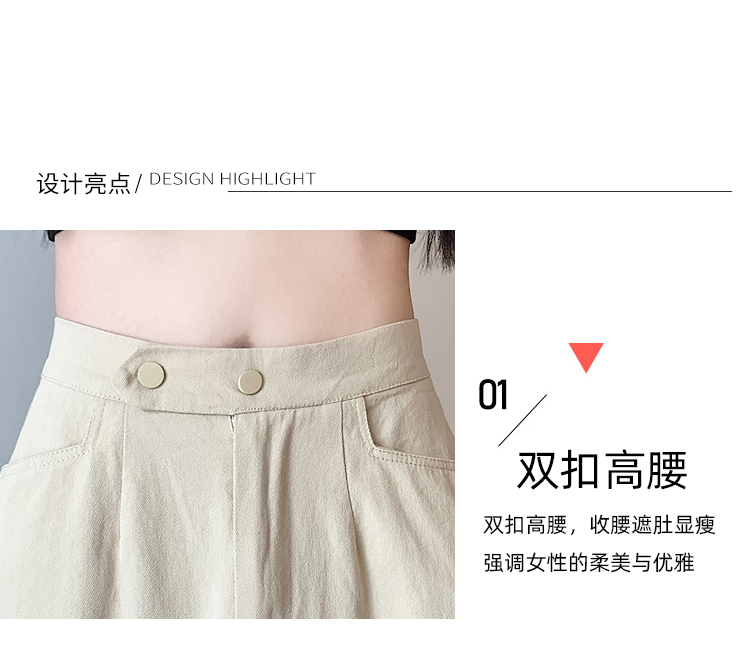 실사 여름 새로운 워시 물 면 밴딩 하이웨이스트 슬림해 보이는 루즈핏 캐주얼 스트레이트 도루 센스 와이드 레그 팬츠 9부 바지 여성