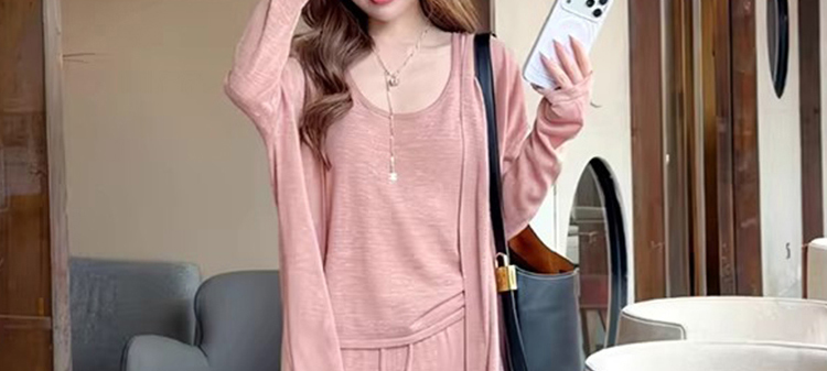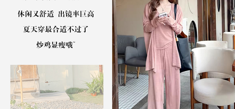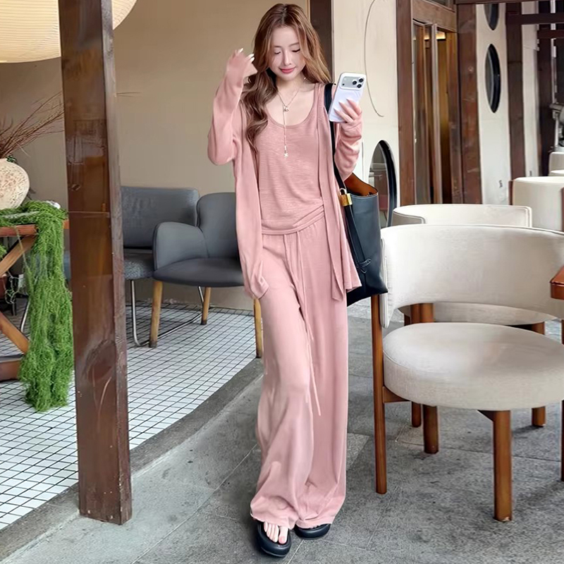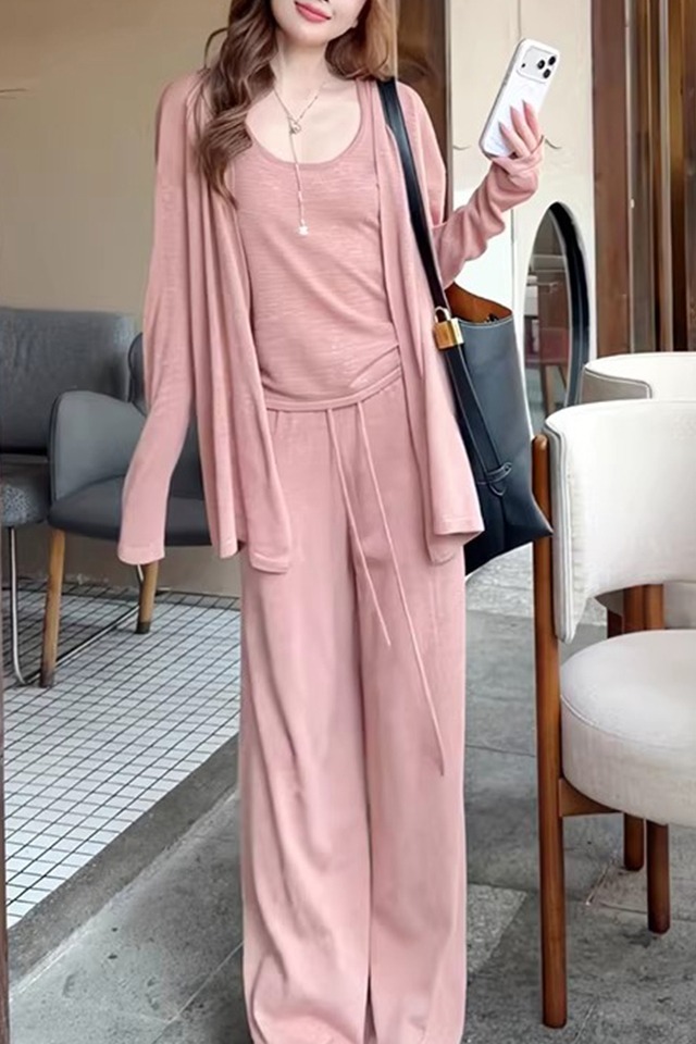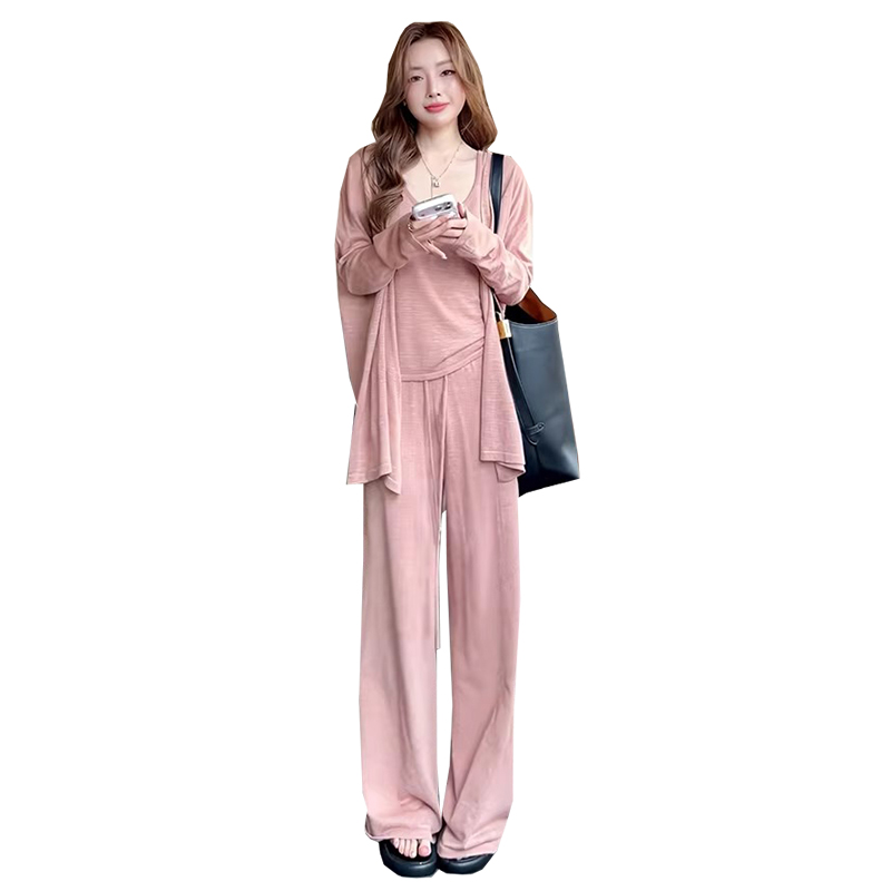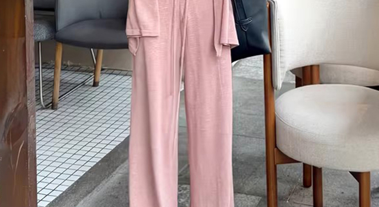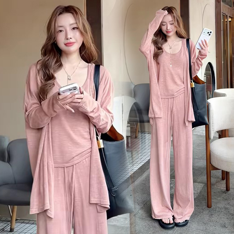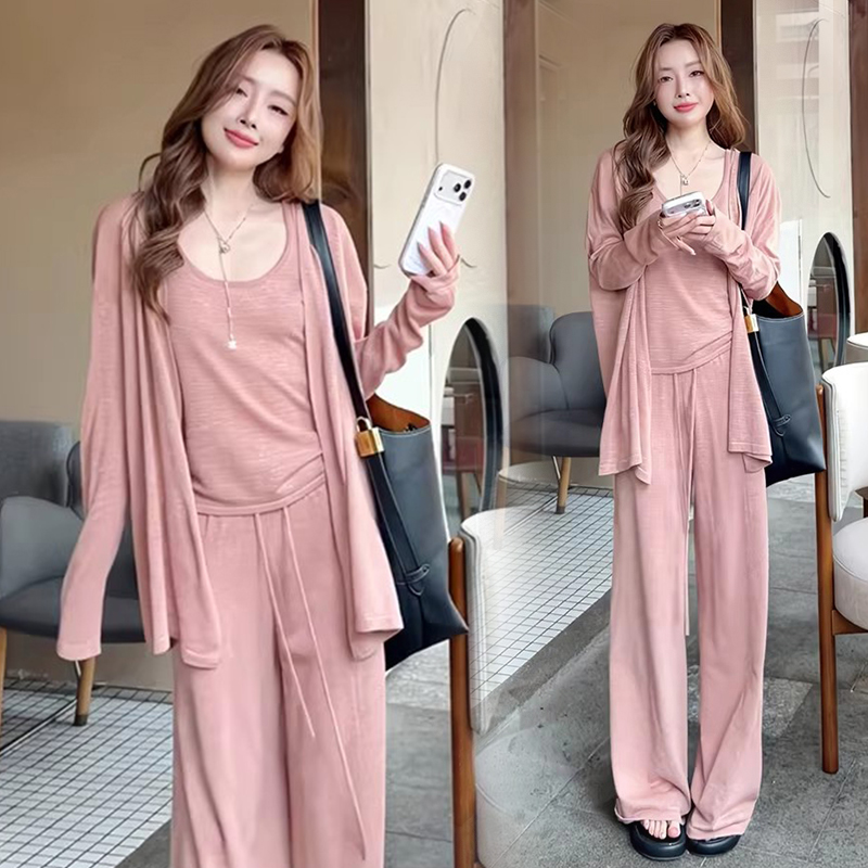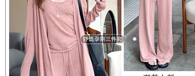 임산부 세트 여름 패션 니트 슬림해 보이는 맨위 긴 바지 패치워크 레이스 임산부 투피스 세트