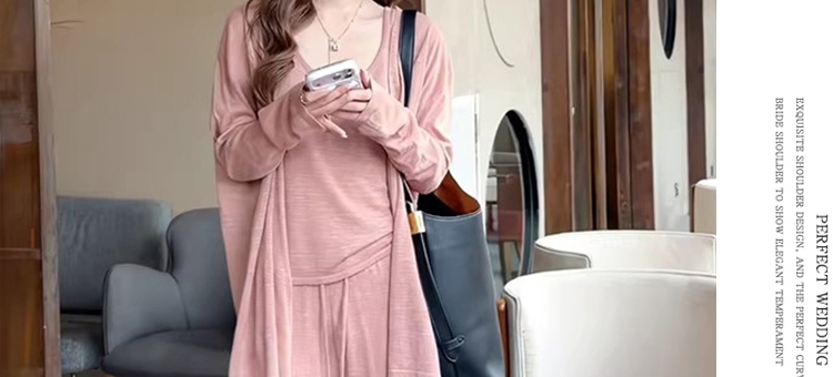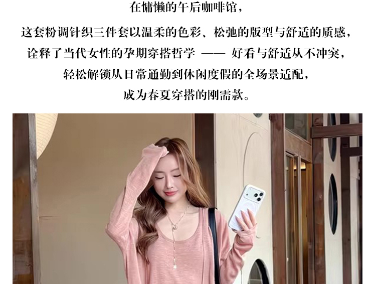 임산부 드레스 2026 여름 새로운 니트 망사 패치워크 루즈핏 페이크 레이어드 임산부 드레스