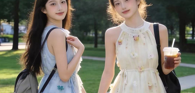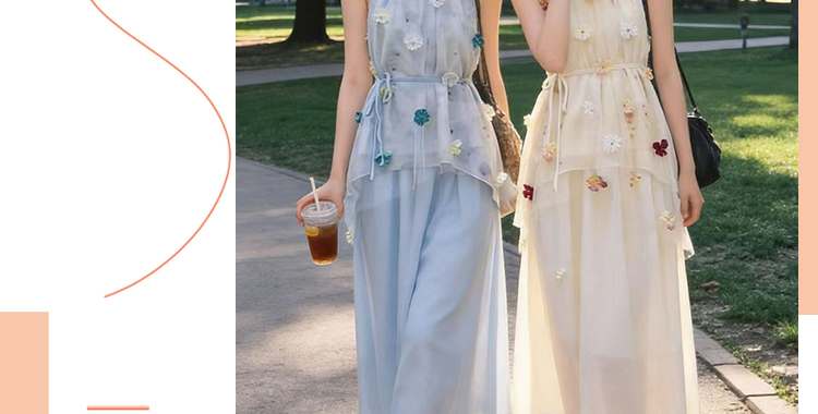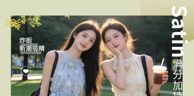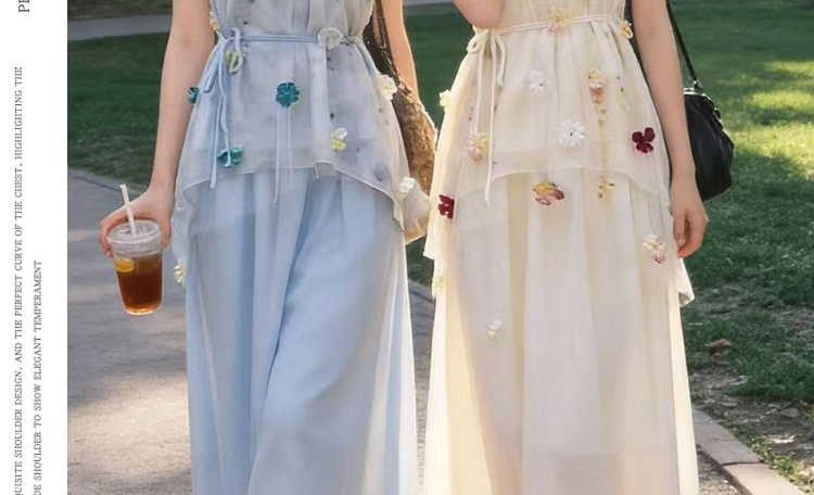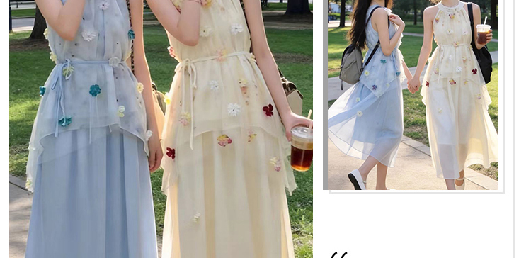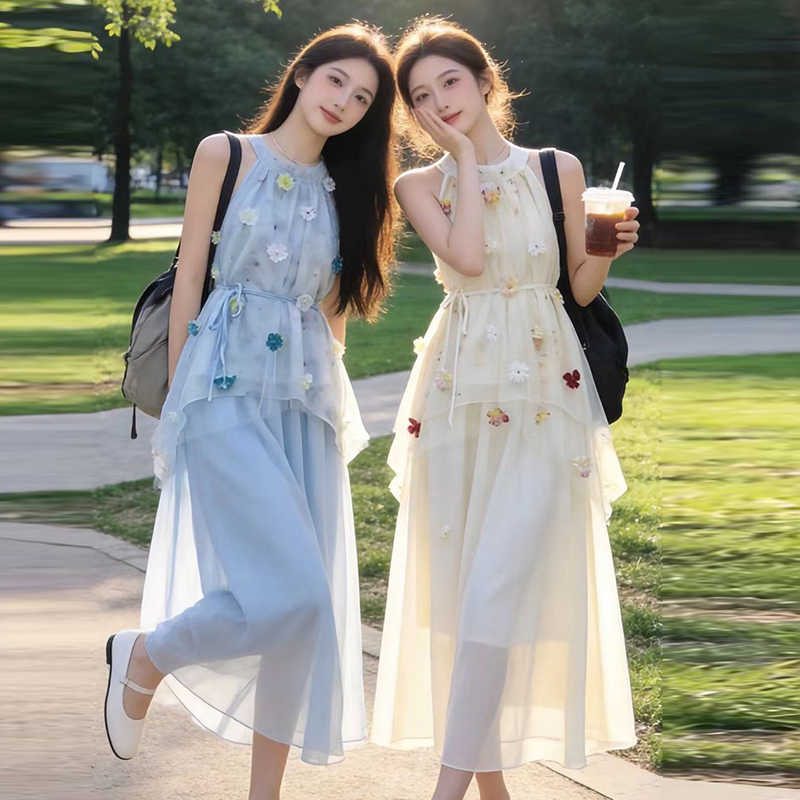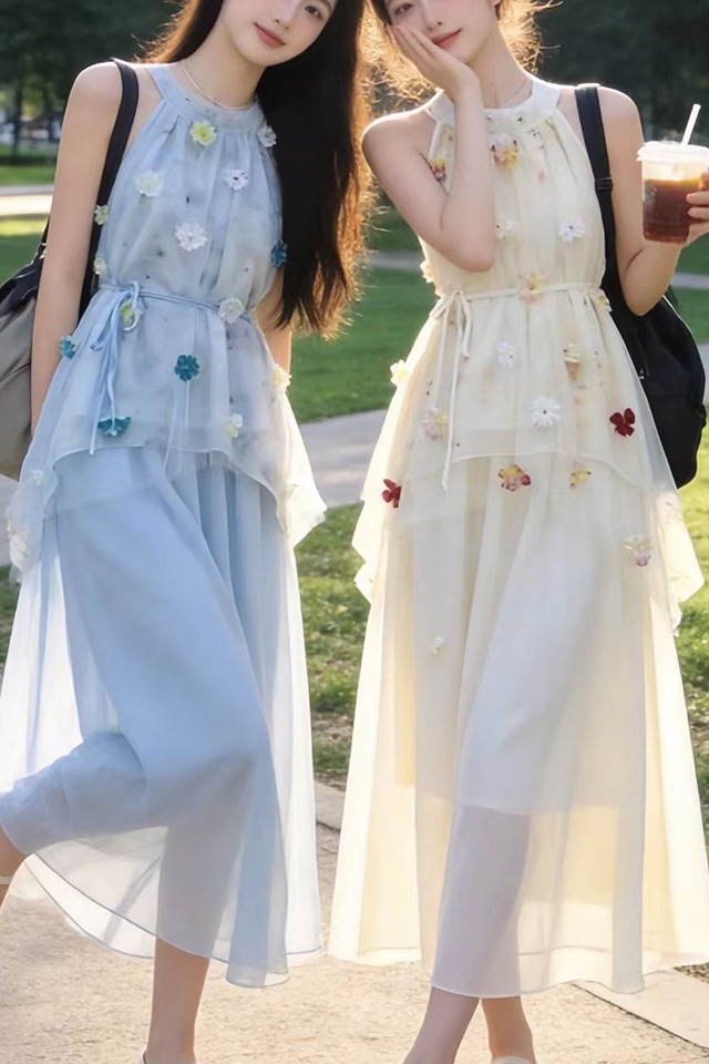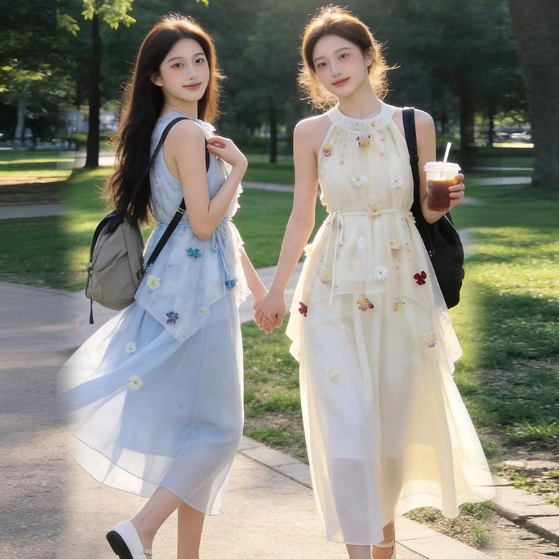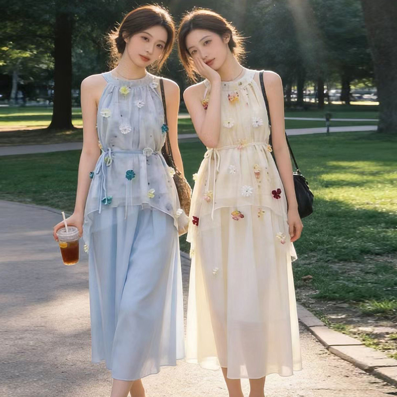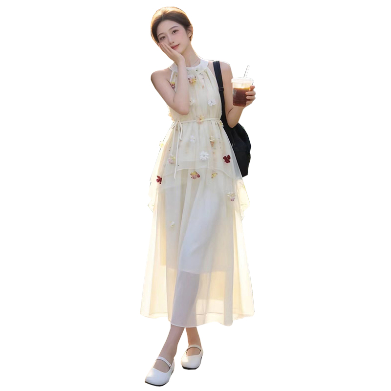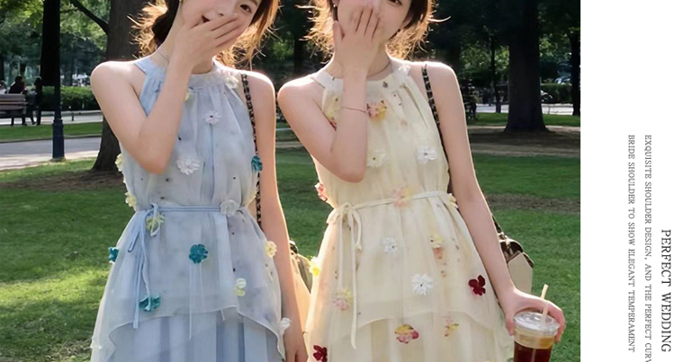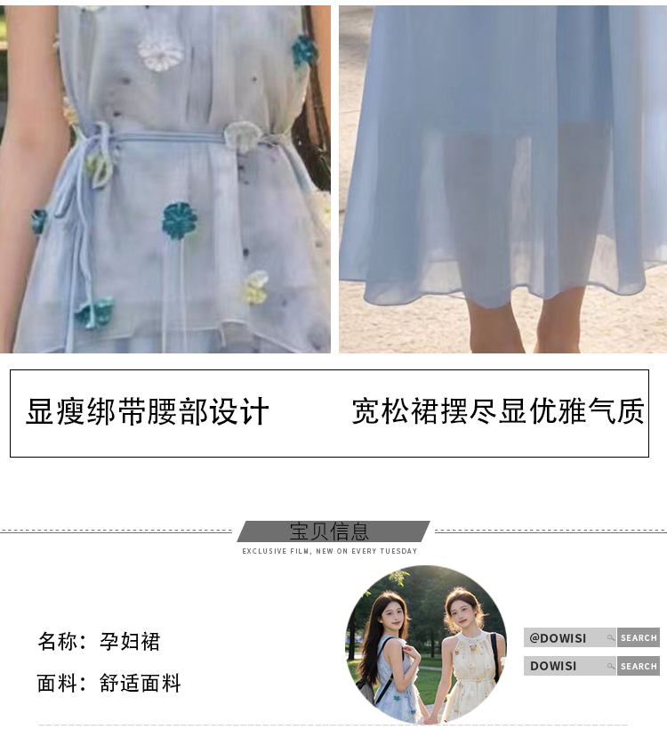 출산 착용 드레스 2026 여름 새로운 민소매 꽃무늬 행침 목 드레스