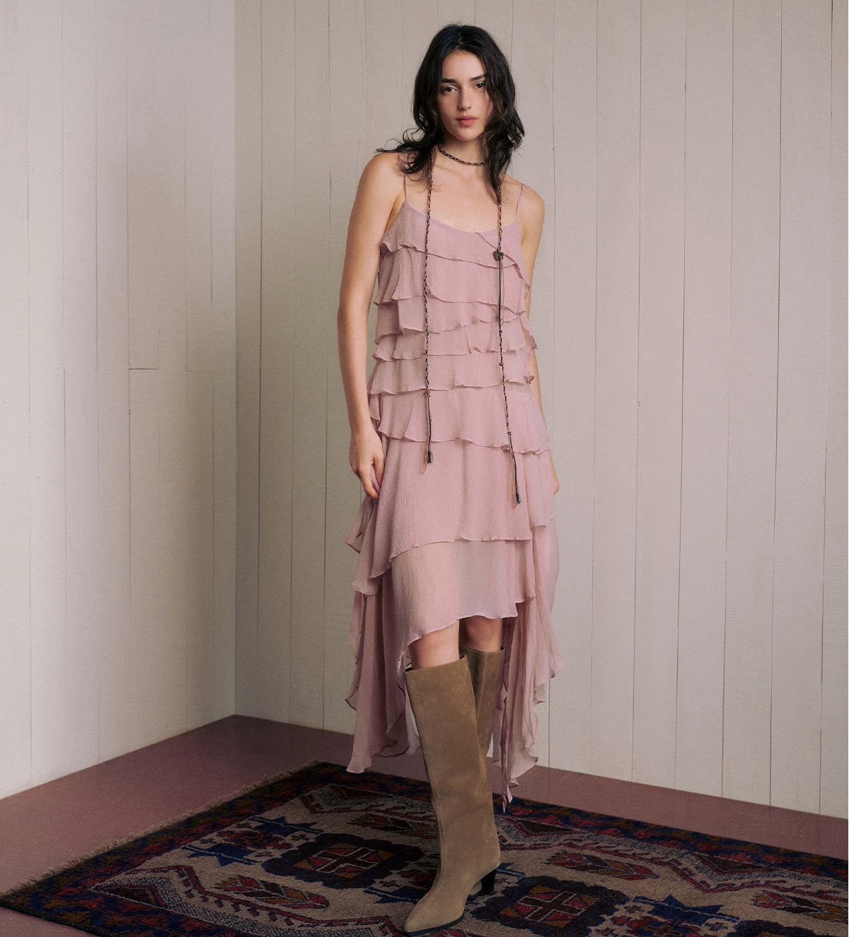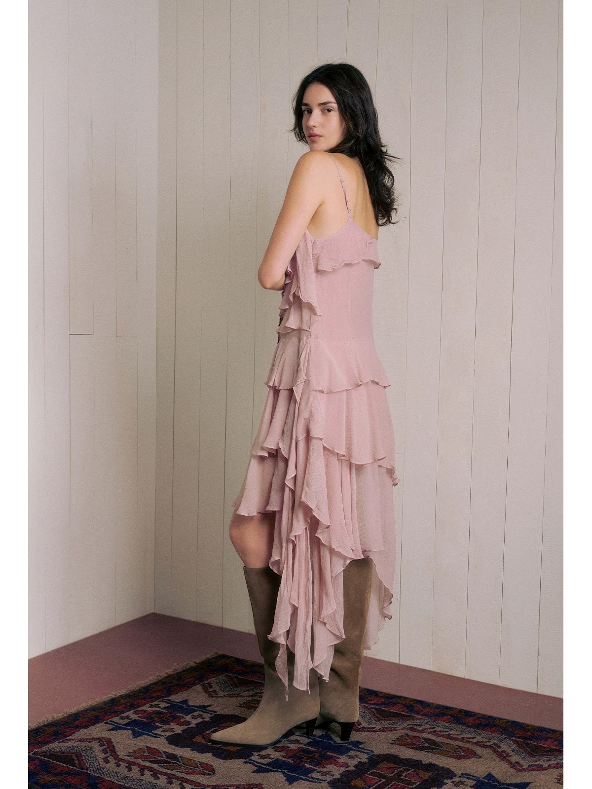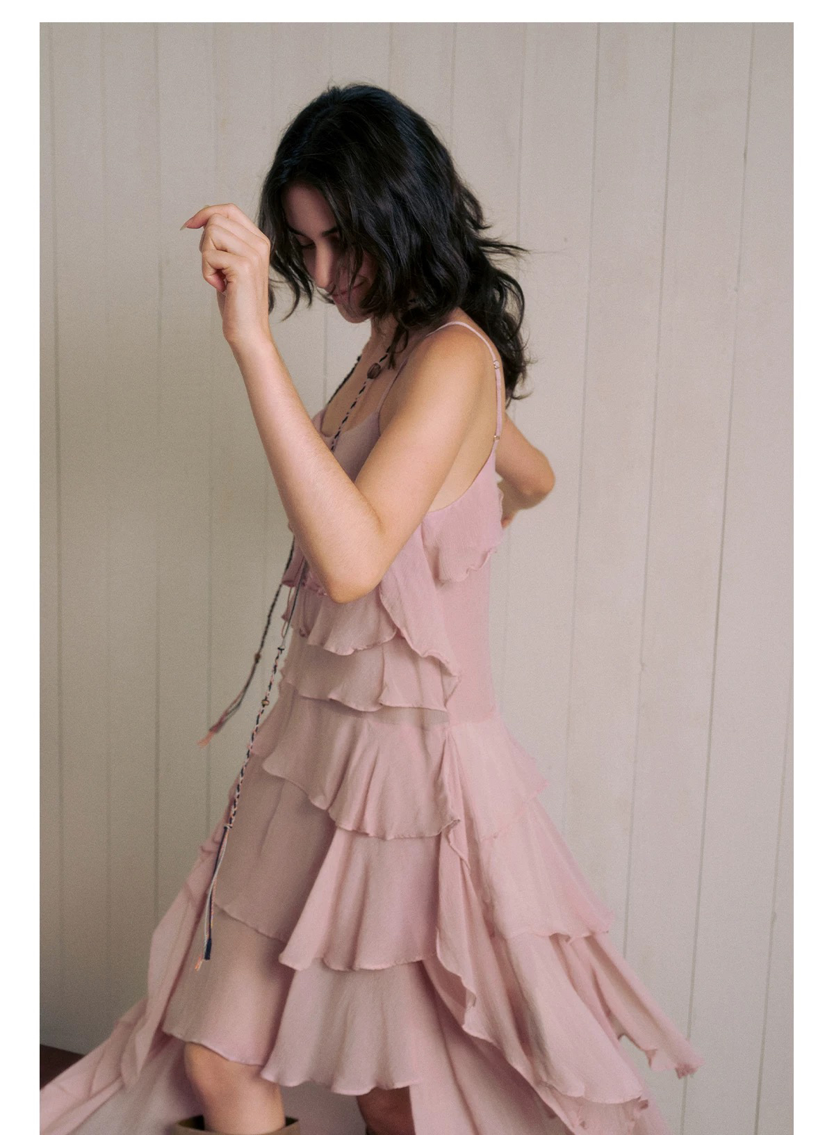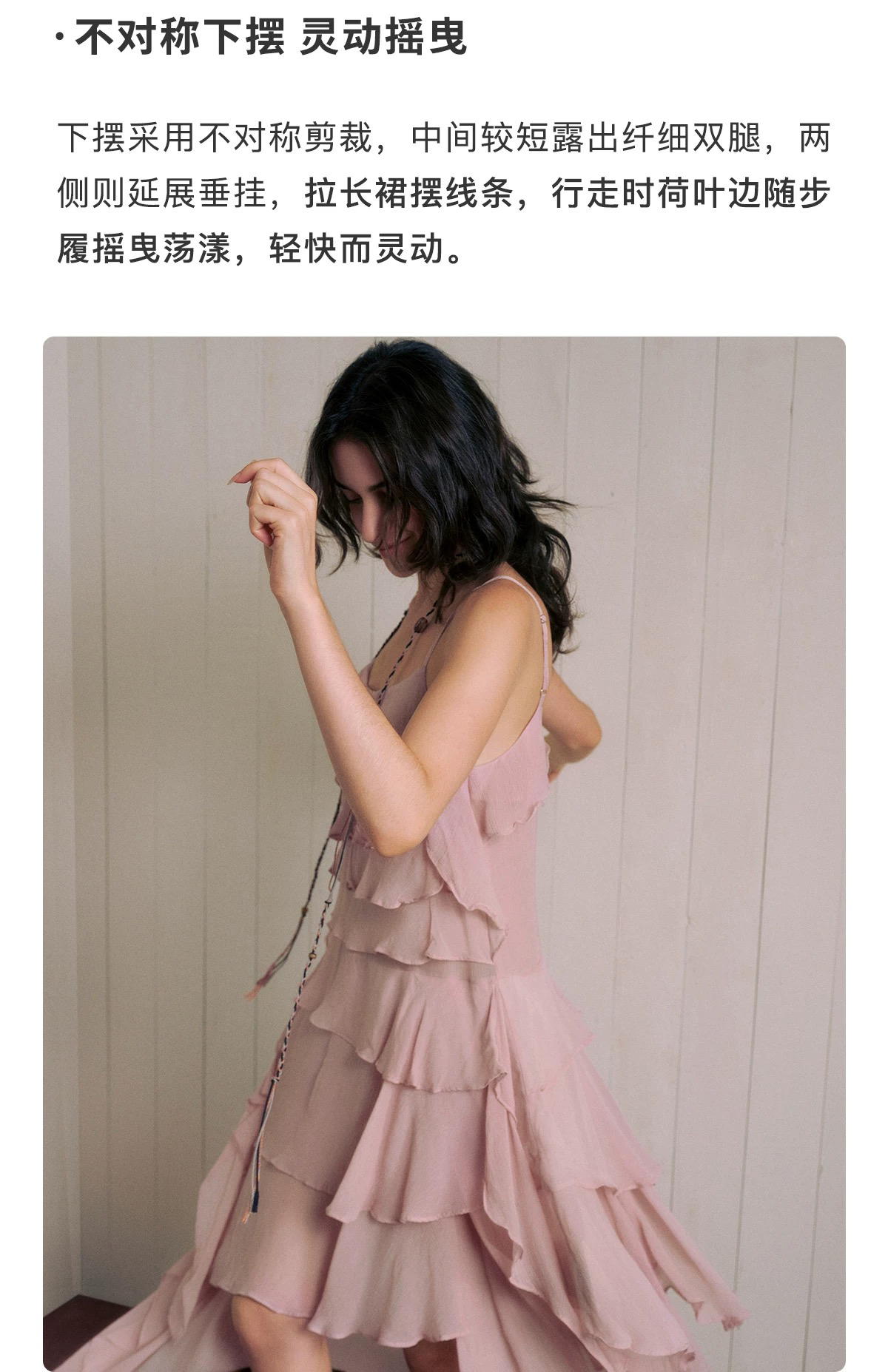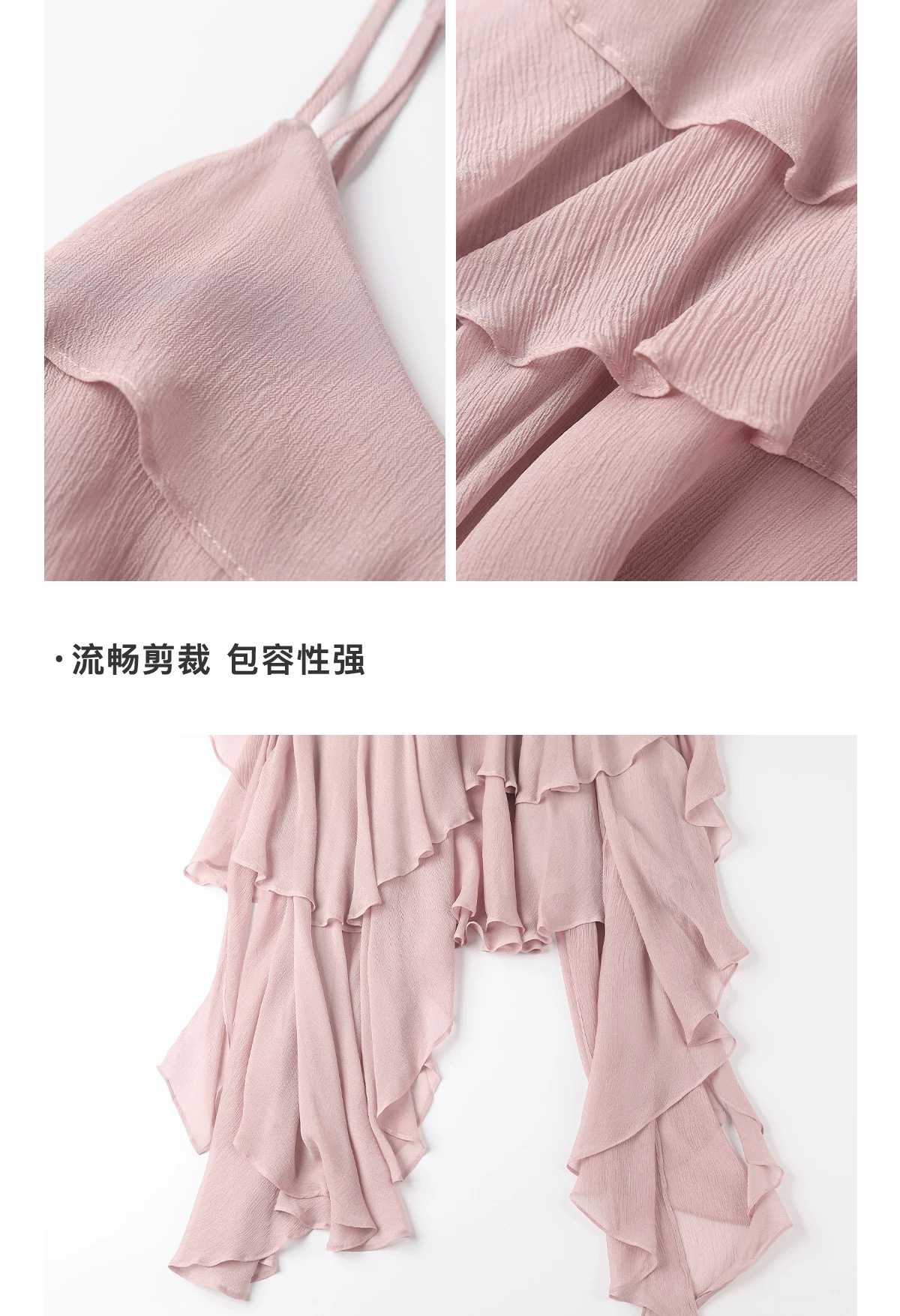 소원 주제 단 2026 스타 같은 단락 프릴 계층의 감각 비대칭 슬립 드레스 회색 분말 드레스