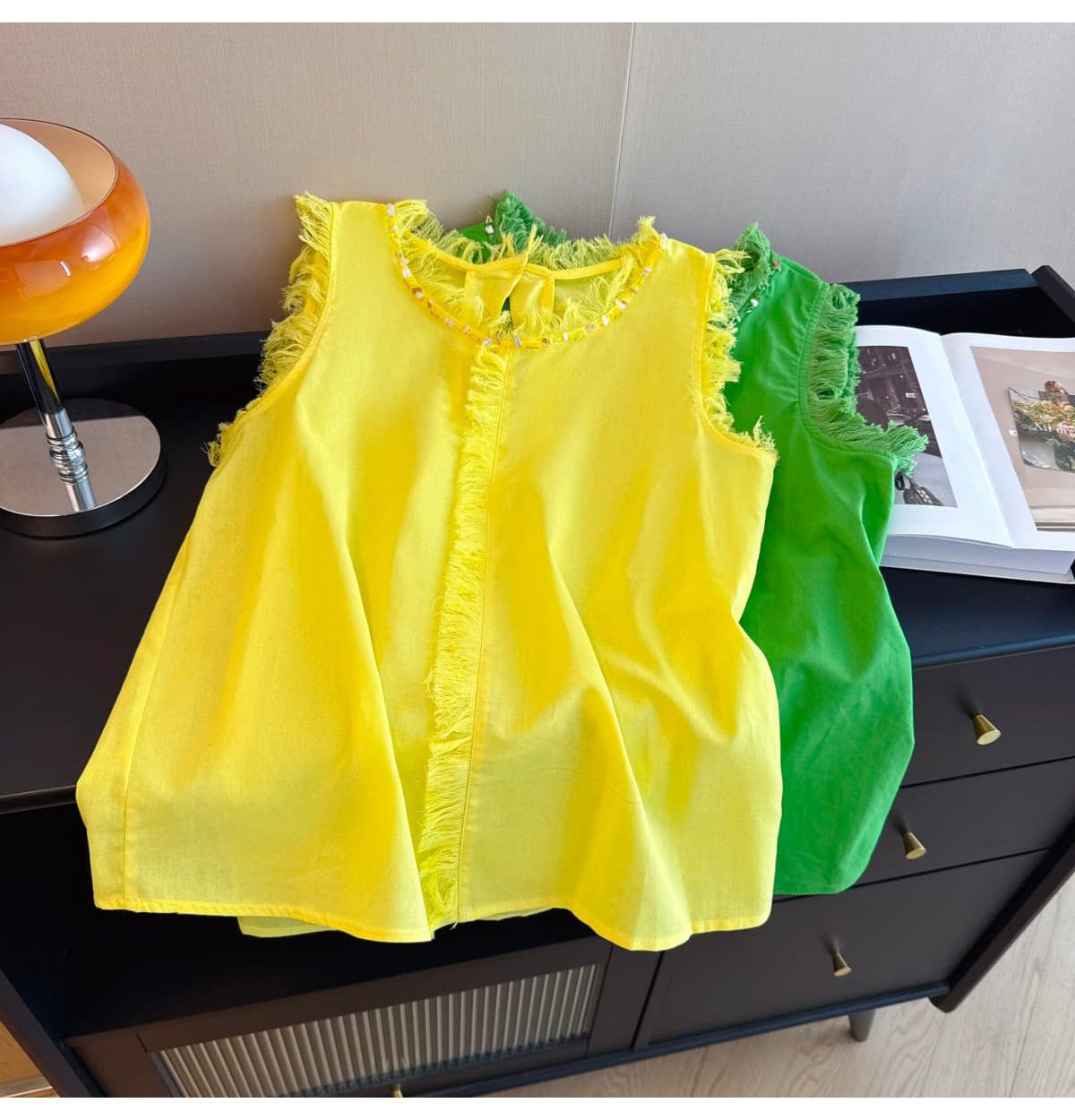 실사 오래된 돈 바람 자수 아마 조끼 여성 셔츠 외출용 프랑스식 작은 대중 맨위 얇고 가벼운 다용도 민소매 작은 셔츠