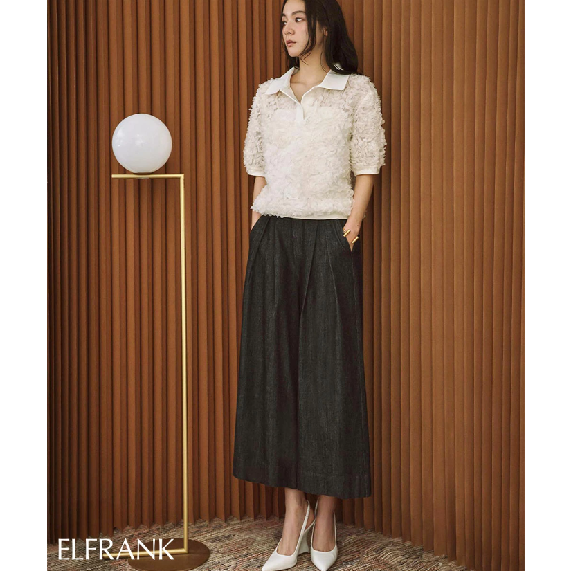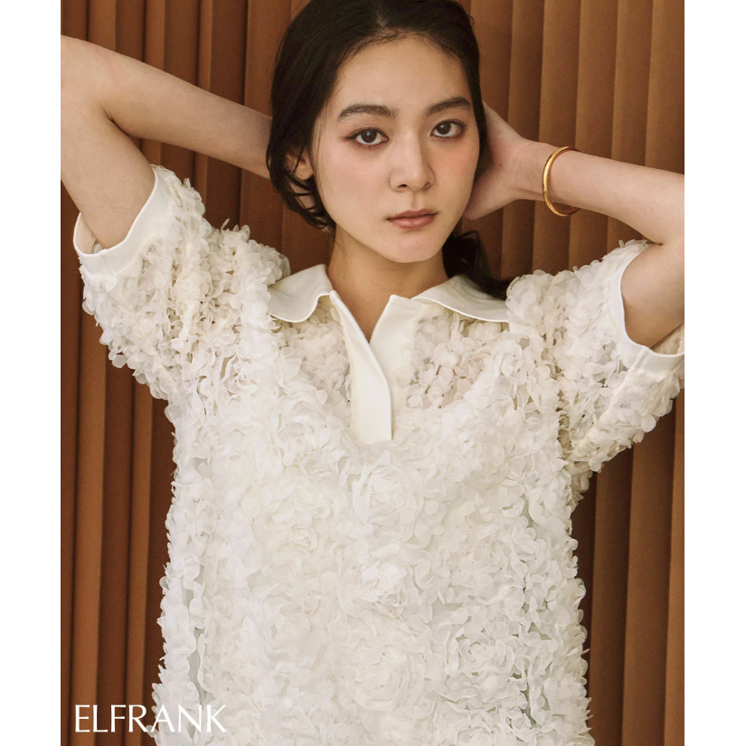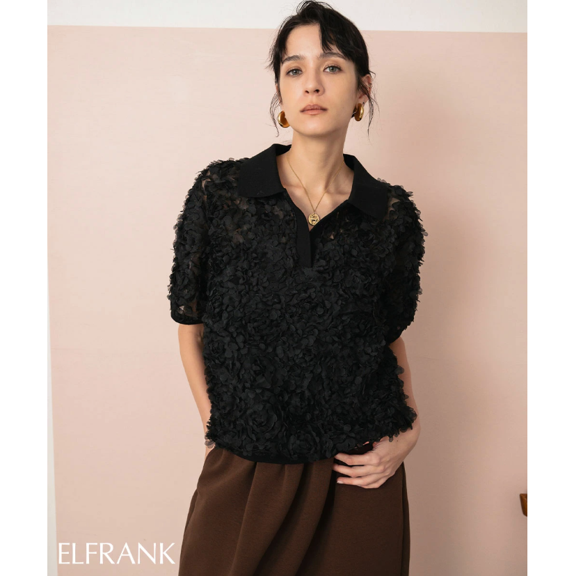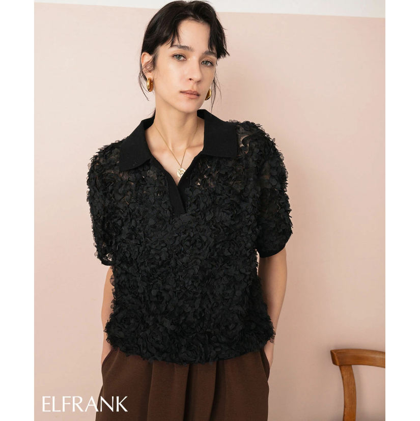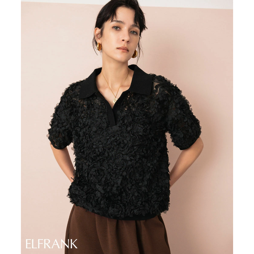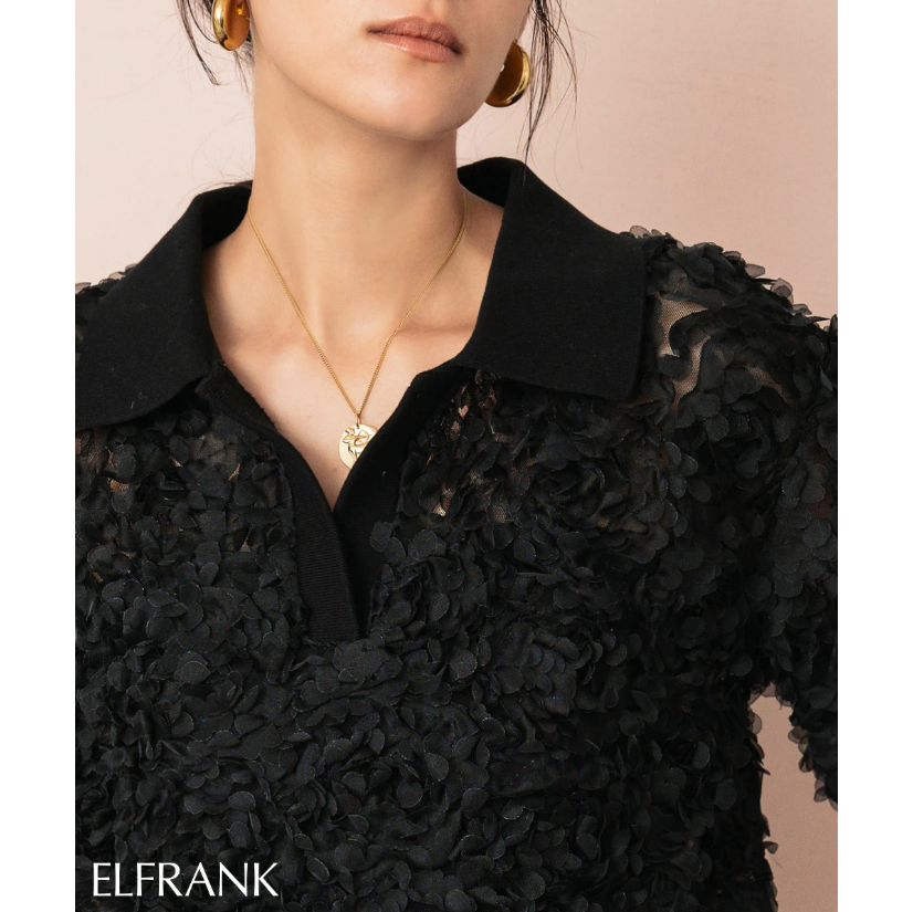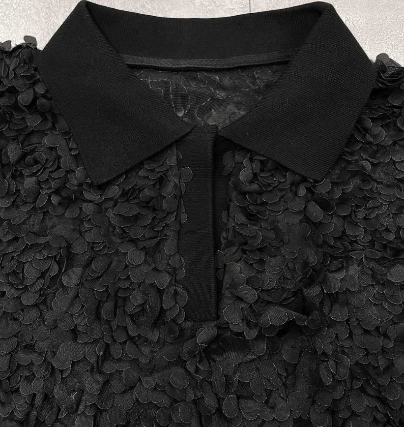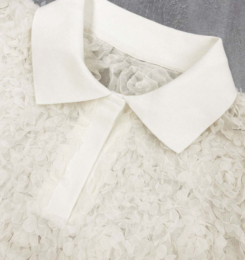 일본식 고급 센스 3 차원 꽃잎 POLO 칼라 맨위 거품 소매 루즈핏 니트 스웨터 부드러운 바람 다용도 슬림해 보이는