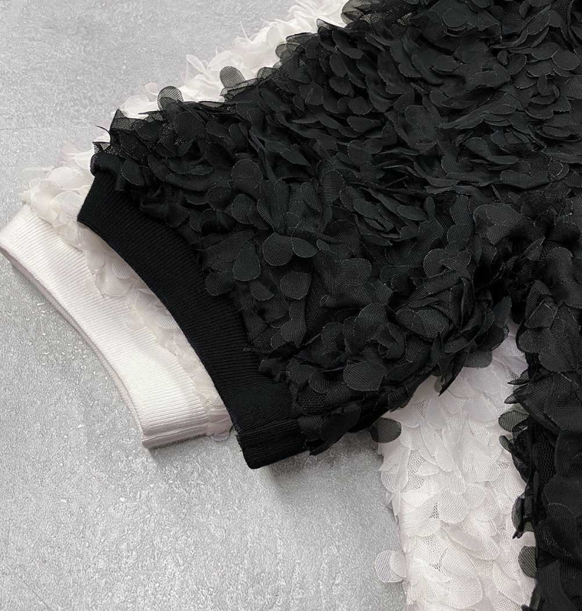 일본식 니트 패치워크 새틴 프릴 반팔 거품 소매 라운드 넥 맨위 표지 고기 슬림해 보이는 케이크 셔츠