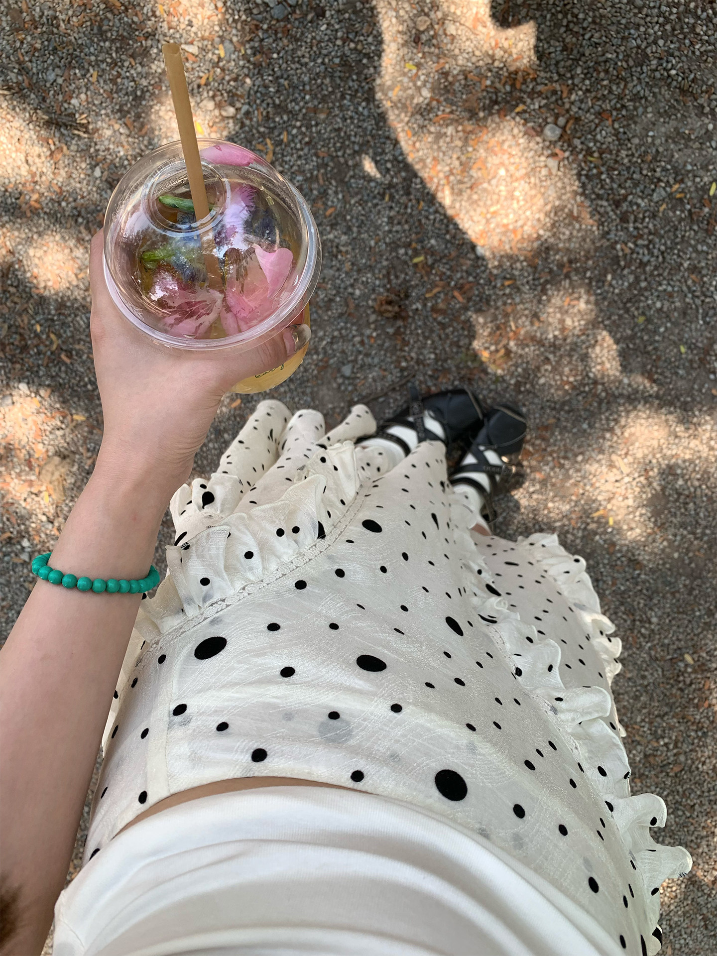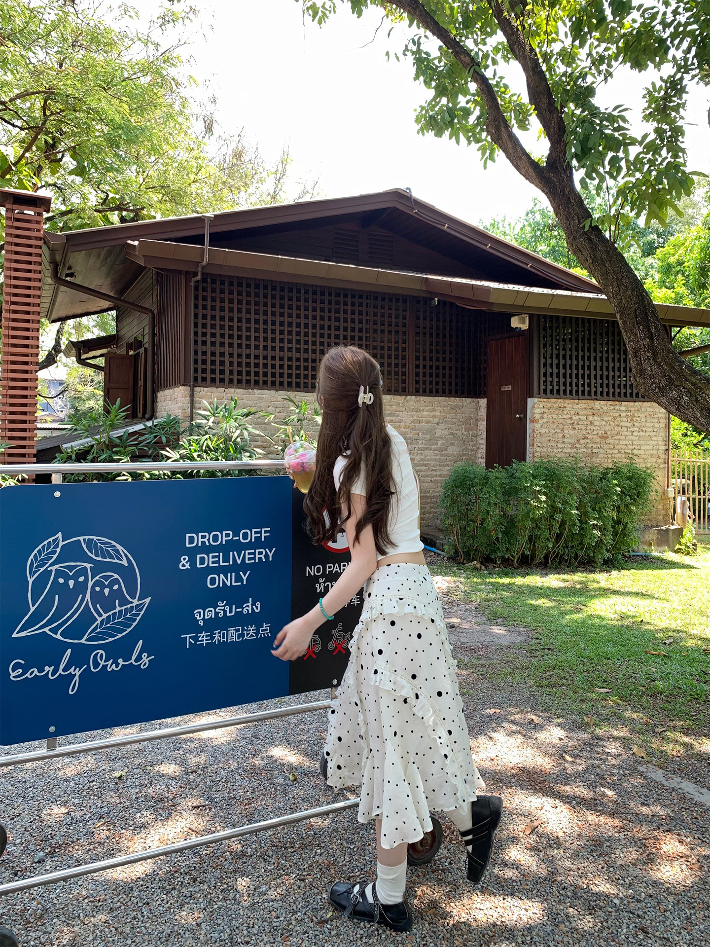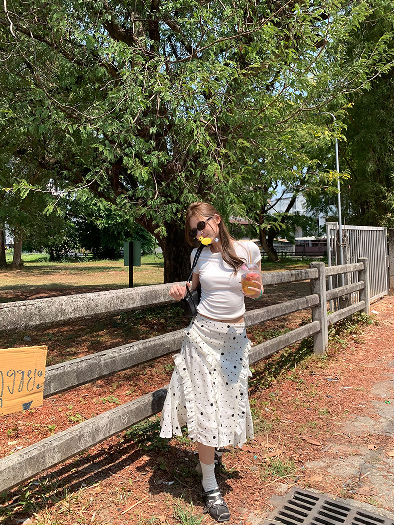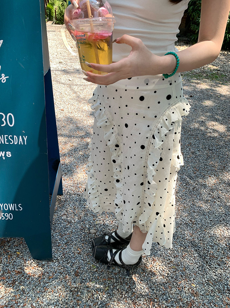 im ~까지 똑똑한 자르기 72 라이 경기 서울 식물 플러시 도트 무늬 중간 길이 스커트 우아한 불규칙 프릴 반신 스커트