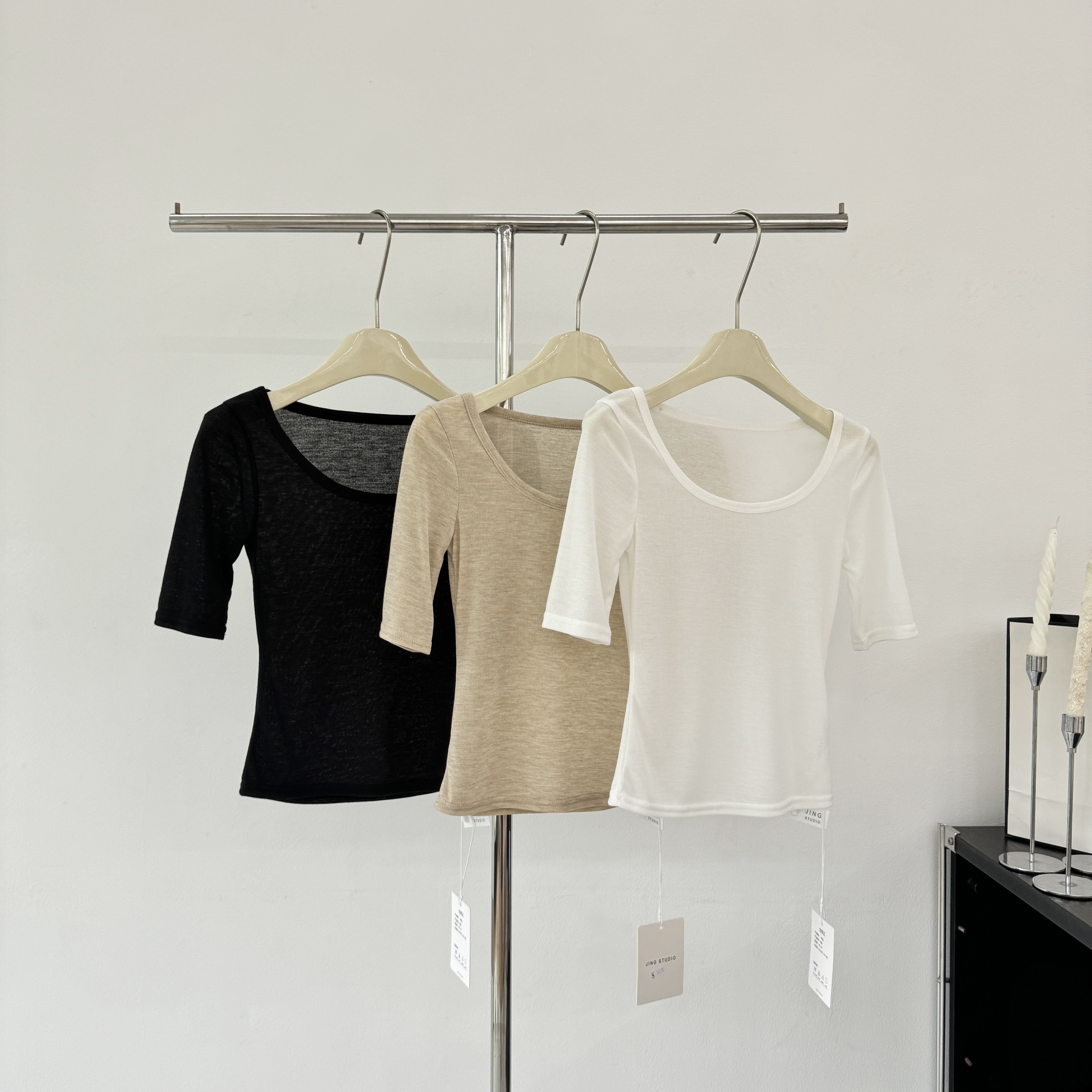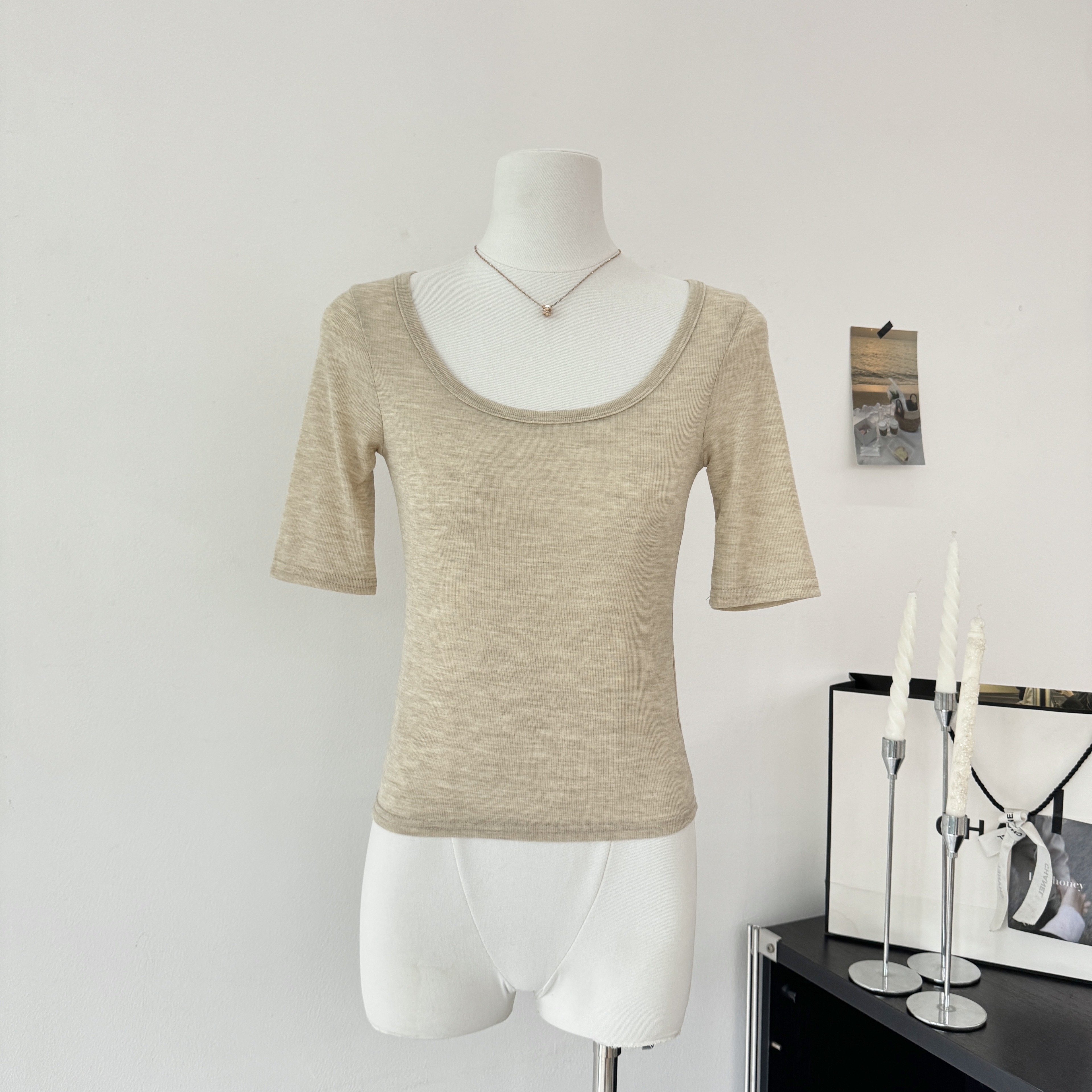 e go studio 주간 실크 양모 대 u 칼라 슬림해 보이는 다용도 중간 소매 티셔츠 여성 의류 몸매 가꾸기 슬림해 보이는 다용도 맨위