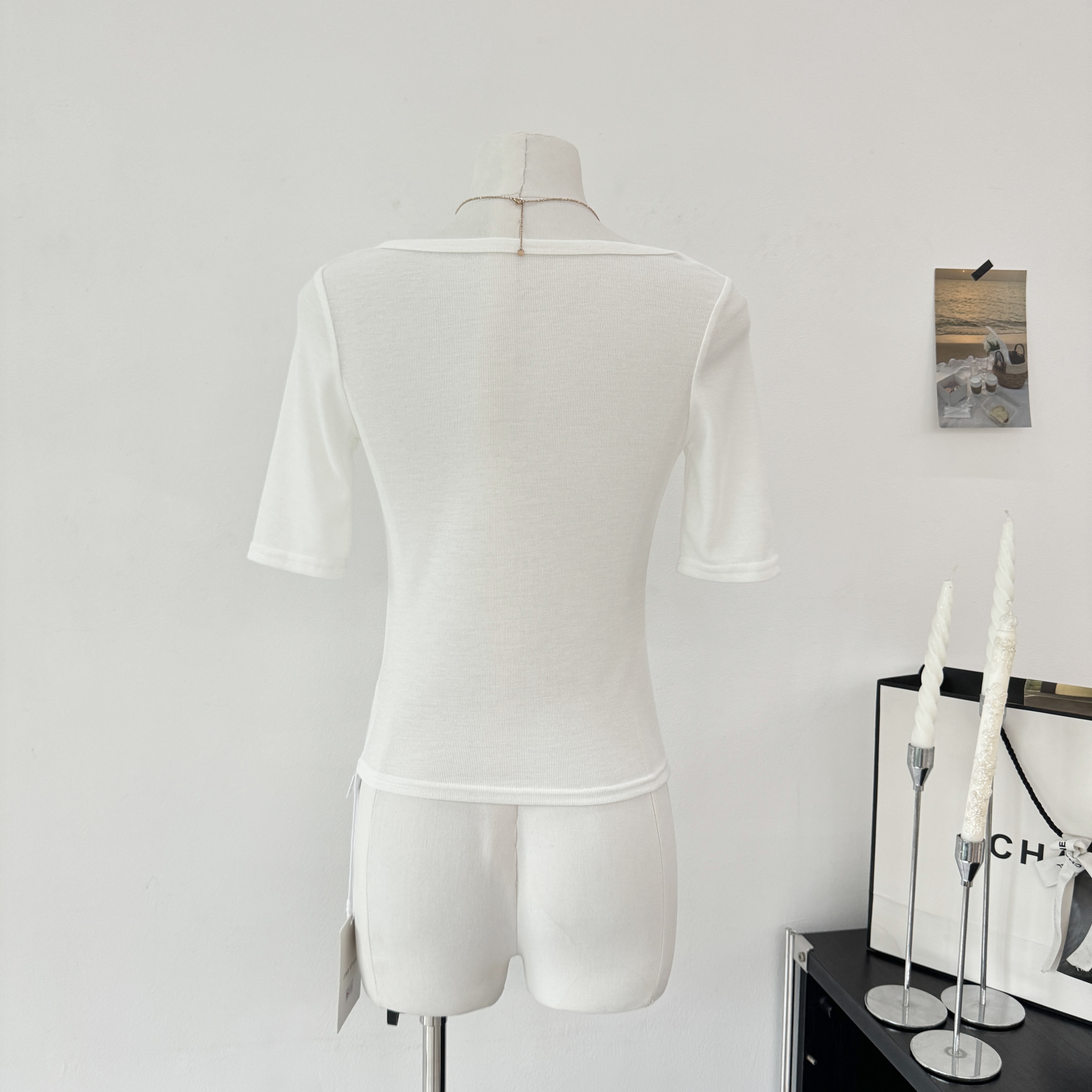 yolo shop 우유 피부 가면 t 대 u 칼라 순수한 욕망 허리 수축 슬림해 보이는 모달 긍정적 인 어깨 티셔츠 반팔 맨위