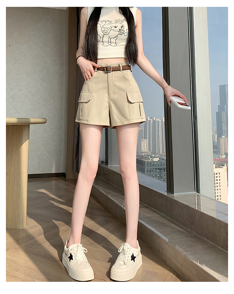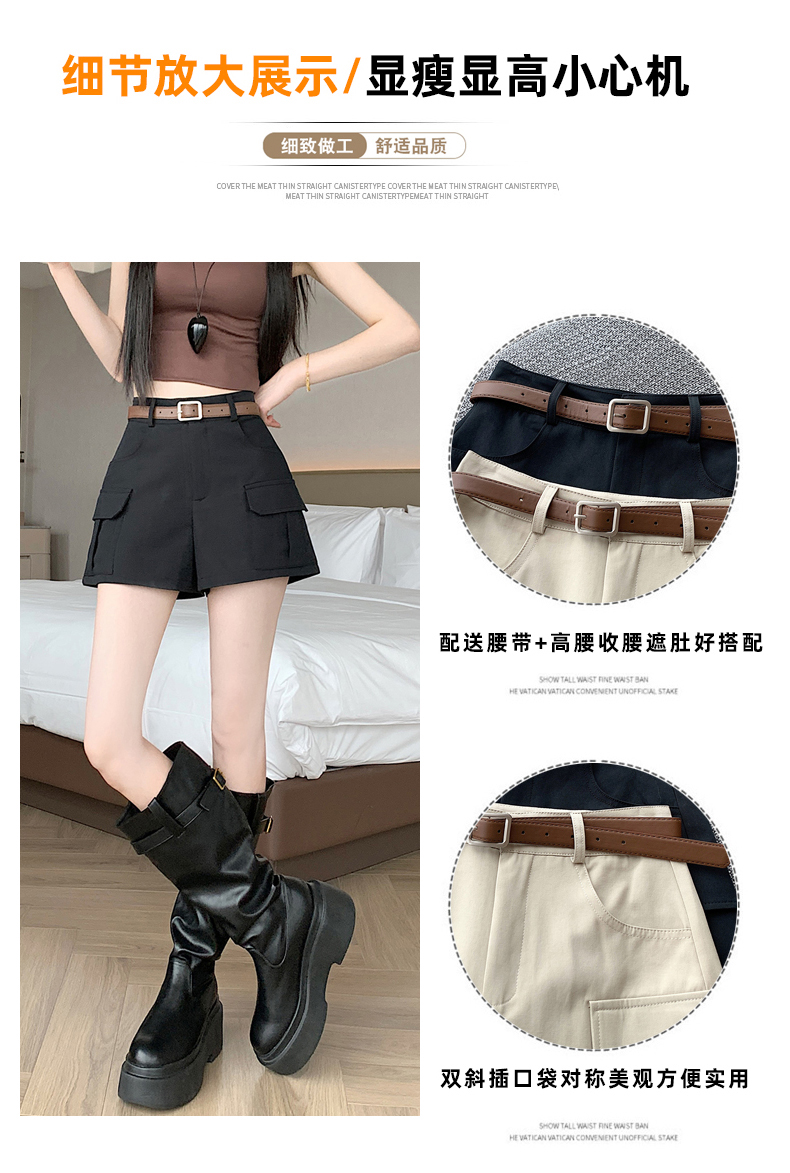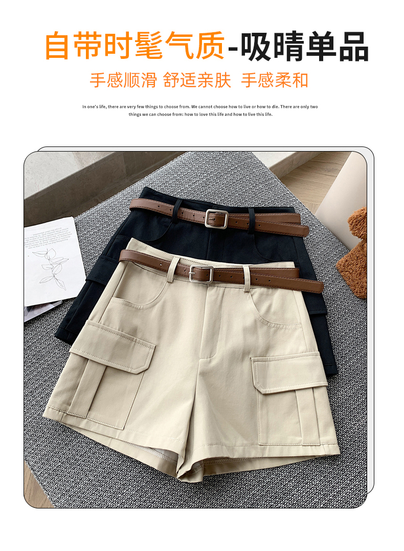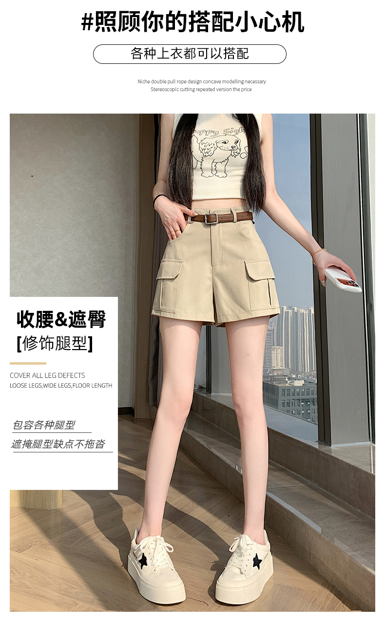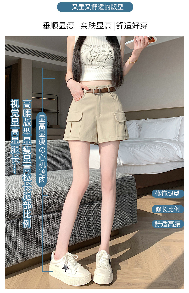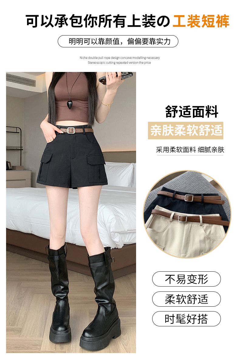 실사 군대 바람 워크웨어 반바지 여성 하이웨이스트 슬림해 보이는 와이드 레그 팬츠 출퇴근 워시 물 면 한 마디 반바지 지갑 디자인
