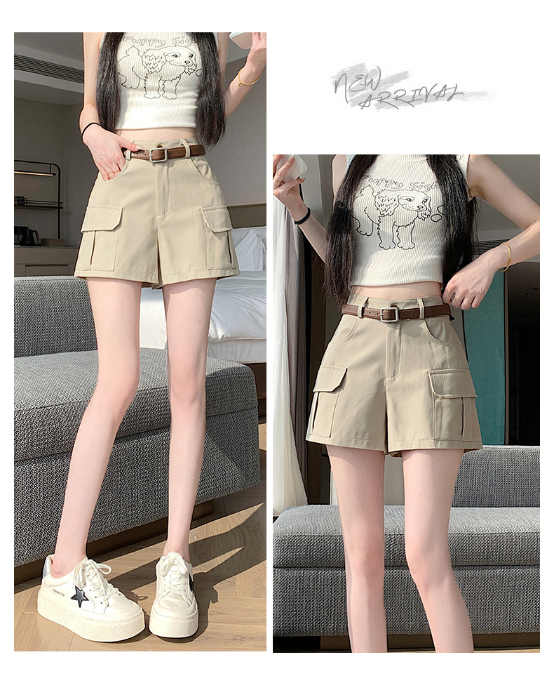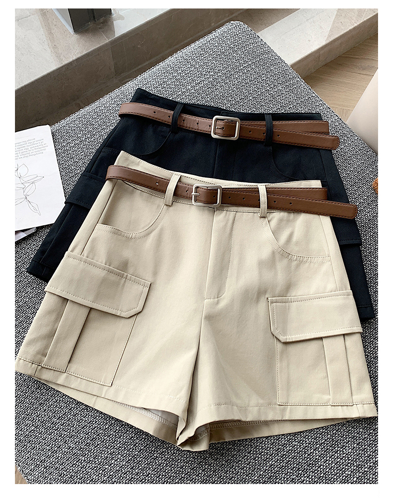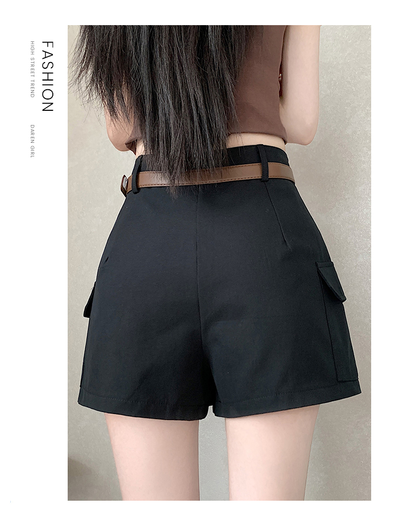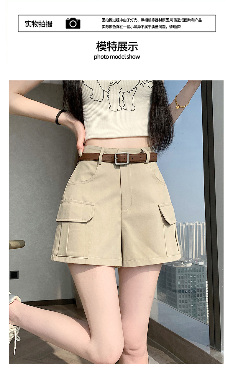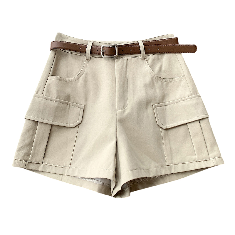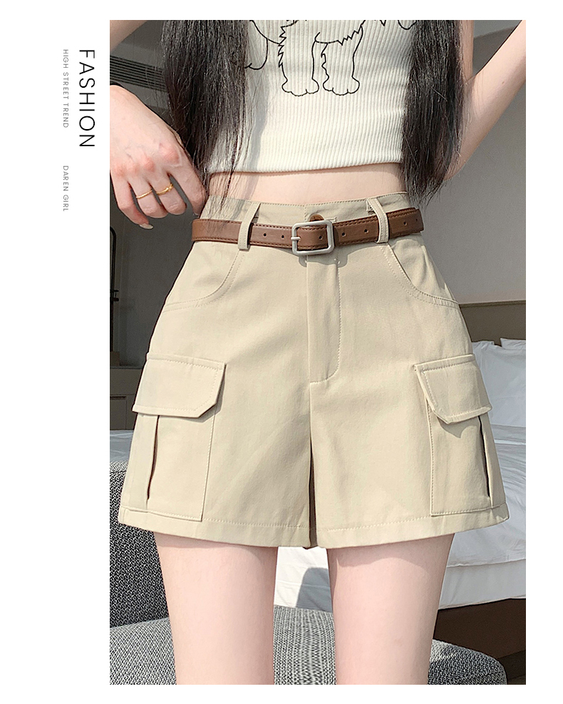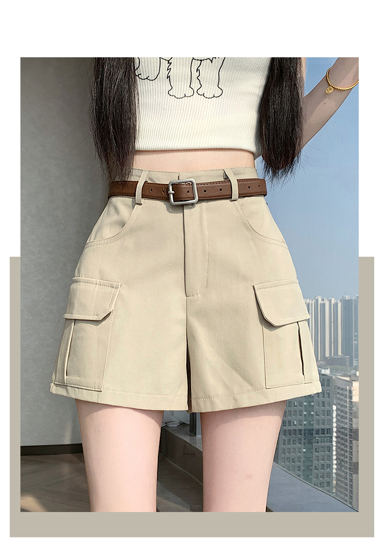 실사 군대 바람 워크웨어 반바지 여성 하이웨이스트 슬림해 보이는 와이드 레그 팬츠 출퇴근 워시 물 면 한 마디 반바지 지갑 디자인