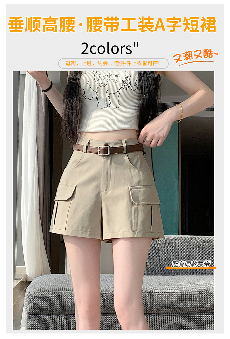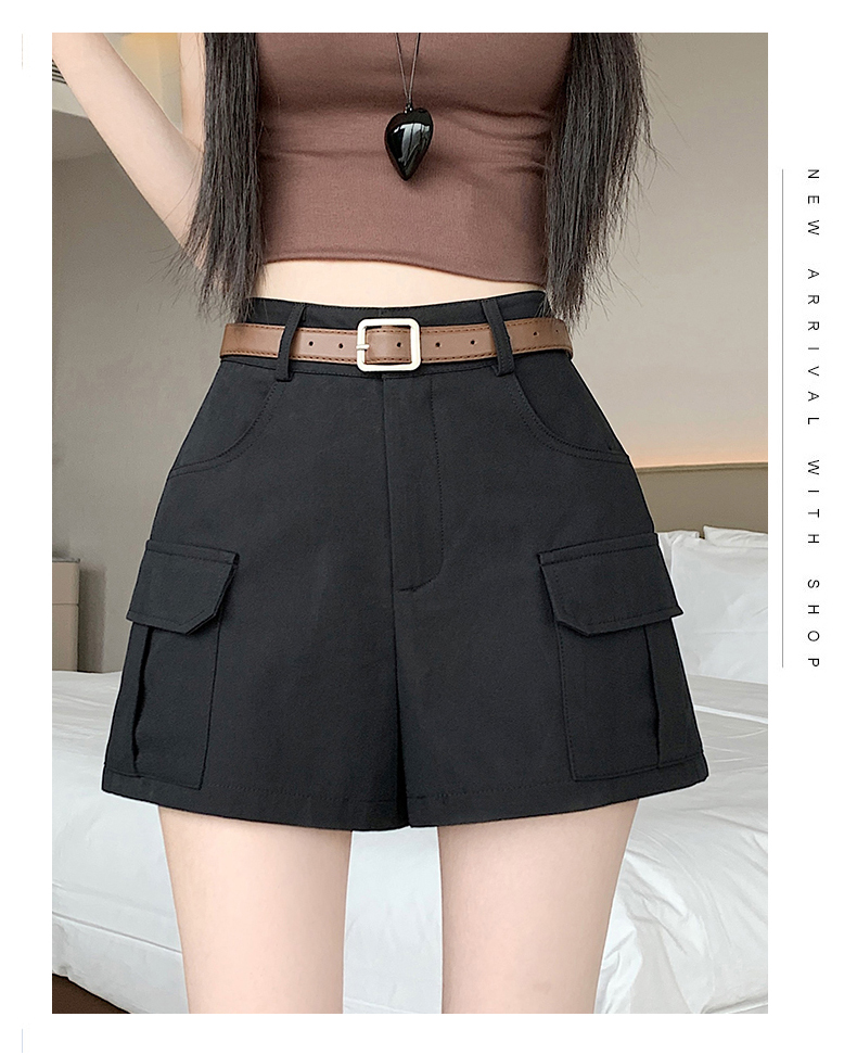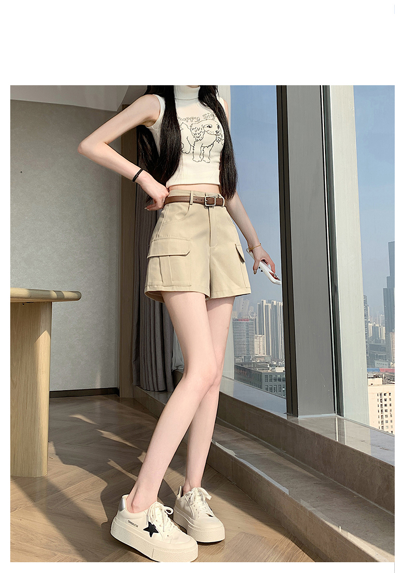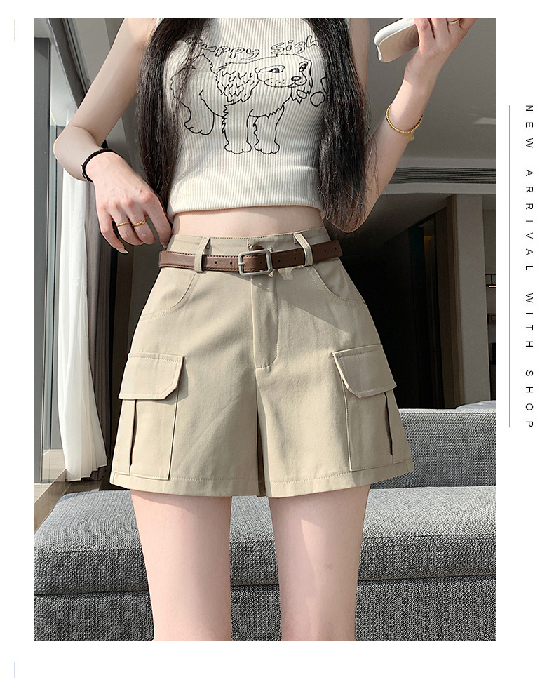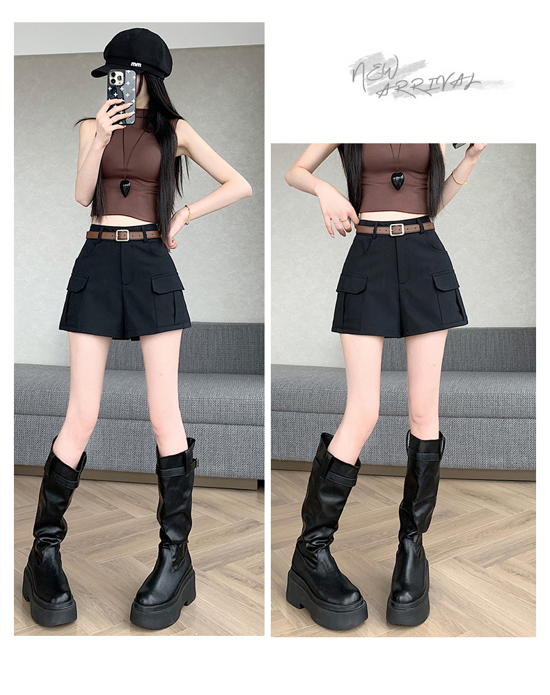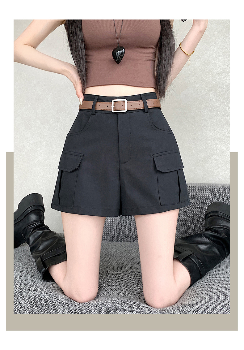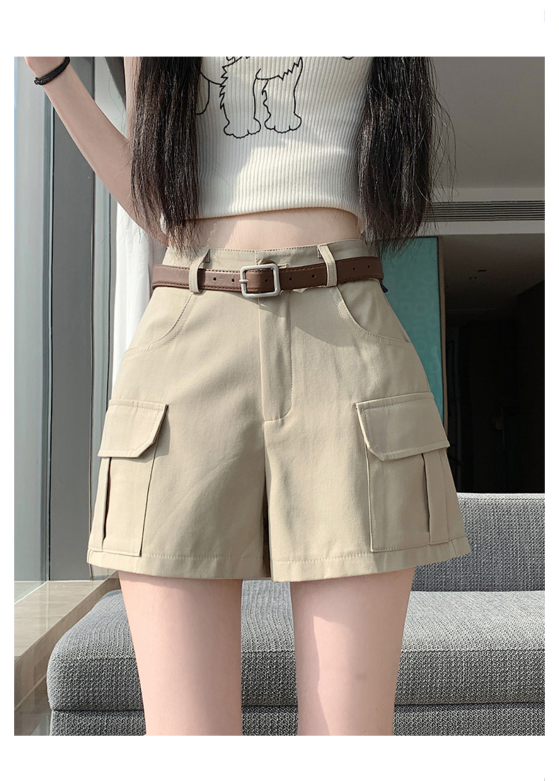 실사 군대 바람 워크웨어 반바지 여성 하이웨이스트 슬림해 보이는 와이드 레그 팬츠 출퇴근 워시 물 면 한 마디 반바지 지갑 디자인