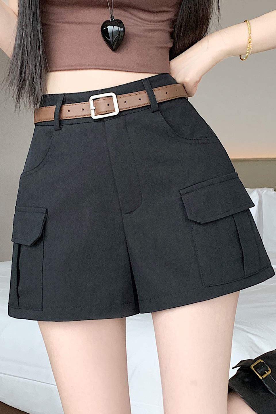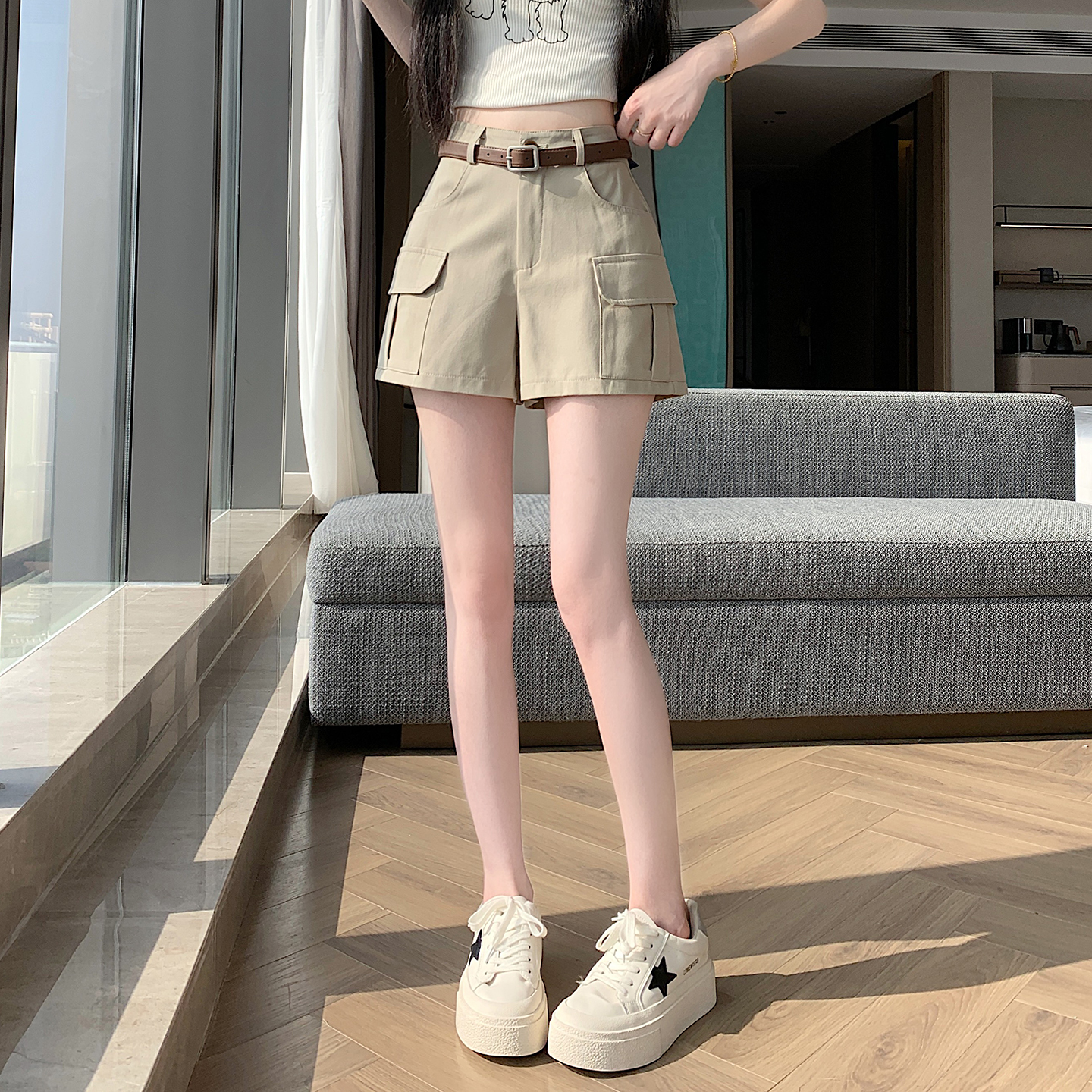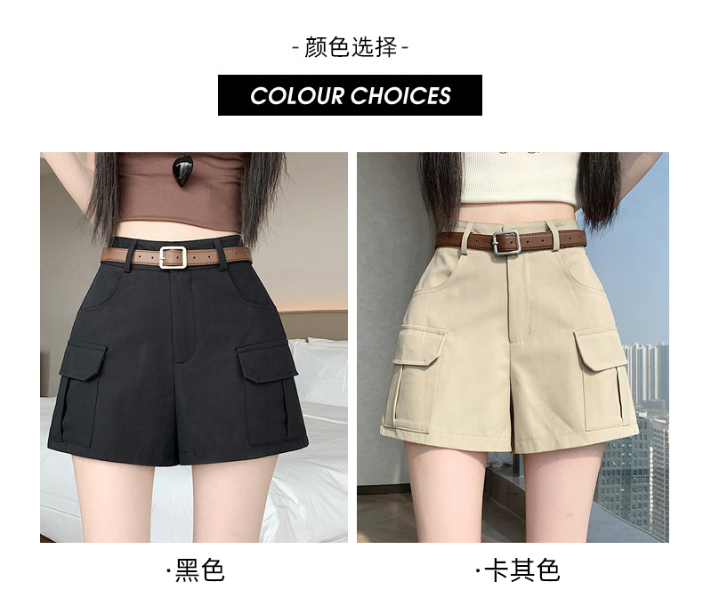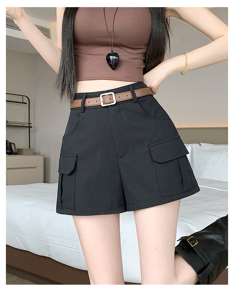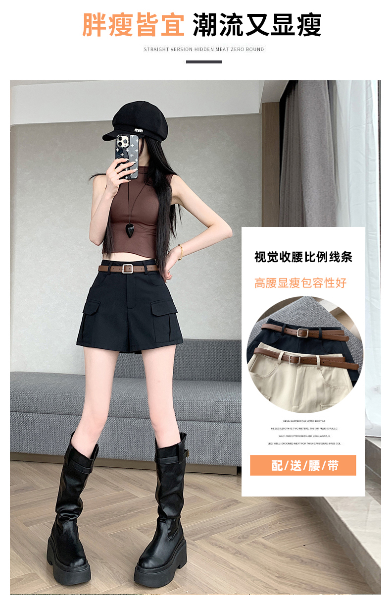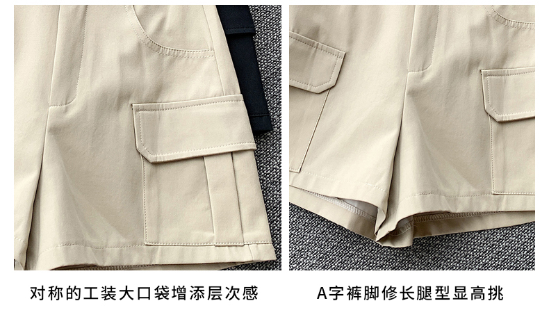 실사 군대 바람 워크웨어 반바지 여성 하이웨이스트 슬림해 보이는 와이드 레그 팬츠 출퇴근 워시 물 면 한 마디 반바지 지갑 디자인