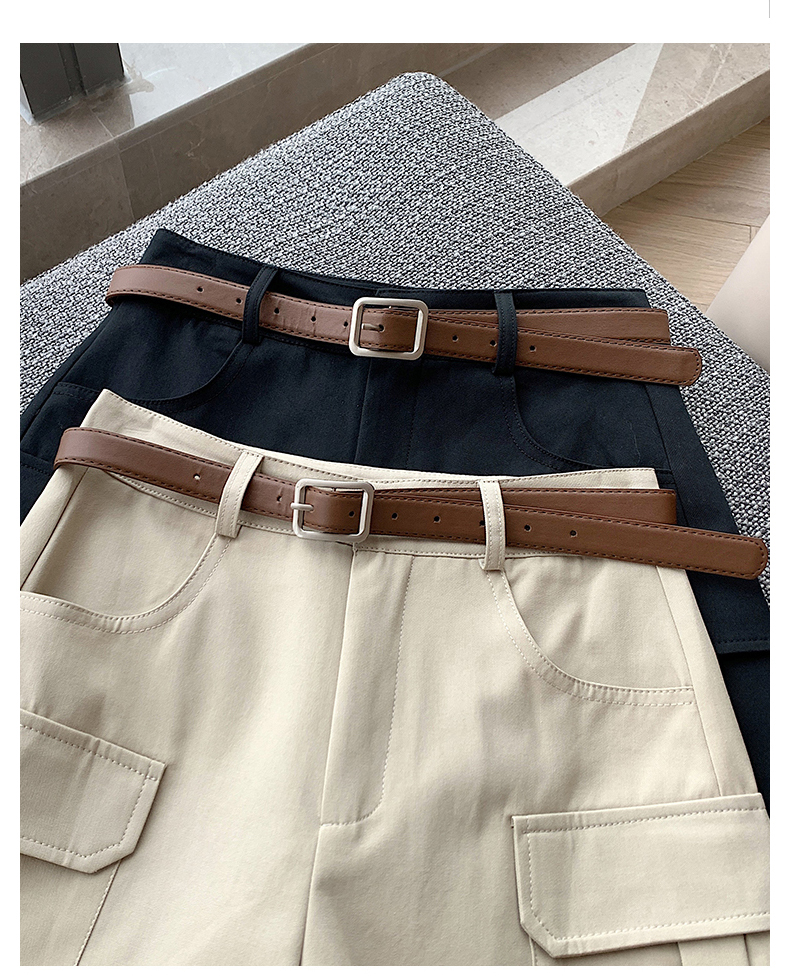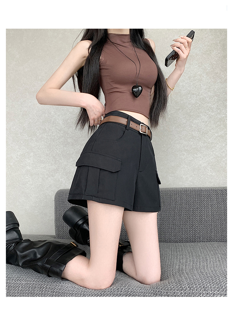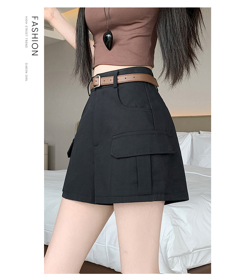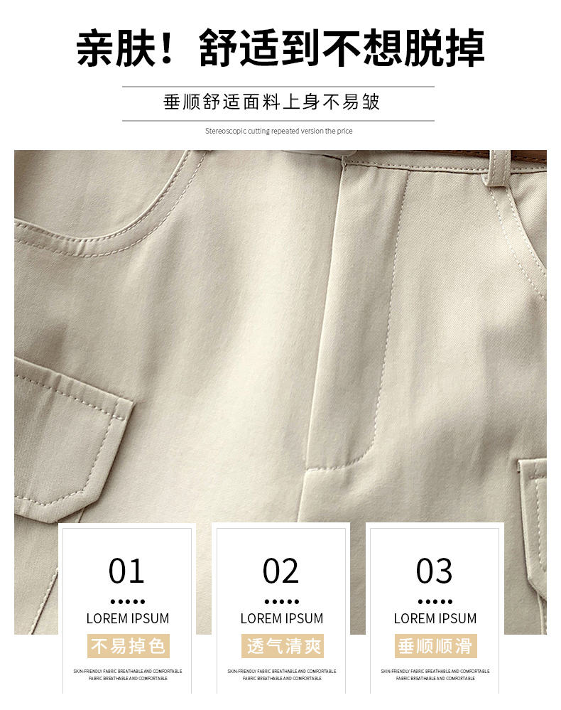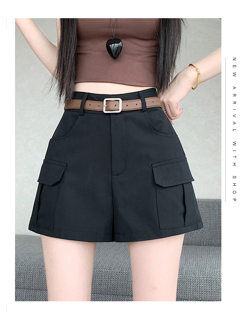 실사 군대 바람 워크웨어 반바지 여성 하이웨이스트 슬림해 보이는 와이드 레그 팬츠 출퇴근 워시 물 면 한 마디 반바지 지갑 디자인