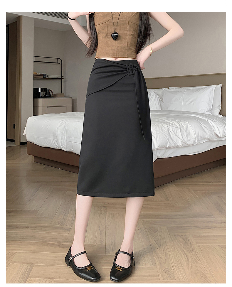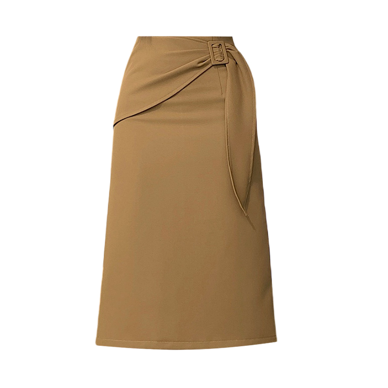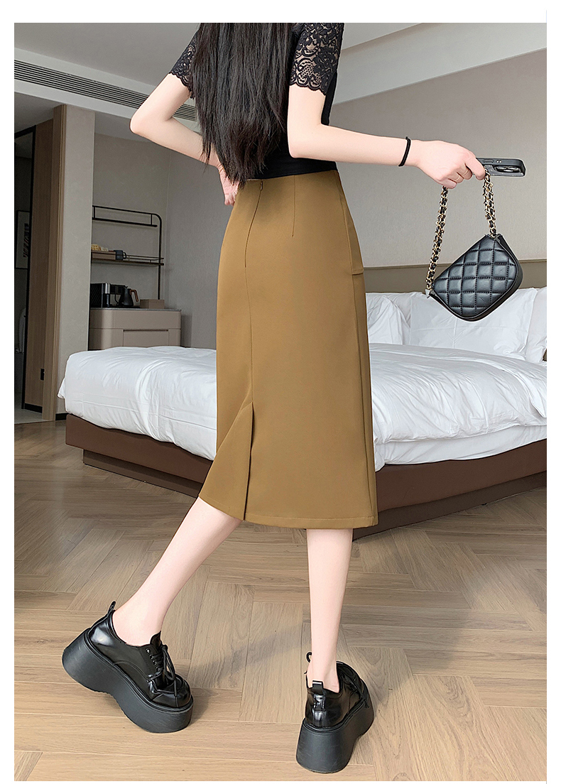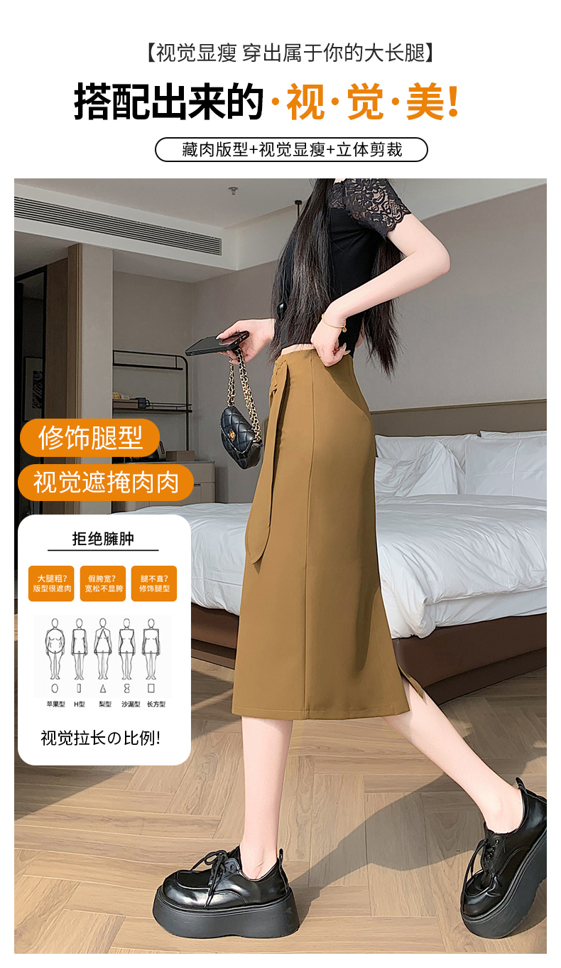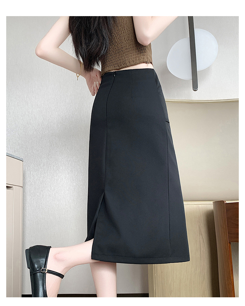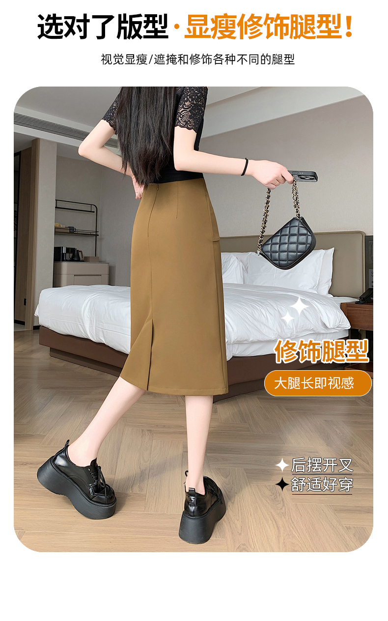 2026 트임 반신 스커트 여성 하이웨이스트 스트레이트 치마 디자인 센스 지퍼 중간 길이 스커트 주름 반신 기본 스커트