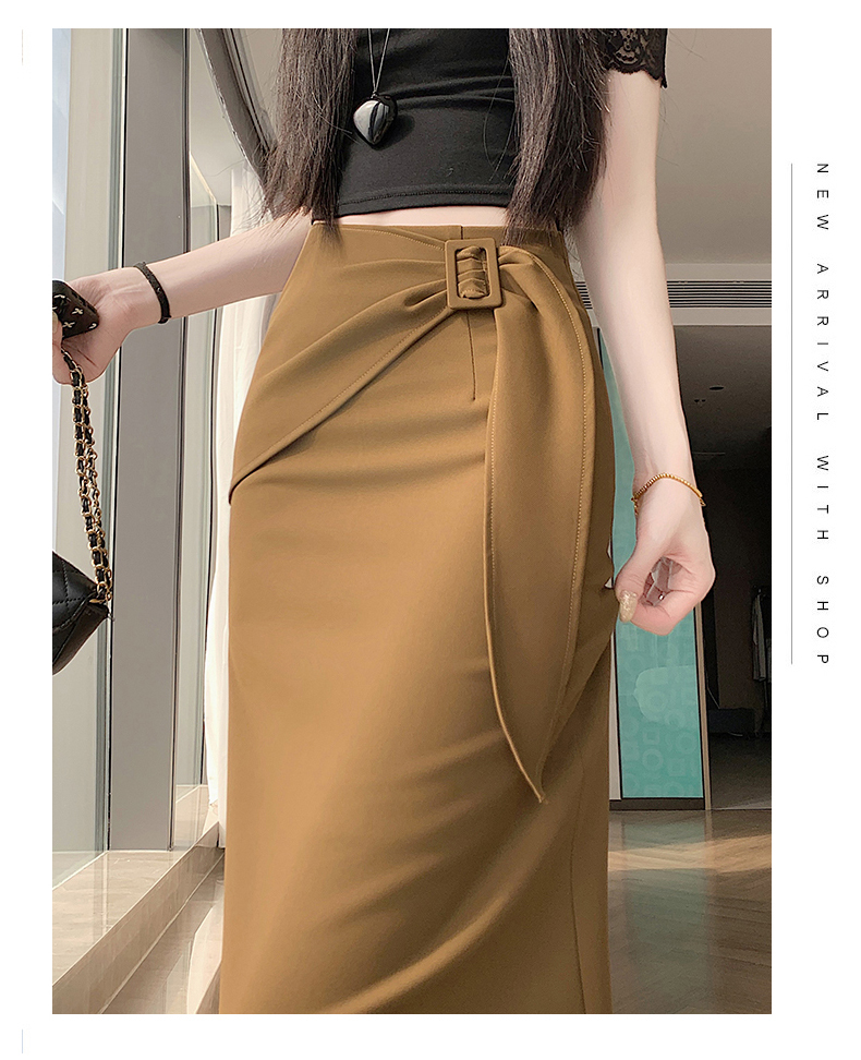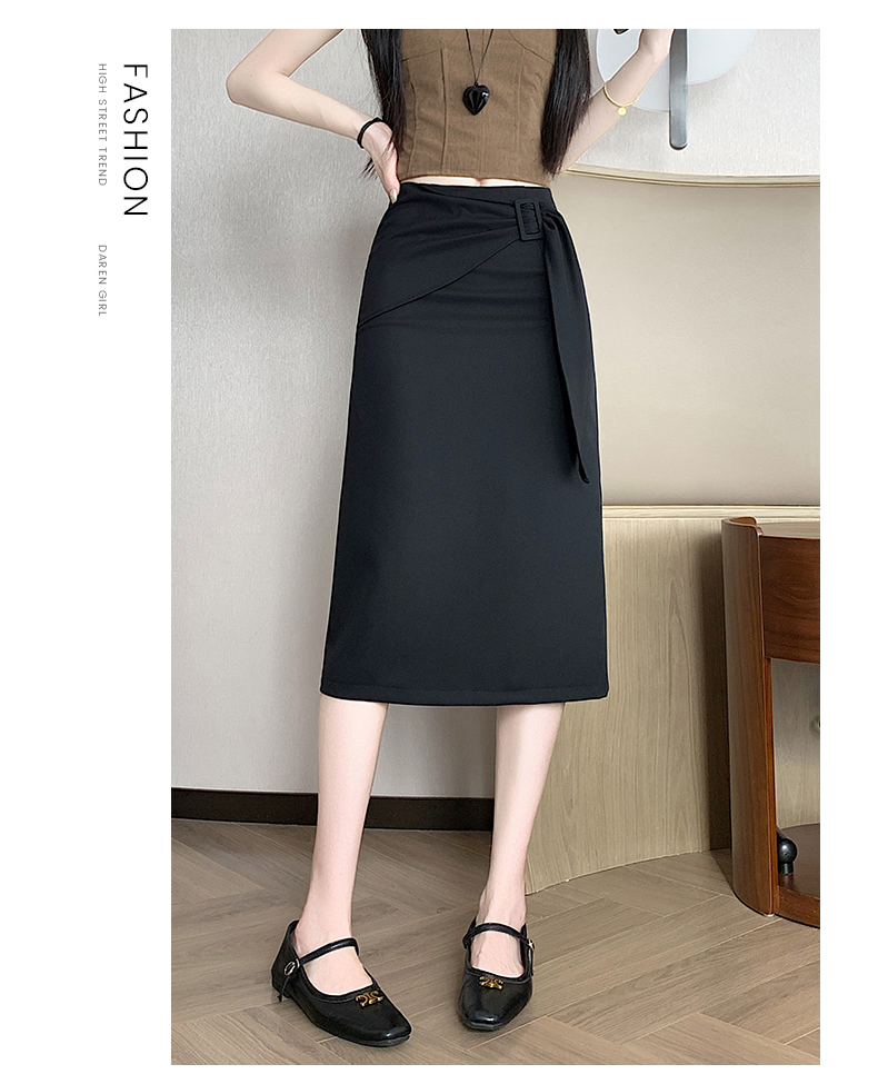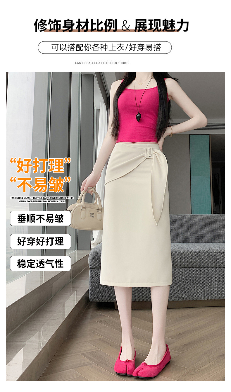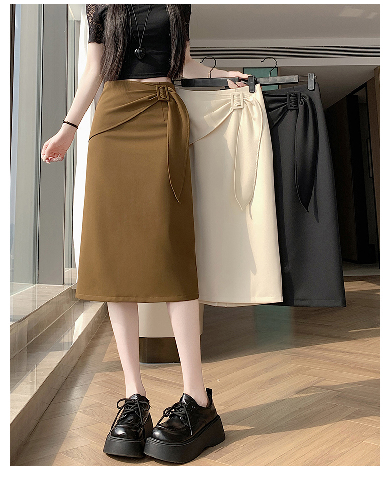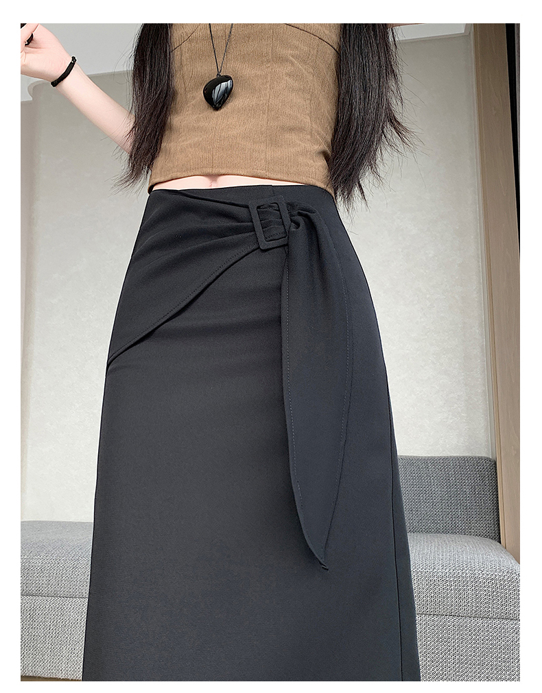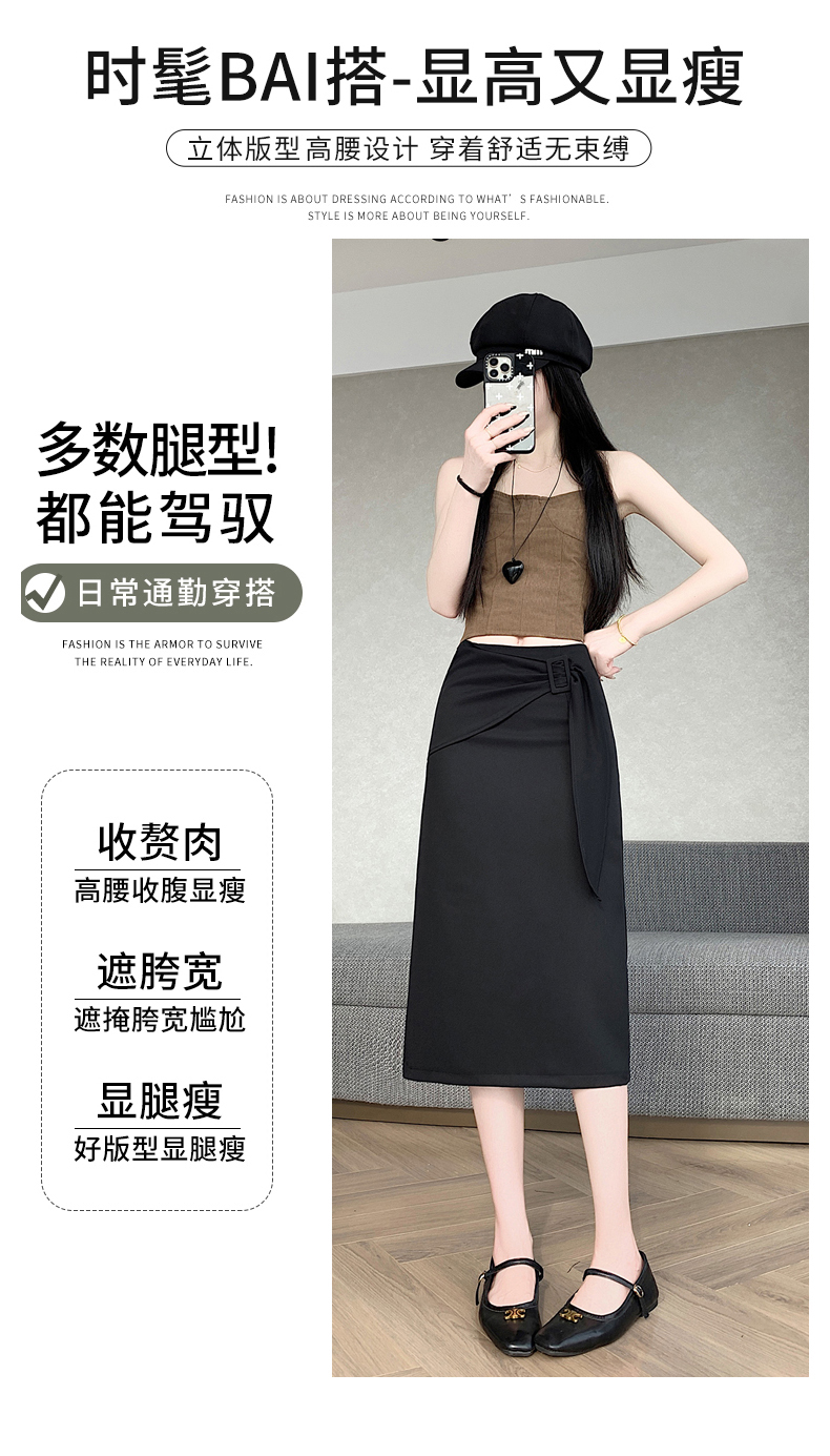 2026 트임 반신 스커트 여성 하이웨이스트 스트레이트 치마 디자인 센스 지퍼 중간 길이 스커트 주름 반신 기본 스커트
