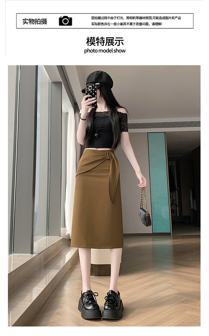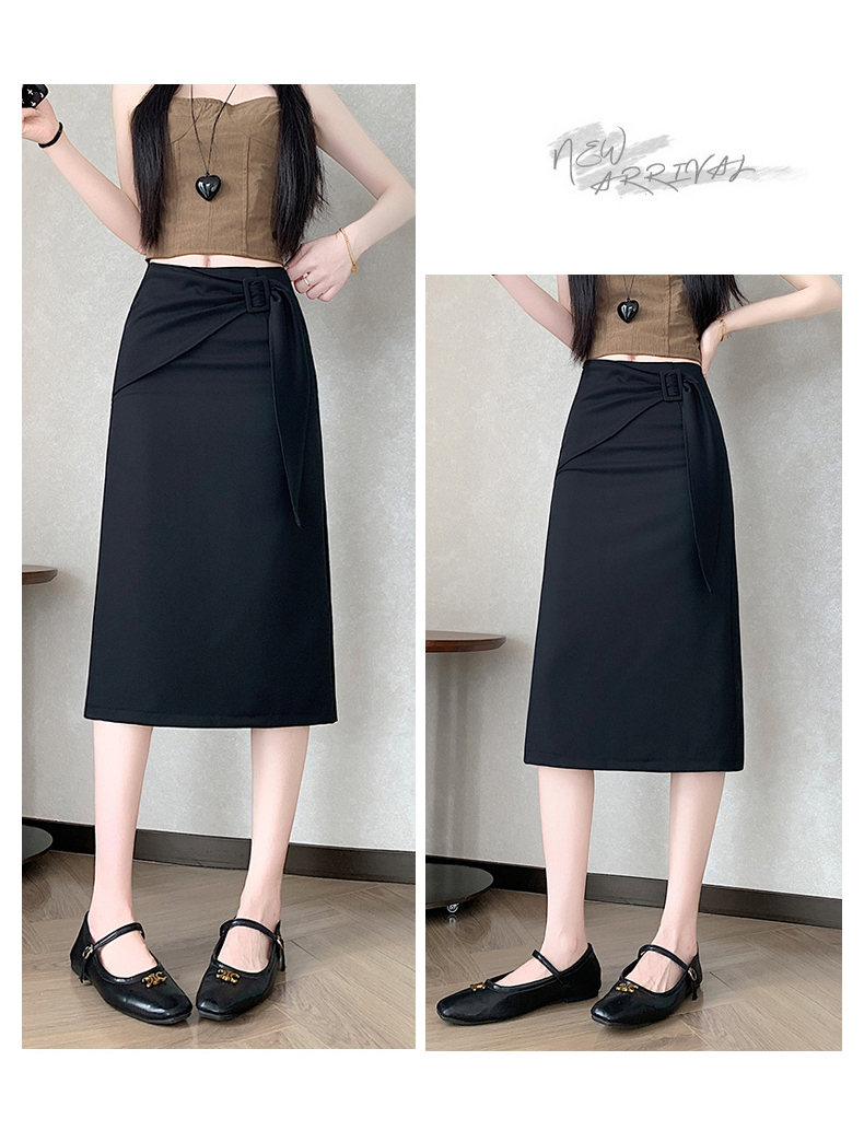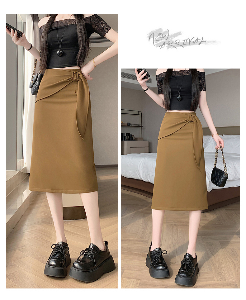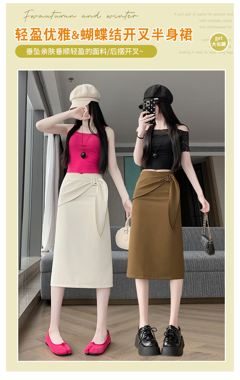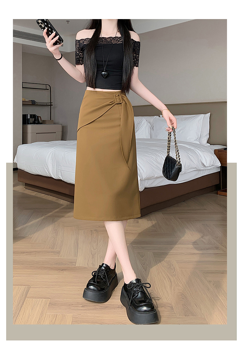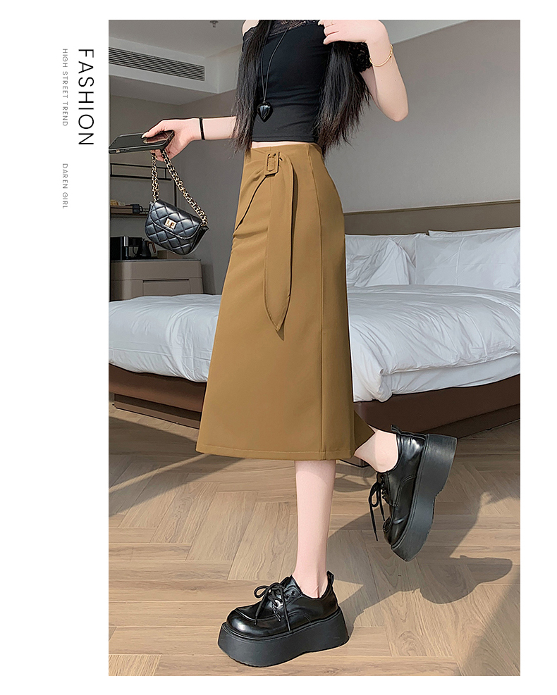 2026 트임 반신 스커트 여성 하이웨이스트 스트레이트 치마 디자인 센스 지퍼 중간 길이 스커트 주름 반신 기본 스커트