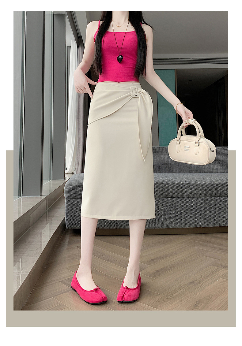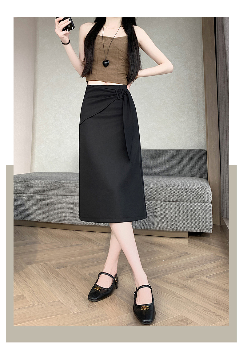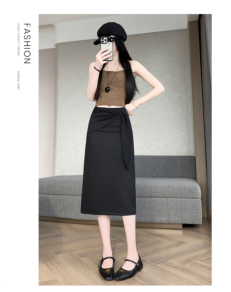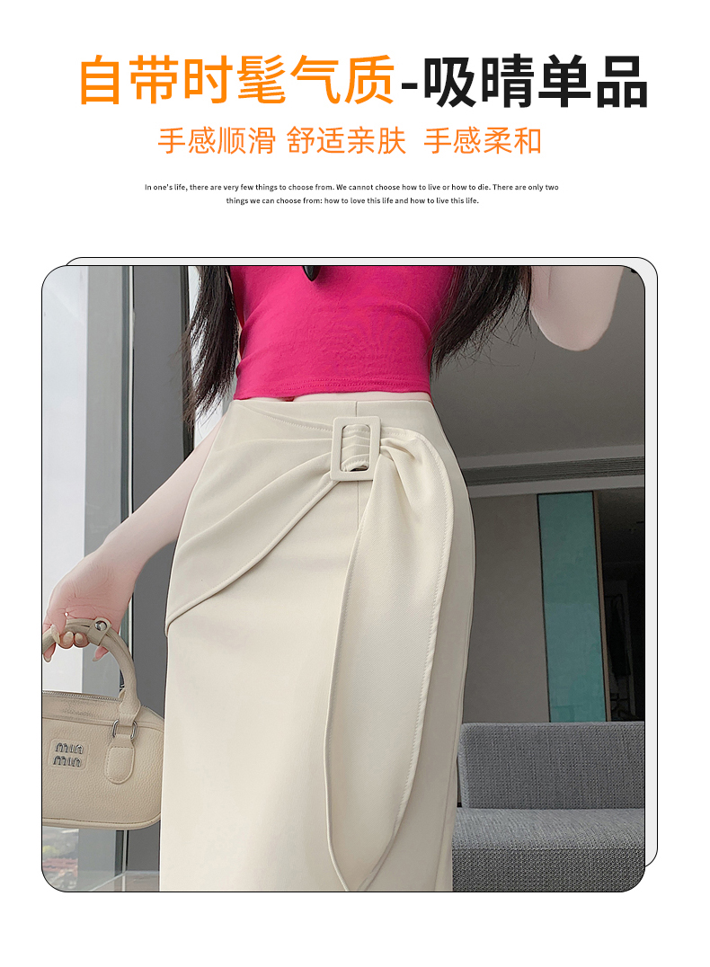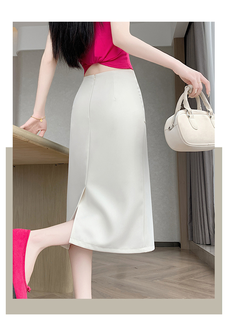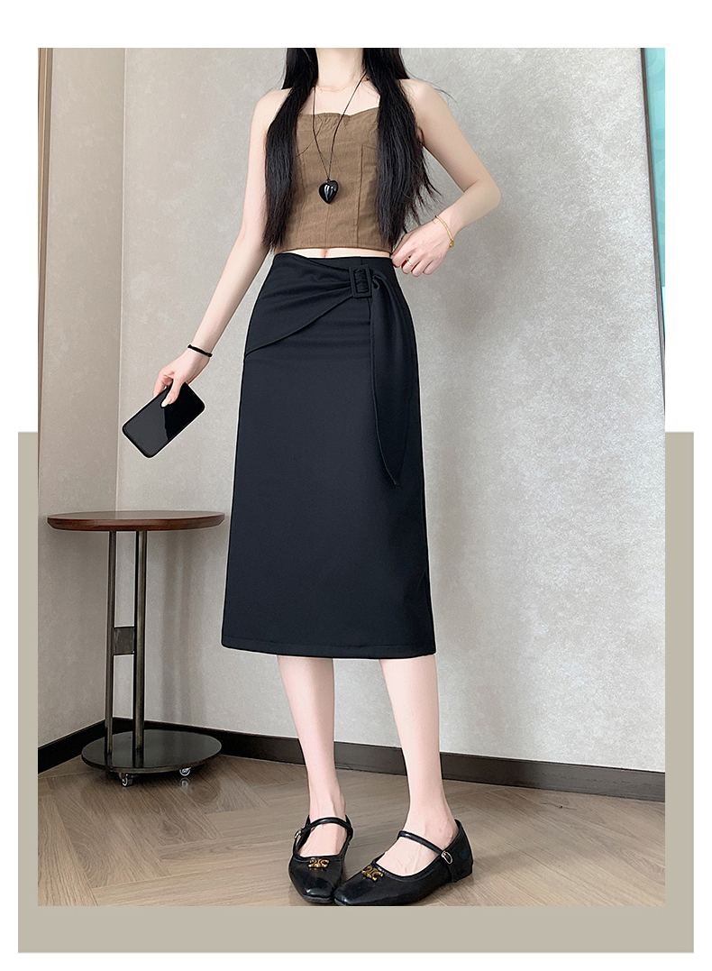 2026 트임 반신 스커트 여성 하이웨이스트 스트레이트 치마 디자인 센스 지퍼 중간 길이 스커트 주름 반신 기본 스커트