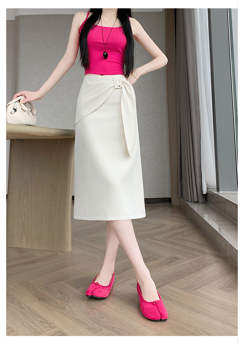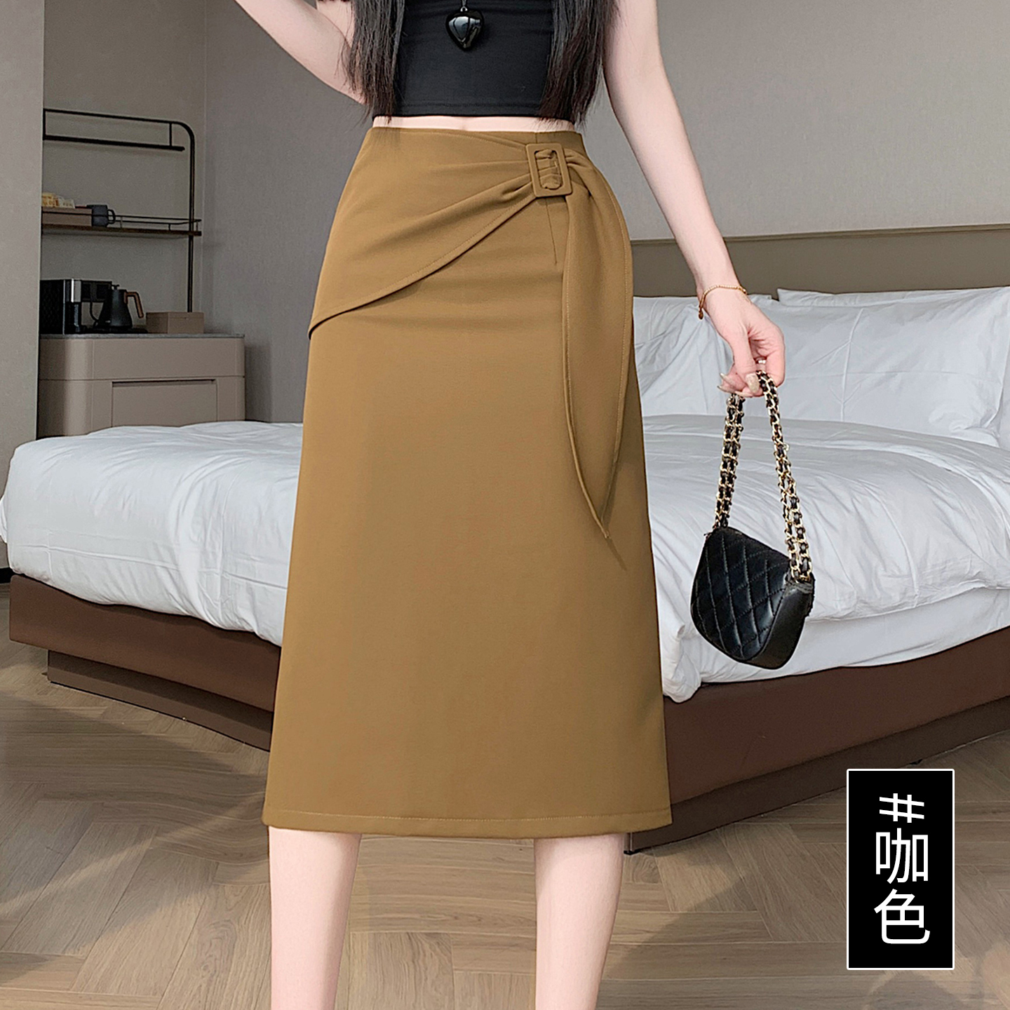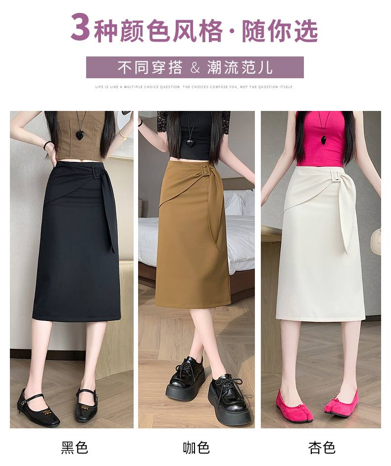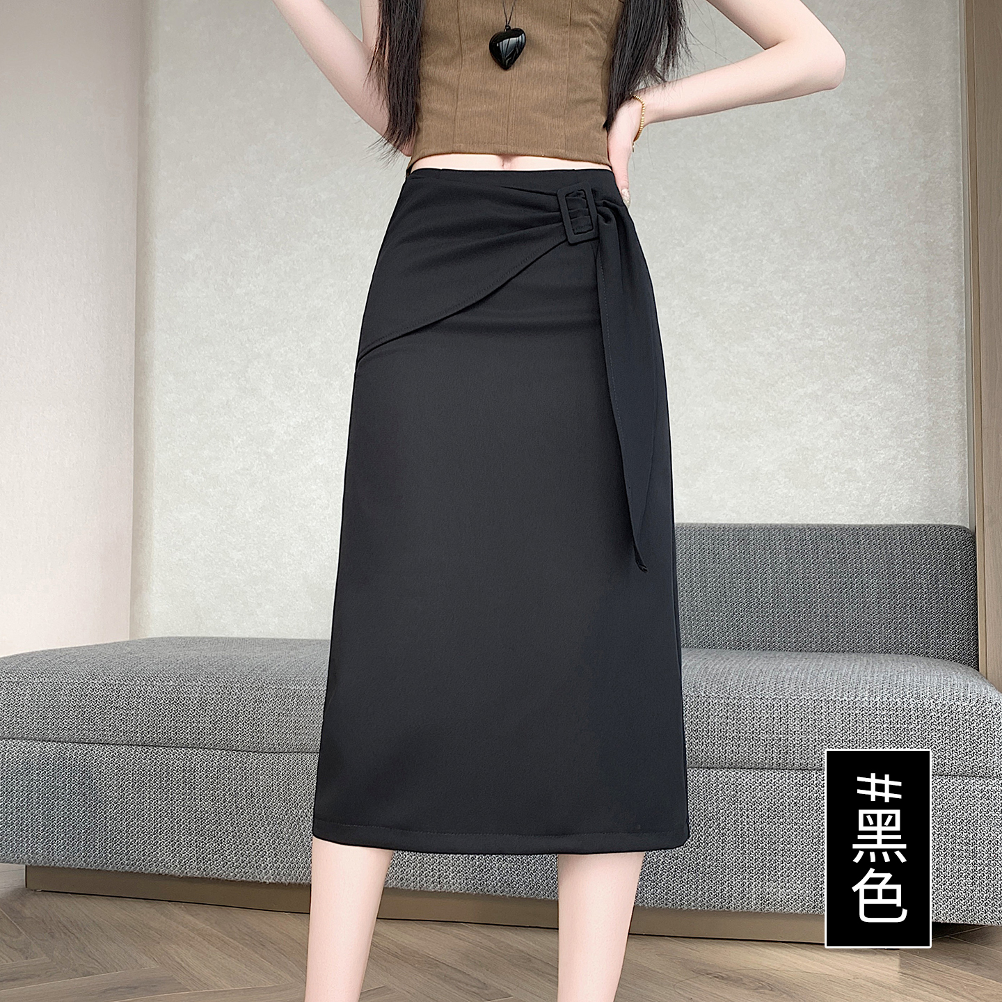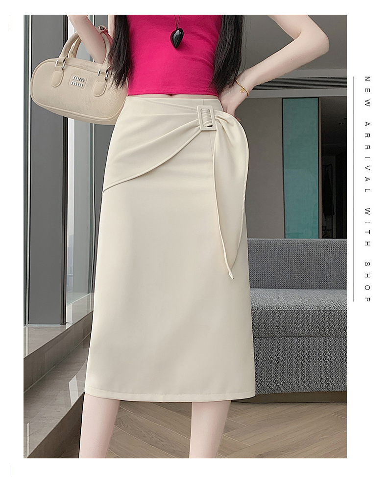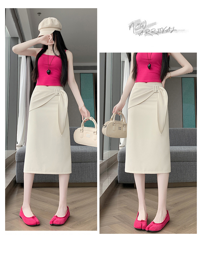 2026 트임 반신 스커트 여성 하이웨이스트 스트레이트 치마 디자인 센스 지퍼 중간 길이 스커트 주름 반신 기본 스커트
