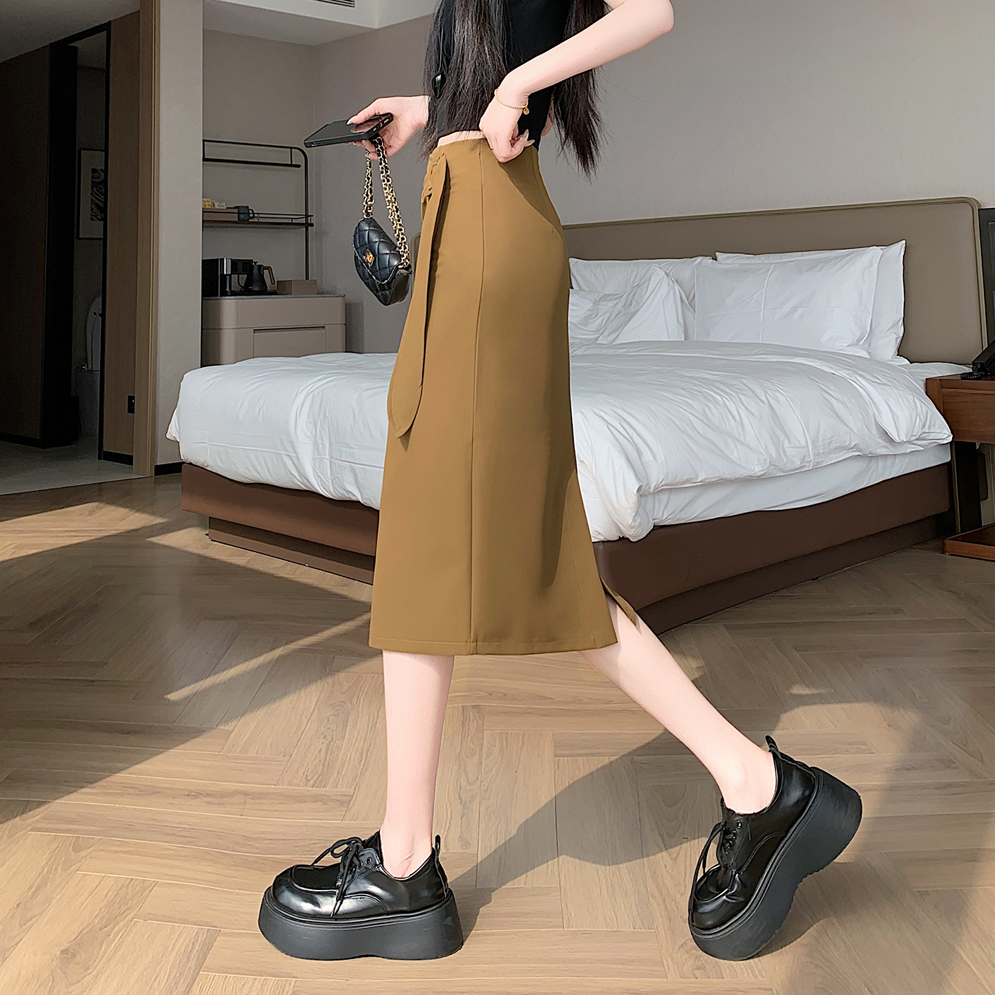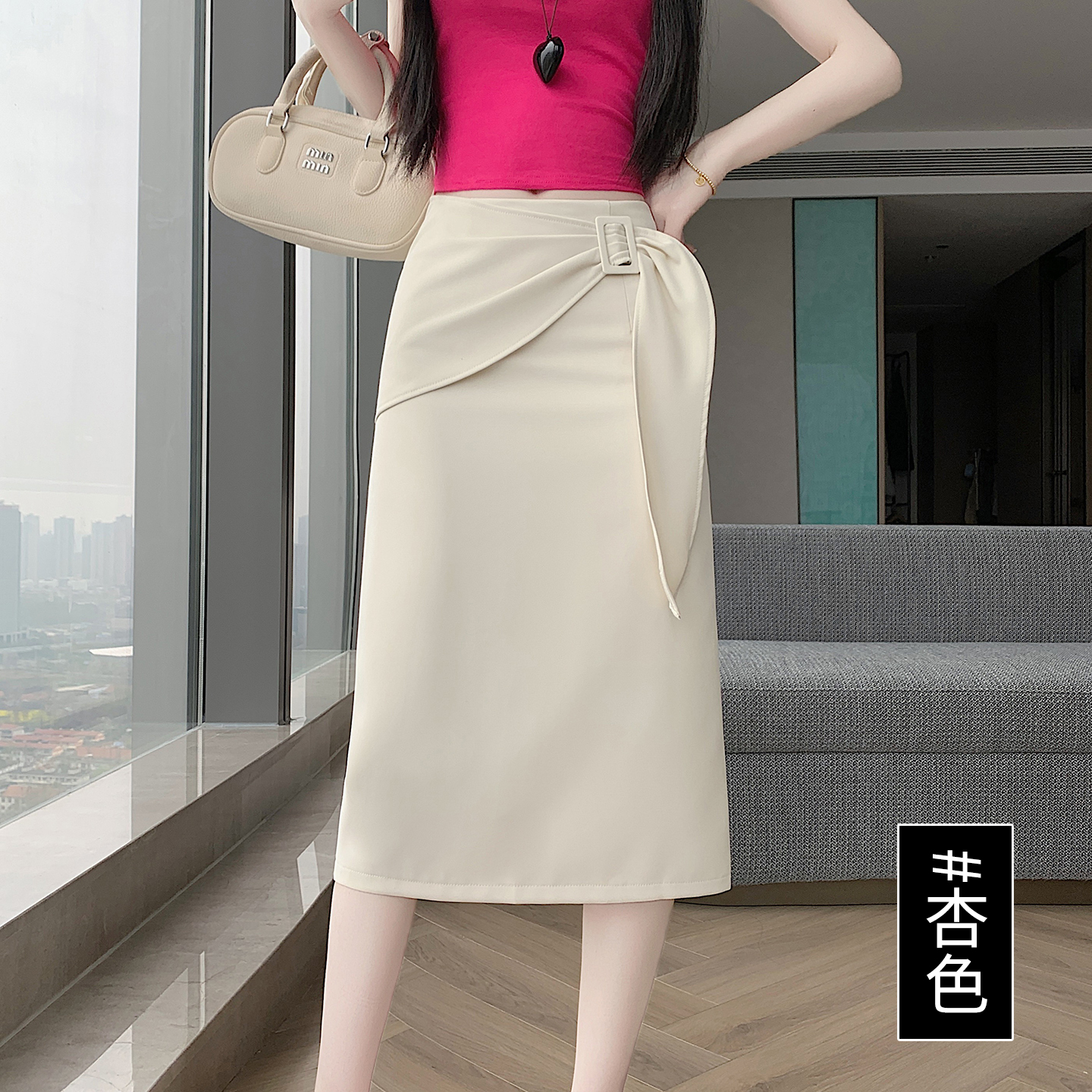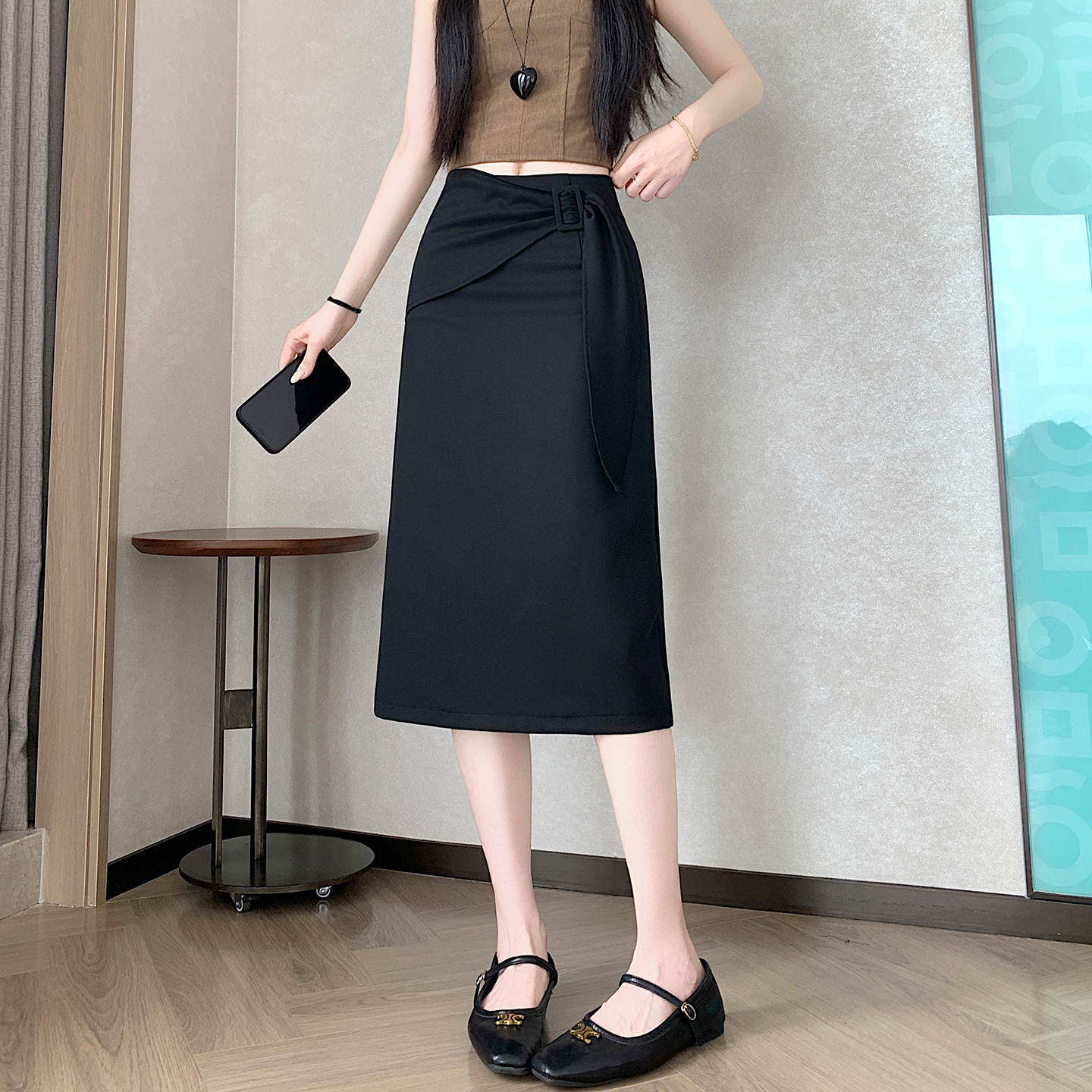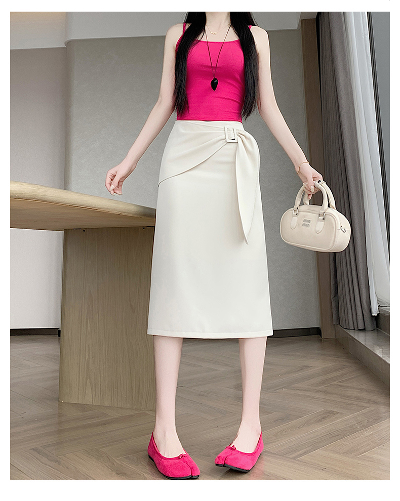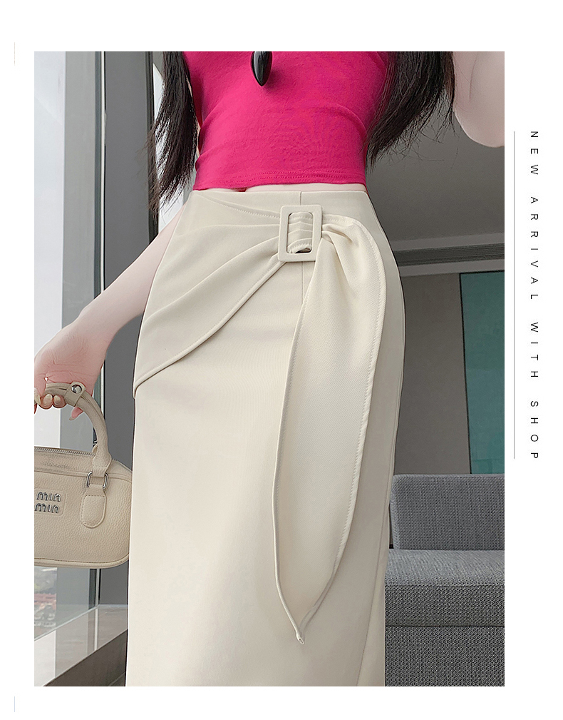 2026 트임 반신 스커트 여성 하이웨이스트 스트레이트 치마 디자인 센스 지퍼 중간 길이 스커트 주름 반신 기본 스커트