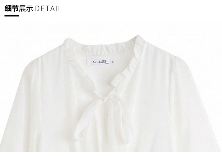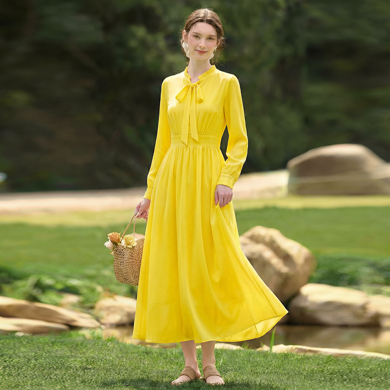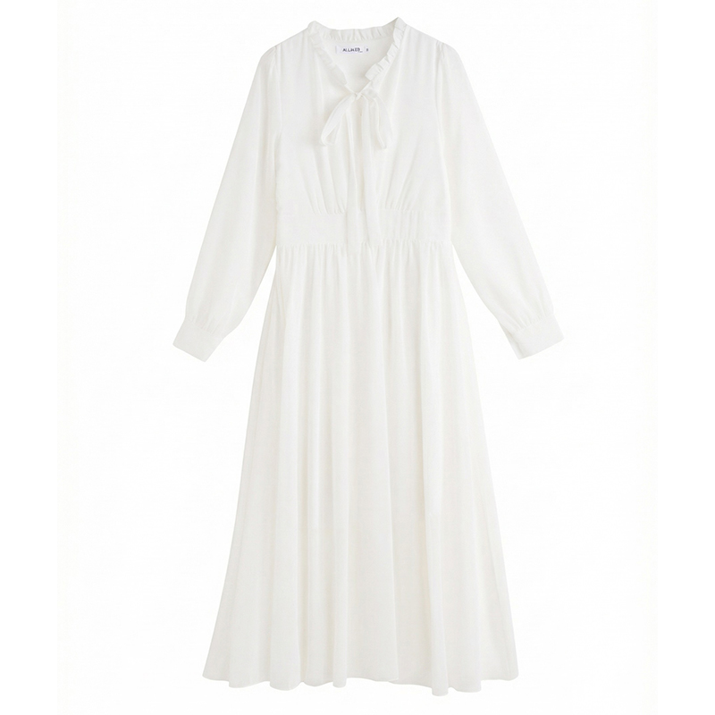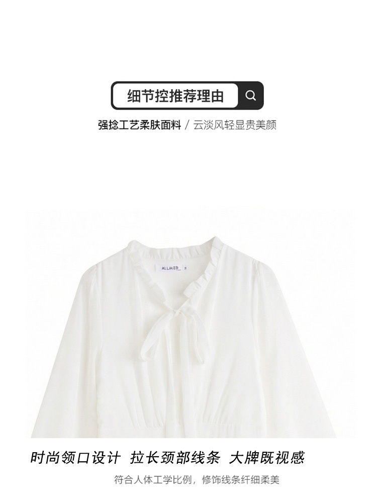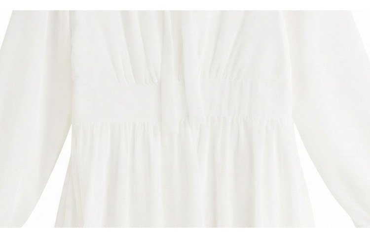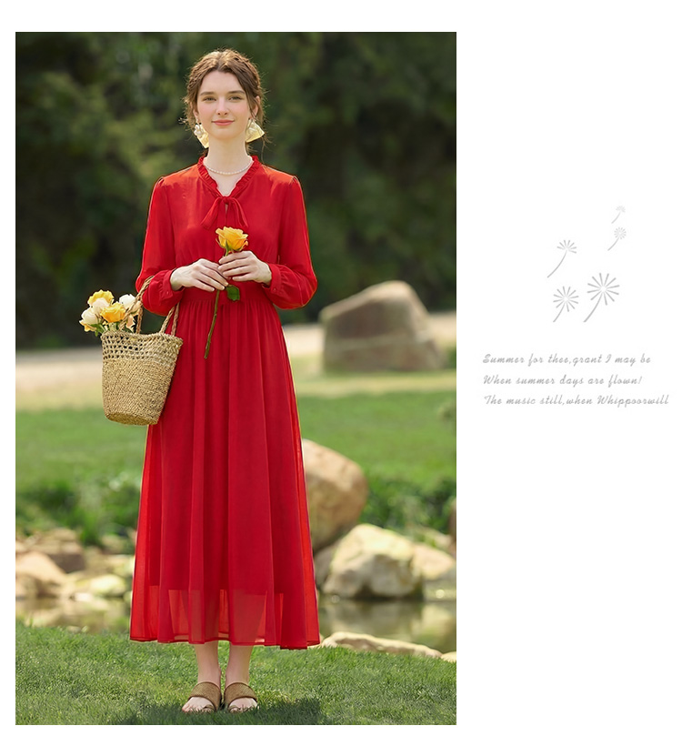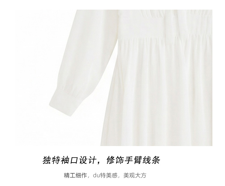 봄 여름 신제품 요정 가스 우아한 칼라 긴팔 드레스 빛 럭셔리 고급 품격 관대 한 점잖은 아름다운 허리 수축 롱 스커트