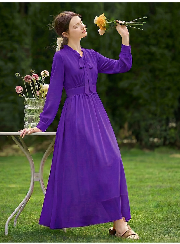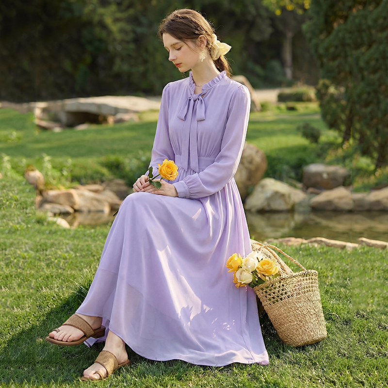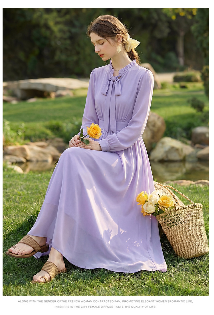 2026 새로운 프랑스식 우아함 보라색 여성 드레스 허리 수축 슬림해 보이는 품격 몸매 가꾸기 고급 센스 롱 스커트