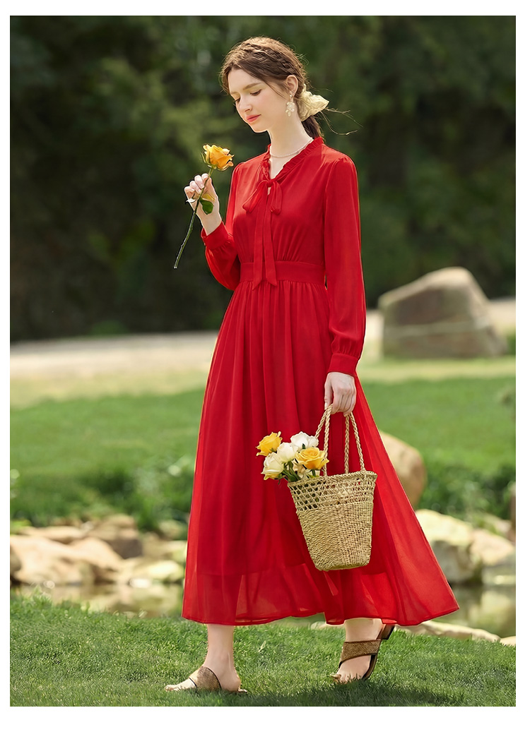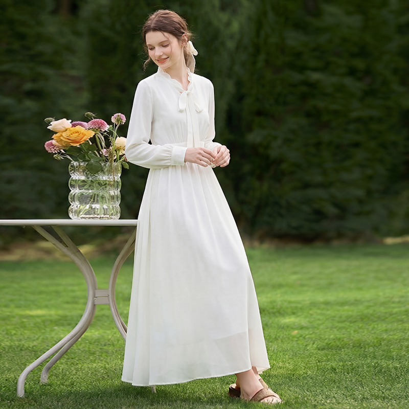 롱 코트 쉬폰 여성 드레스 2026 가을 새로운 프랑스식 여행 휴가 사진 찍기 우아한 슈퍼 요정 롱 스커트