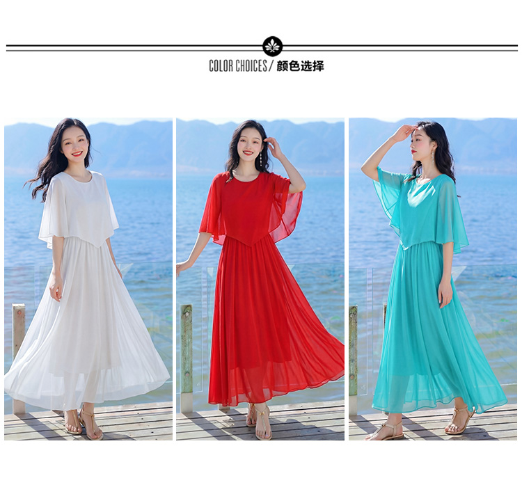 프랑스식 디자인 특대 사이즈 진자 쉬폰 드레스 2026 새로운 품격 허리 수축 여행 휴가 롱 스커트 여성 ~까지 발목