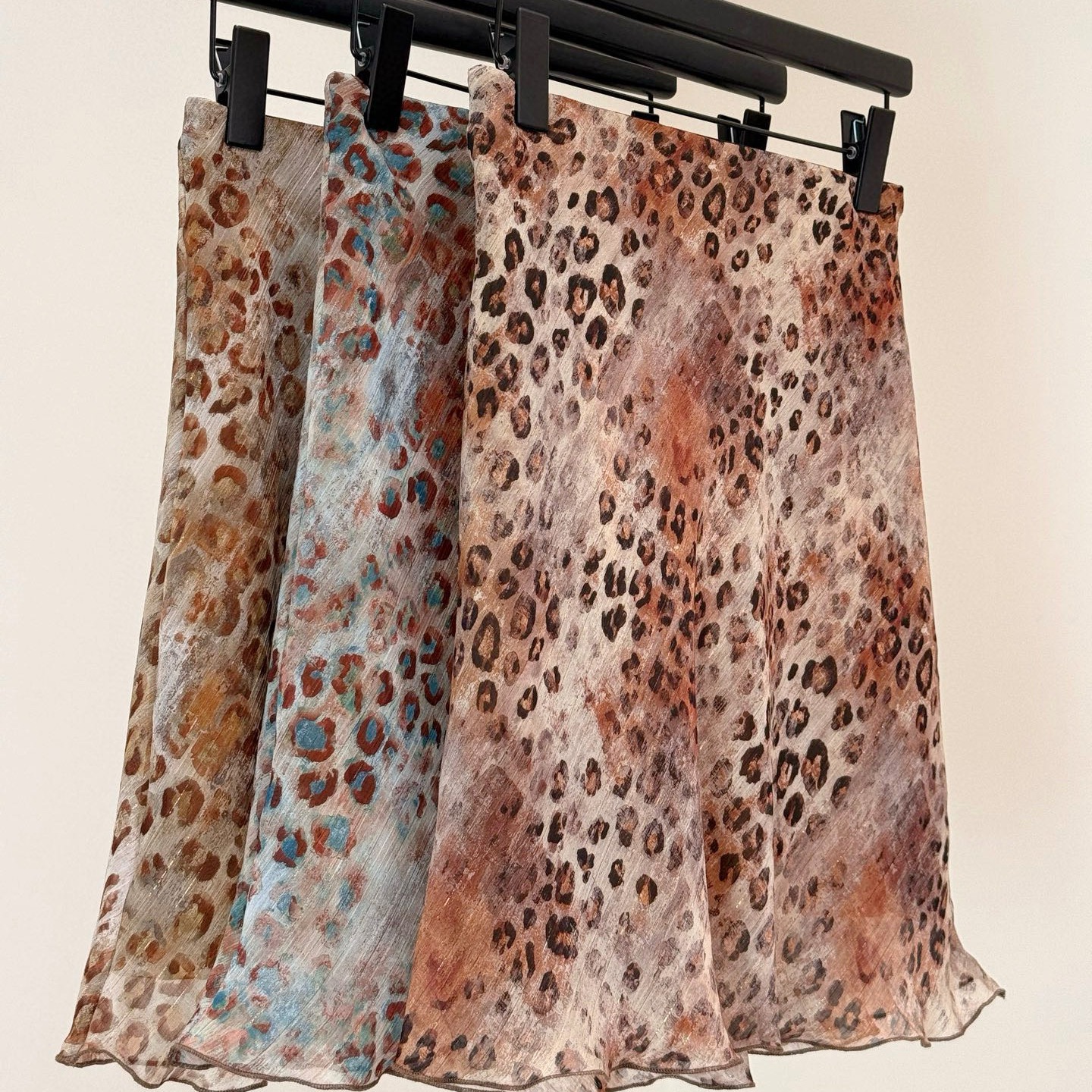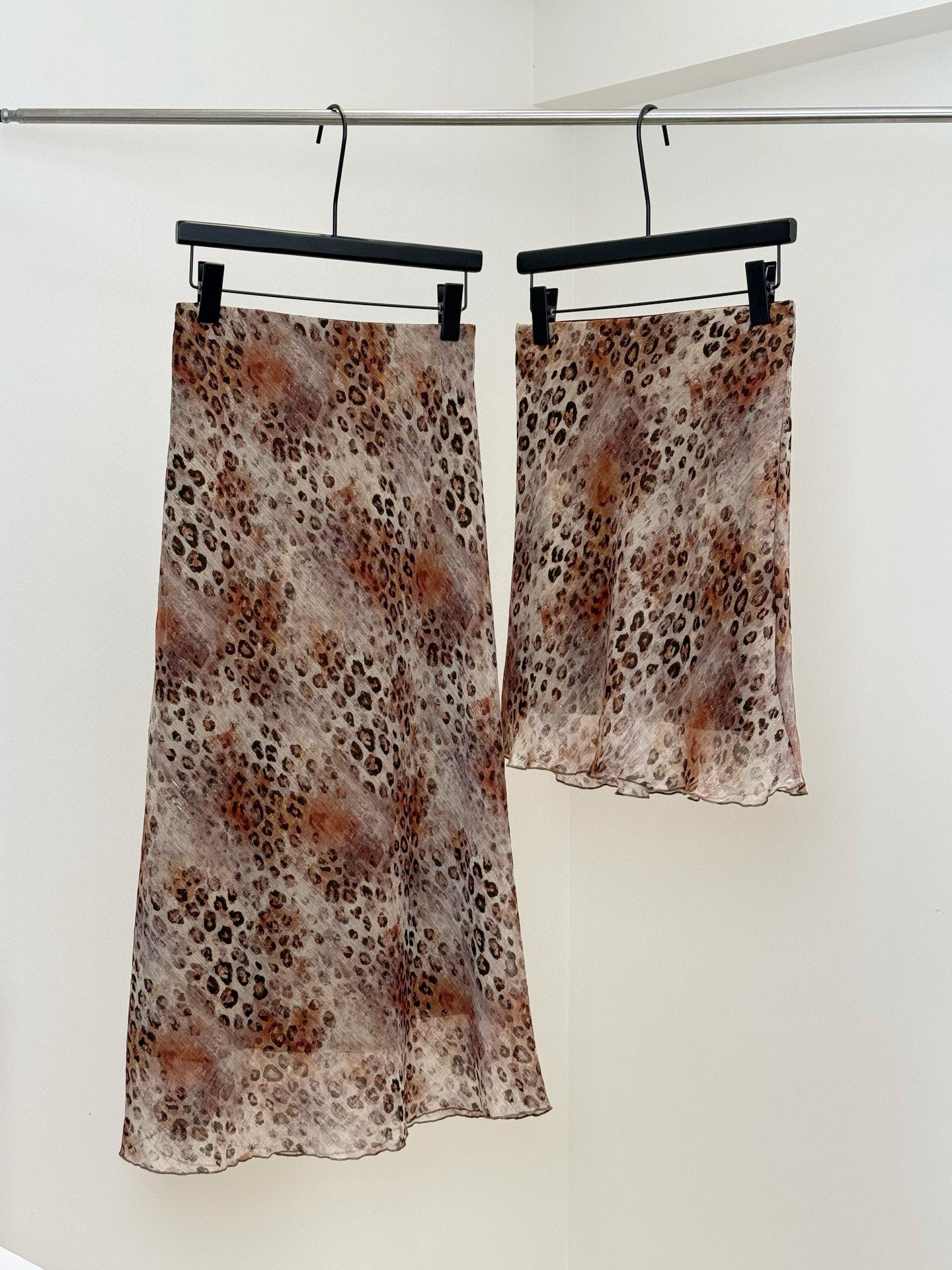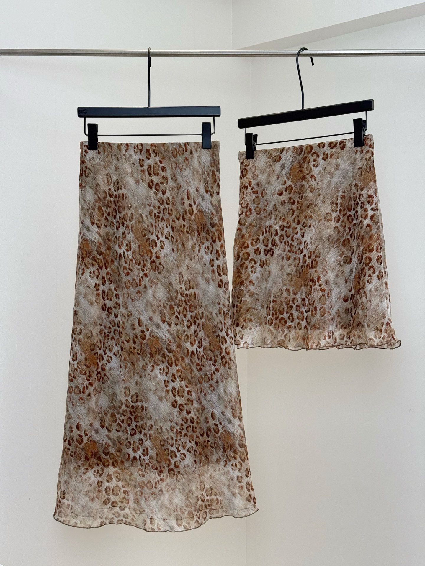 표범 표범 미학 화 초점 슬림해 보이는 금사 쉬폰 레오파드 무늬 품격 봄 여름 반신 롱 스커트 미니 스커트