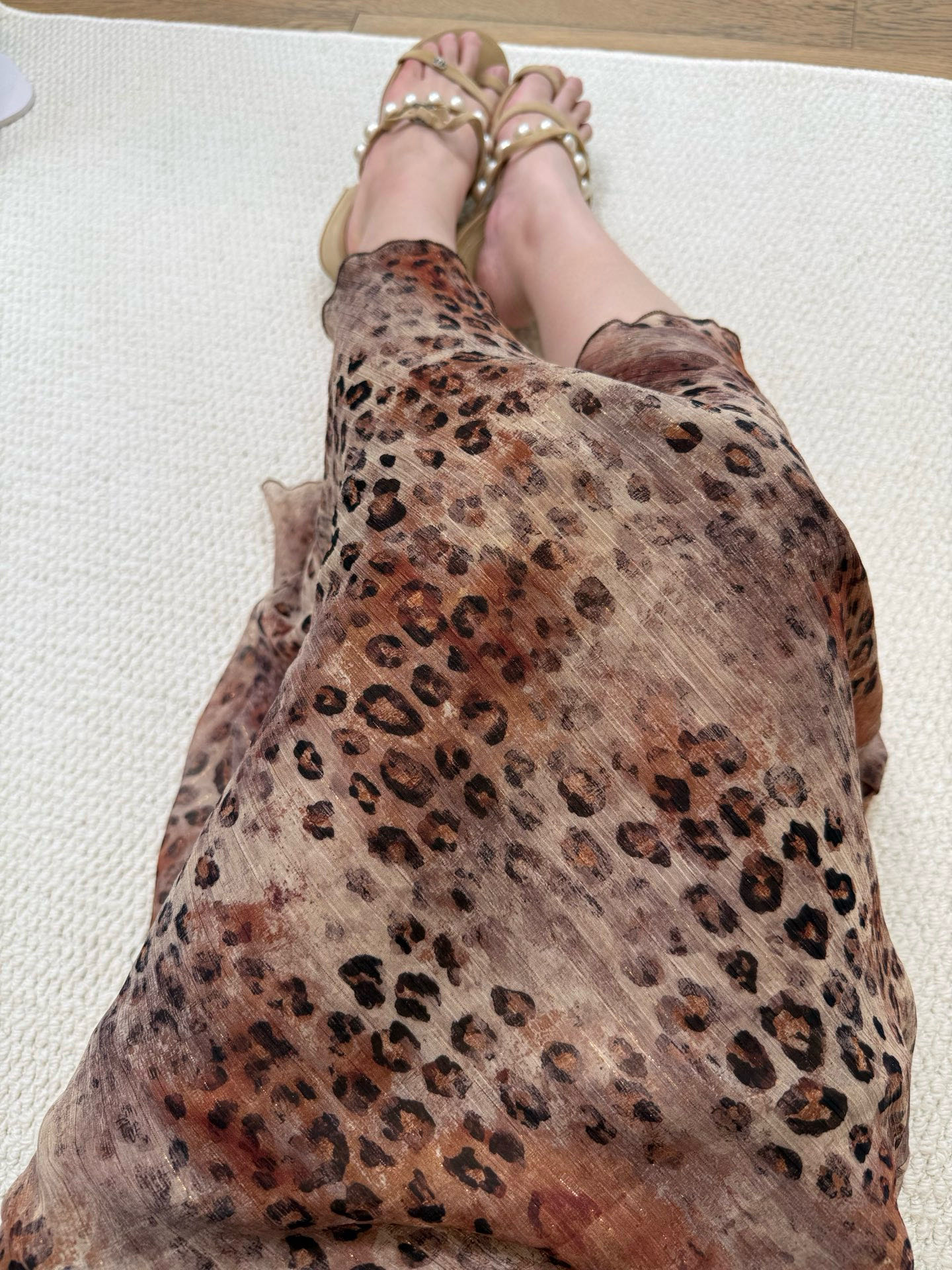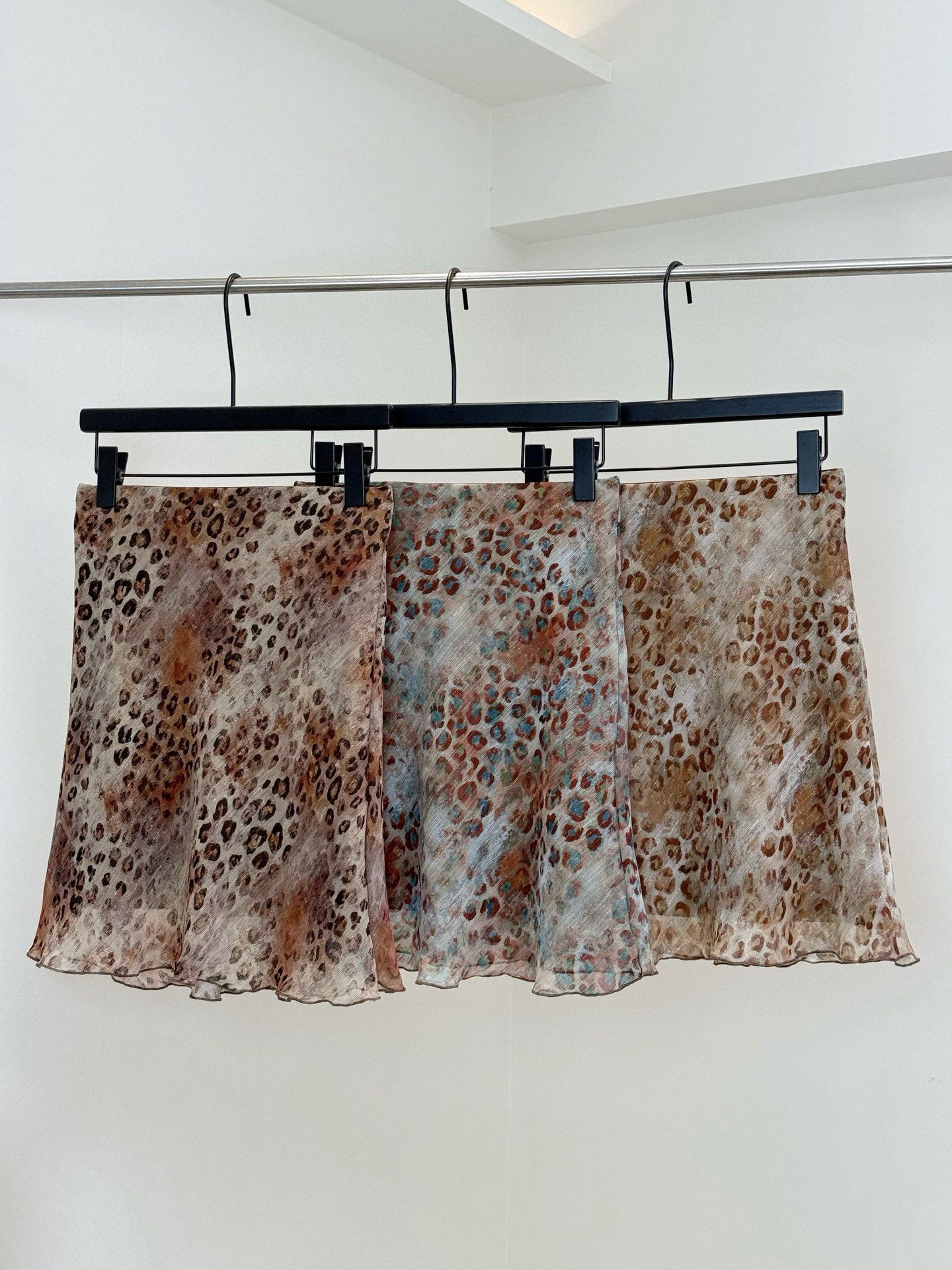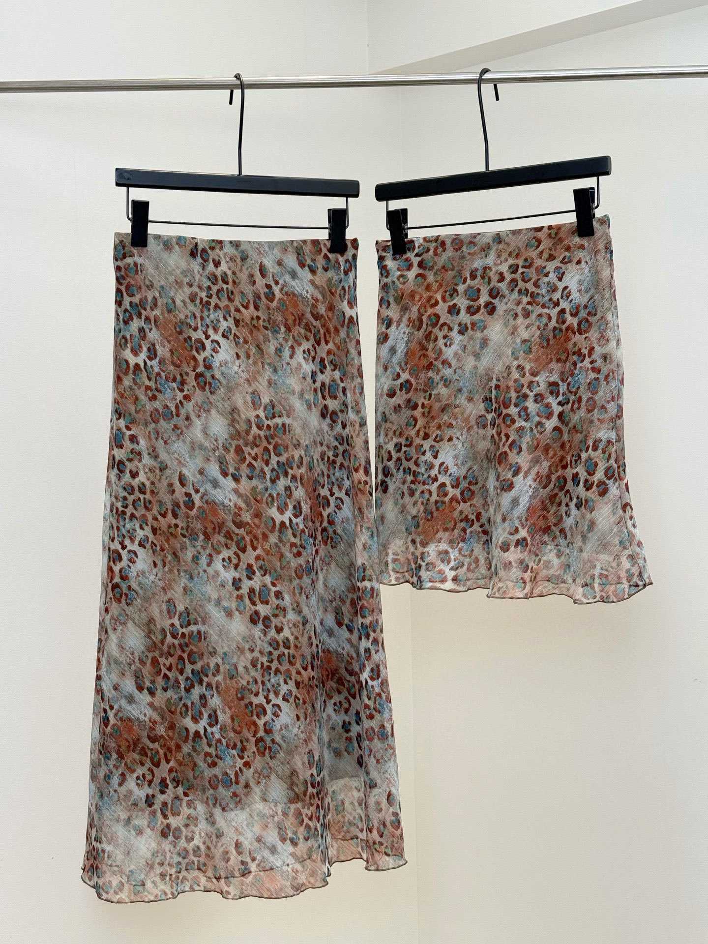 표범 표범 미학 화 초점 슬림해 보이는 금사 쉬폰 레오파드 무늬 품격 봄 여름 반신 롱 스커트 미니 스커트