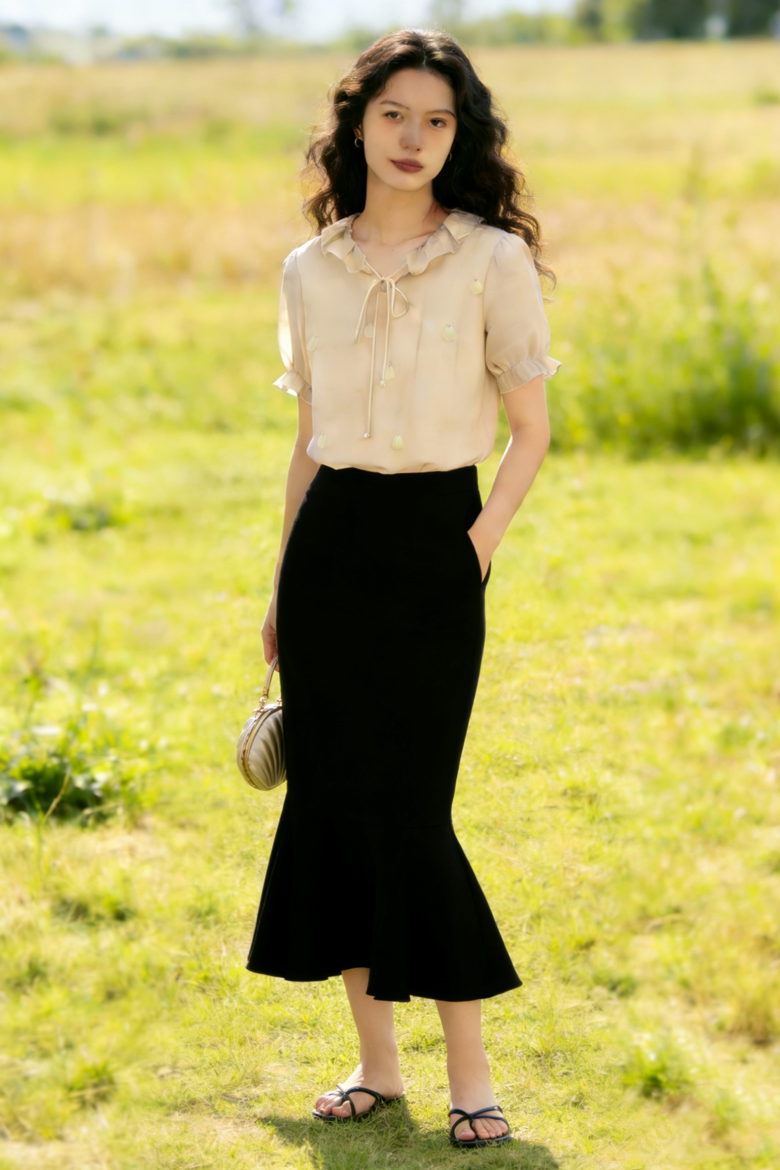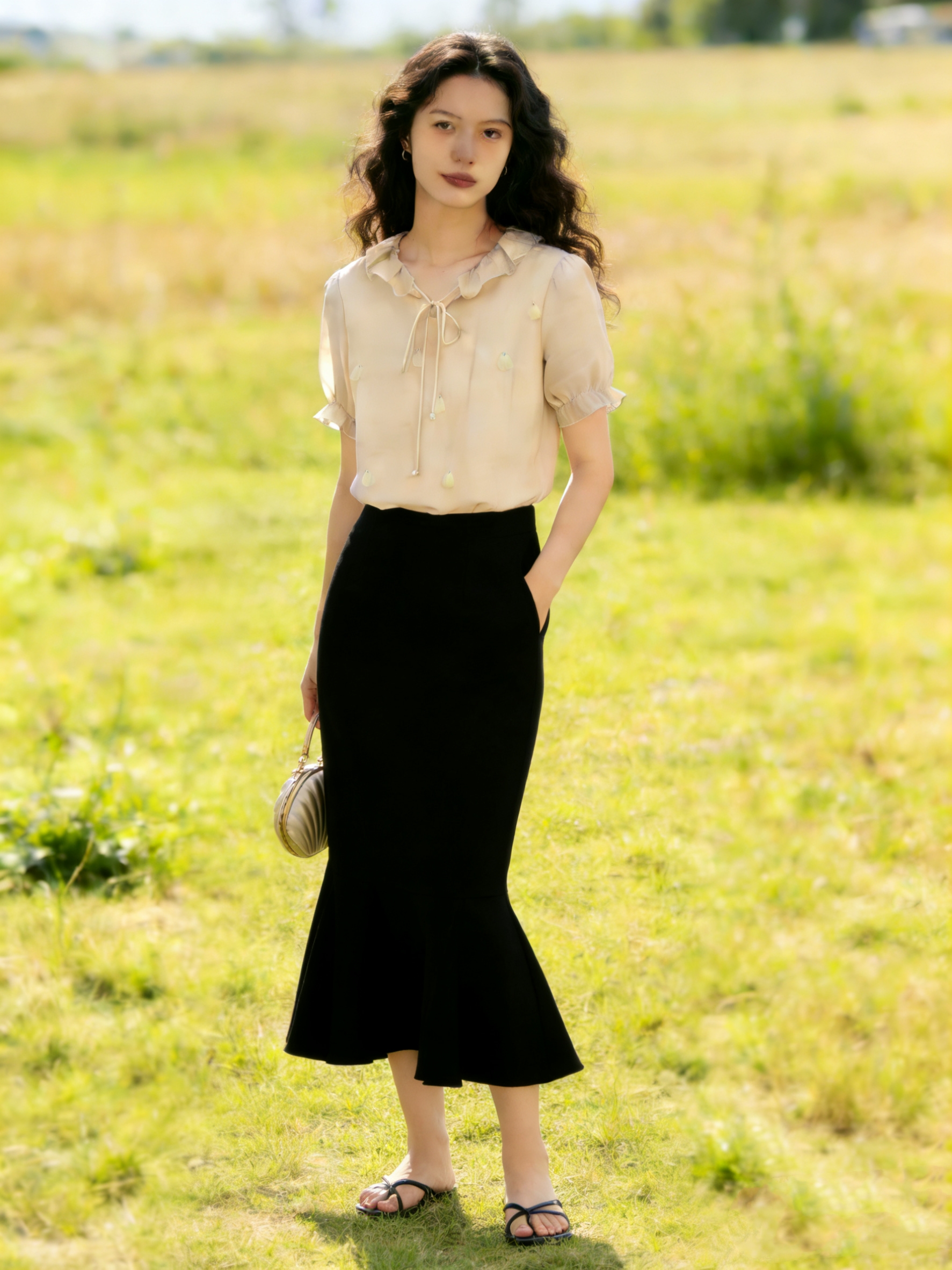 2026 년 봄 출퇴근 바람 새틴 도트 무늬 반신 스커트 여성 몸매 가꾸기 슬림해 보이는 한 마디 싸움 거즈 스커트 다용도 캐주얼 치마