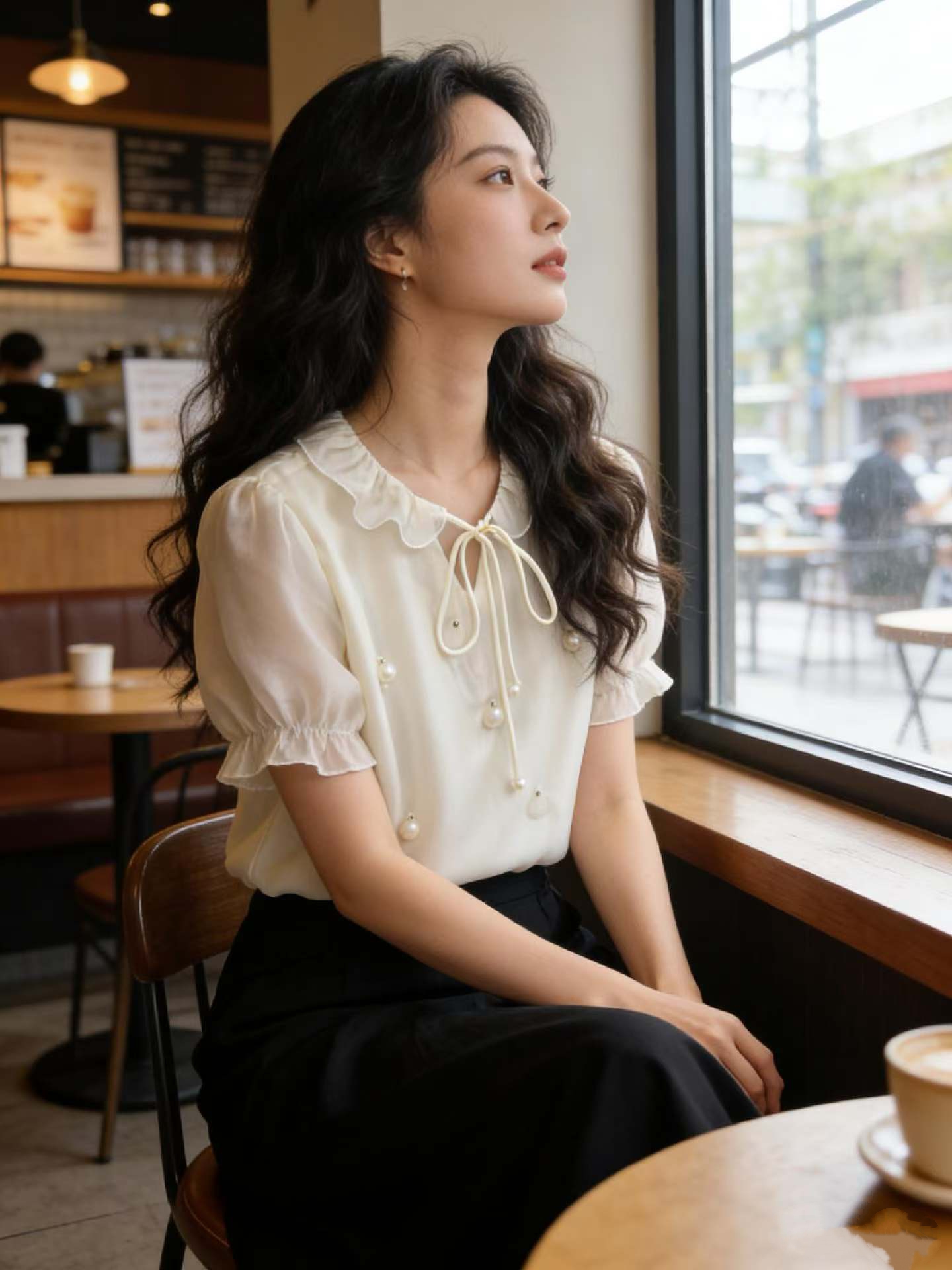 실사 프랑스식 품격 3 차원 꽃 반팔 여성 셔츠 2026 여름 새로운 부드러운 비즈 박기 맨위 거품 소매