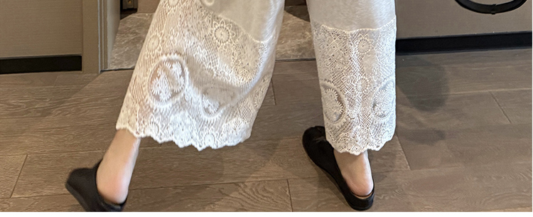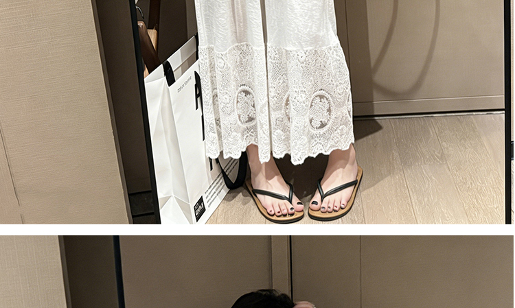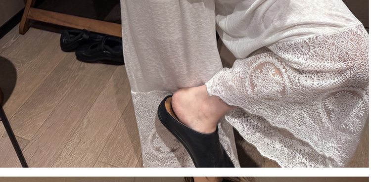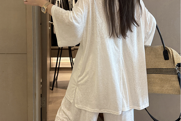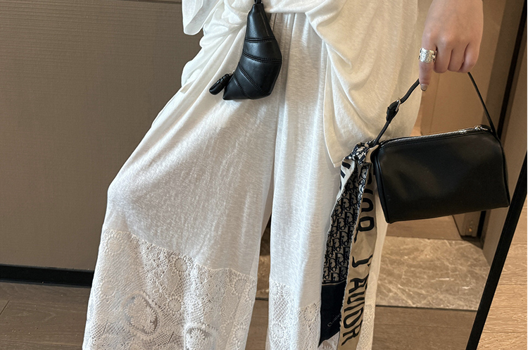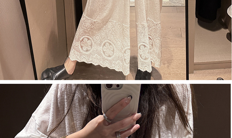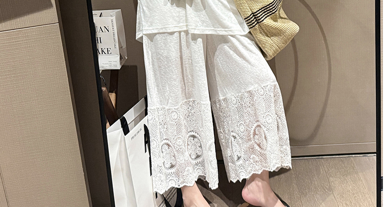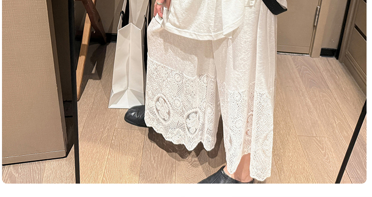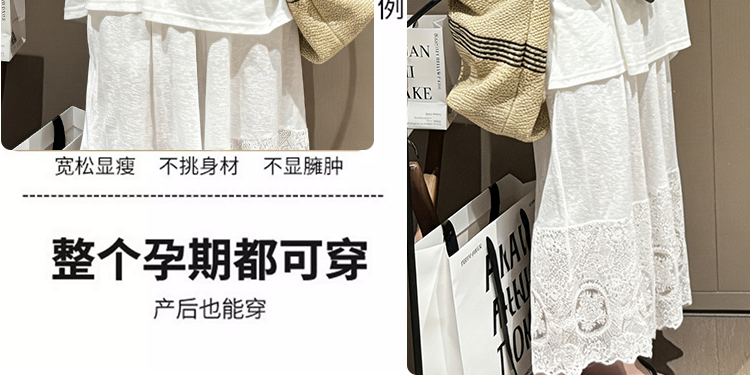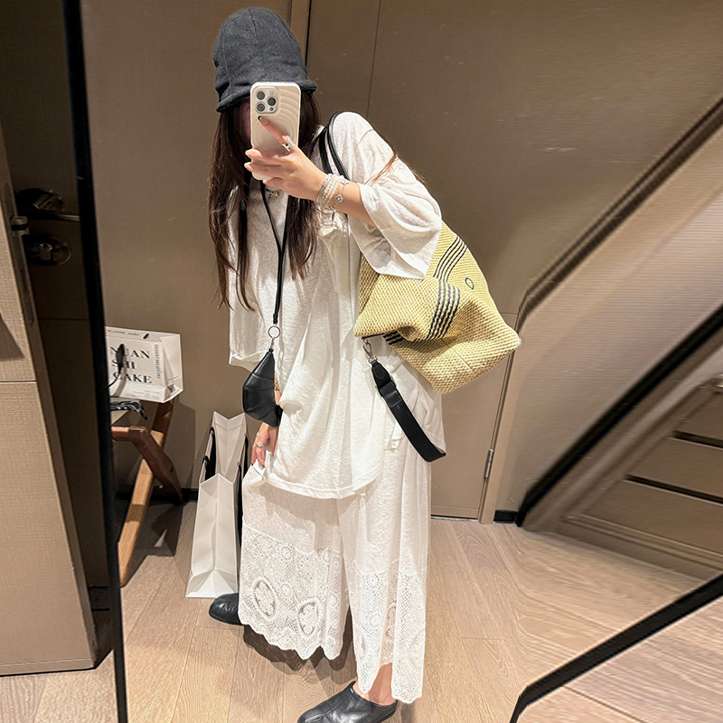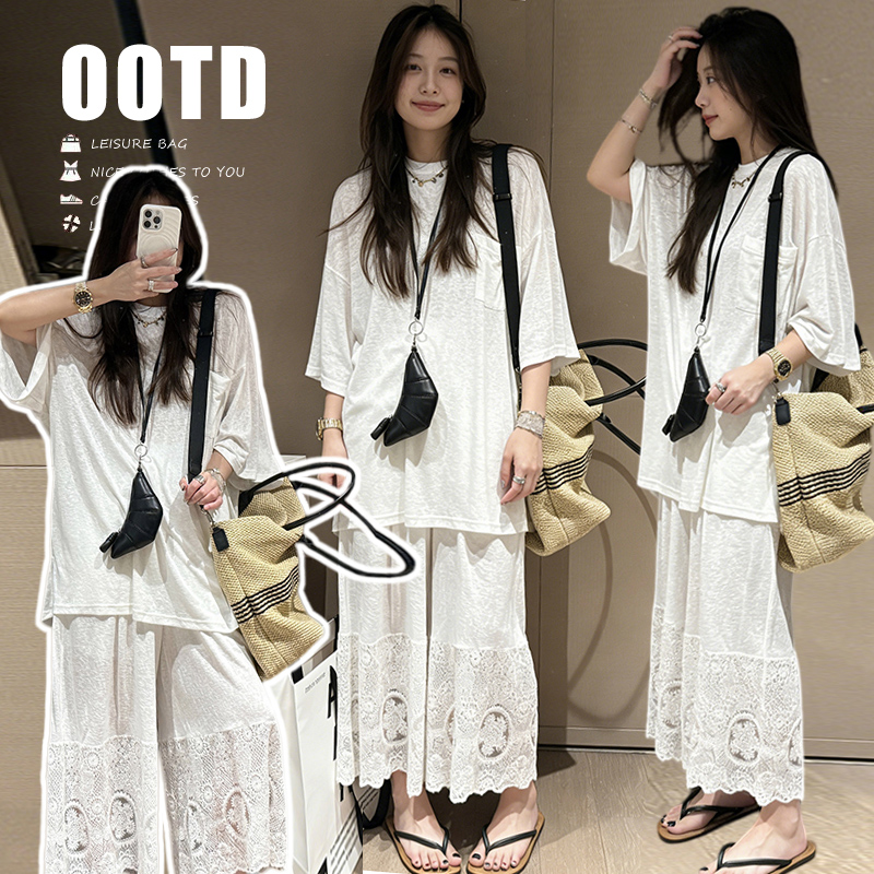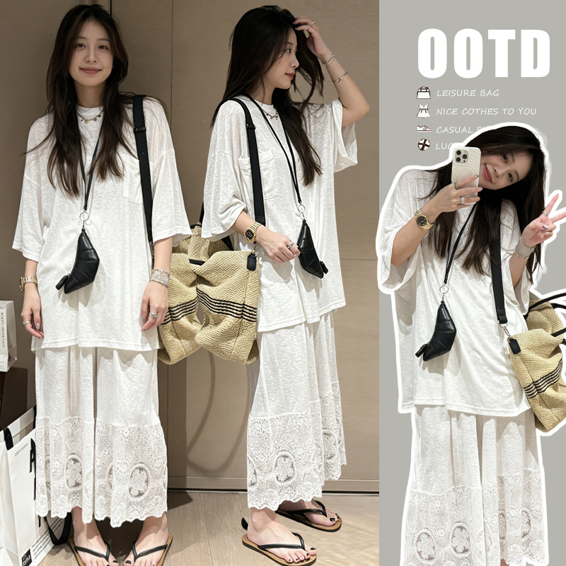 느긋한 바람 티셔츠 세트 여름 새로운 슬림해 보이는 레이스 방귀 커튼 긴 바지 임산부 투피스 세트
