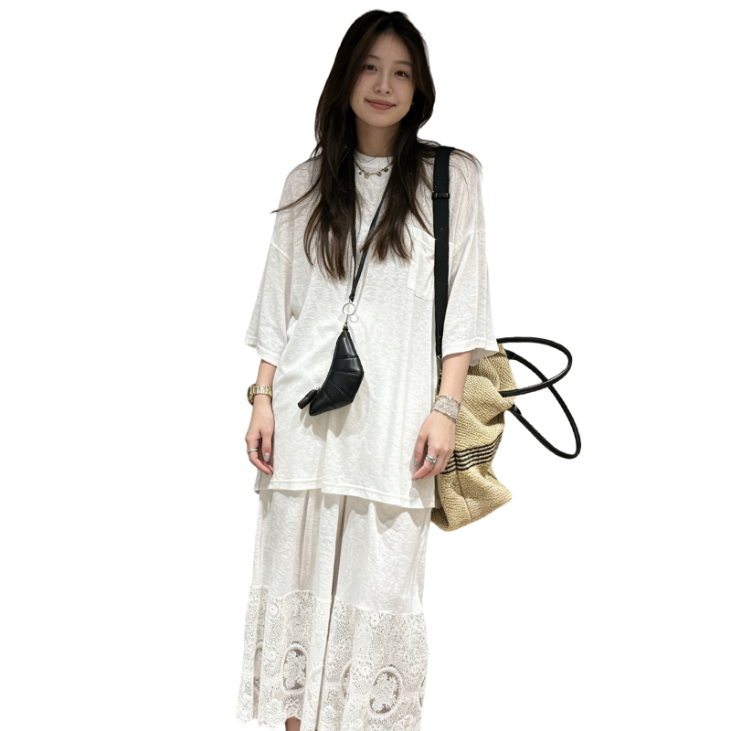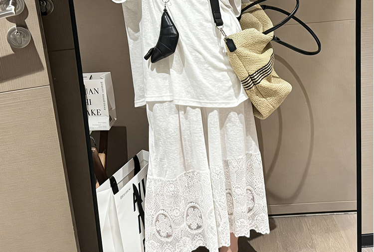 레이스 반팔 맨위 꽃 반 스커트 임산부 투피스 세트