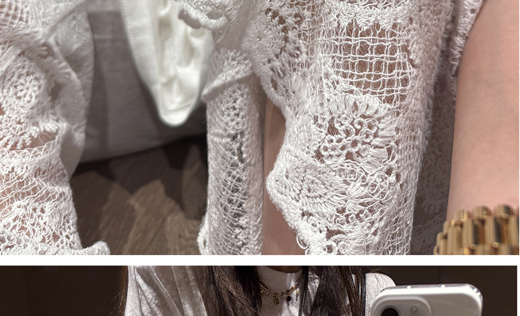 실사 프랑스식 부드러운 바람 레이스 조각 페이크 레이어드 슬립 드레스 니트 오픈 가디건 투피스 세트