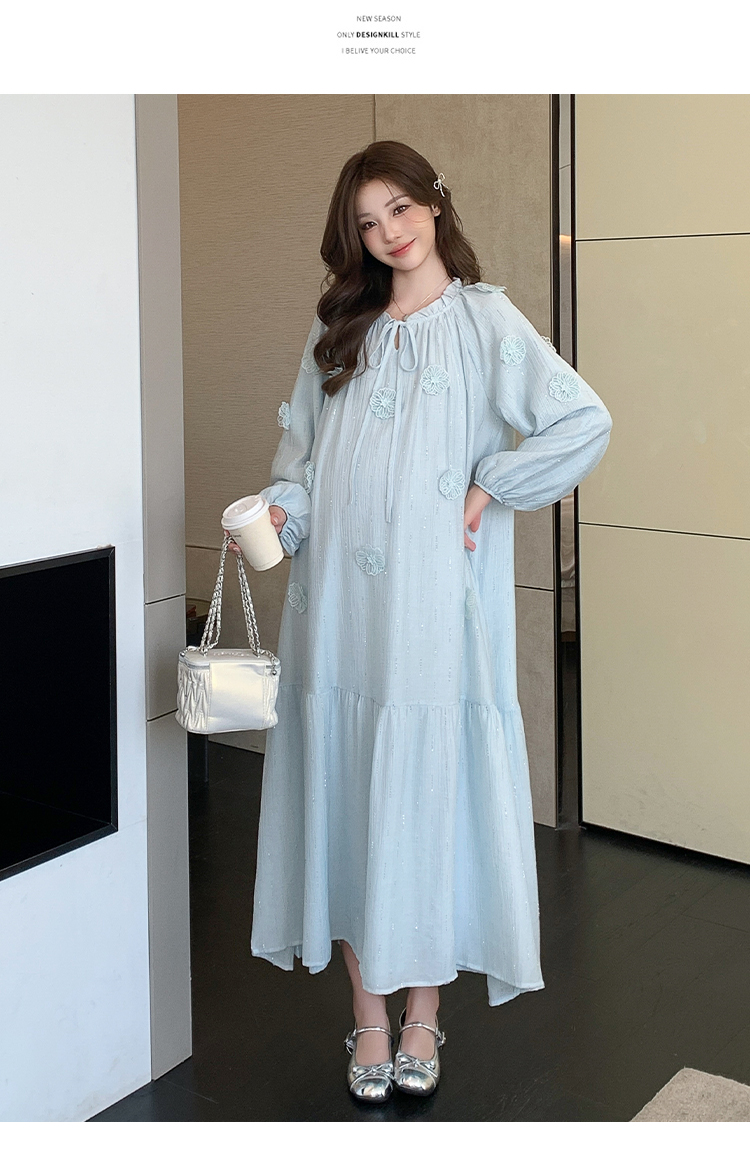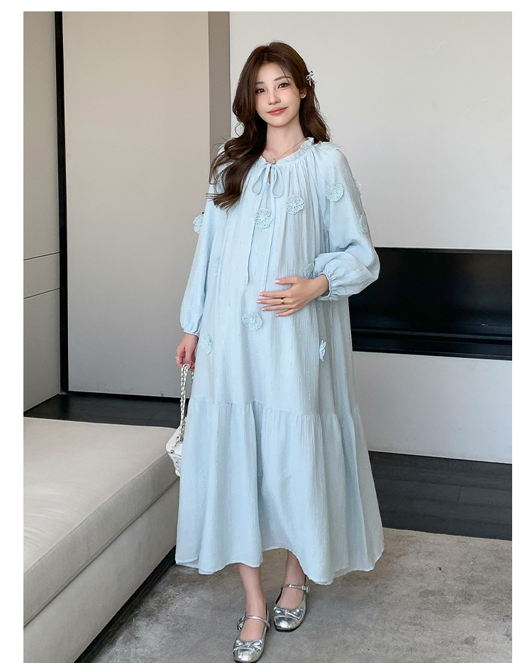 실사 지금 지금 새로운 출산 착용 한국 스타일 하이웨이스트 슬림해 보이는 요정 임산부 드레스