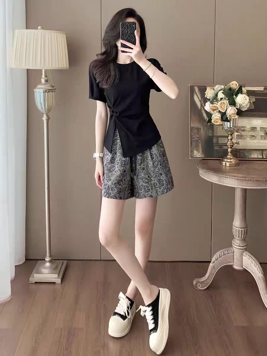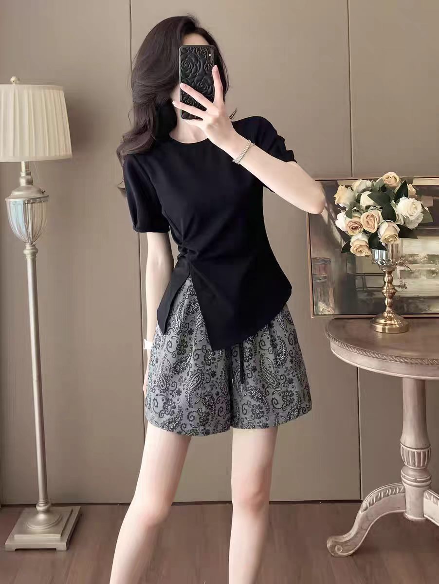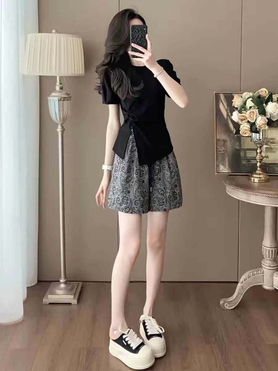 2026 여름 섹션 여성 고급 센스 캐주얼 반바지 세트 패션 외국 가스 연령 감소 슬림해 보이는 표지 고기 투피스 세트 작은 키
