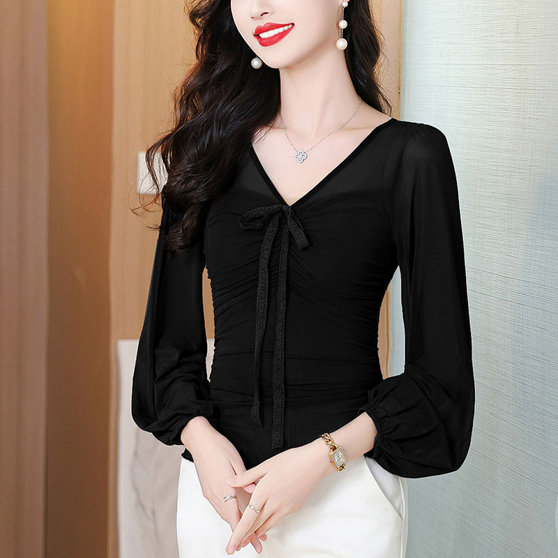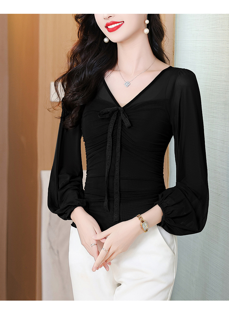 2026 여성 의류 여름 부드러운 바람 레이스업 레이스 자카드 반팔 셔츠 얇고 가벼운 편안함 맨위 여성