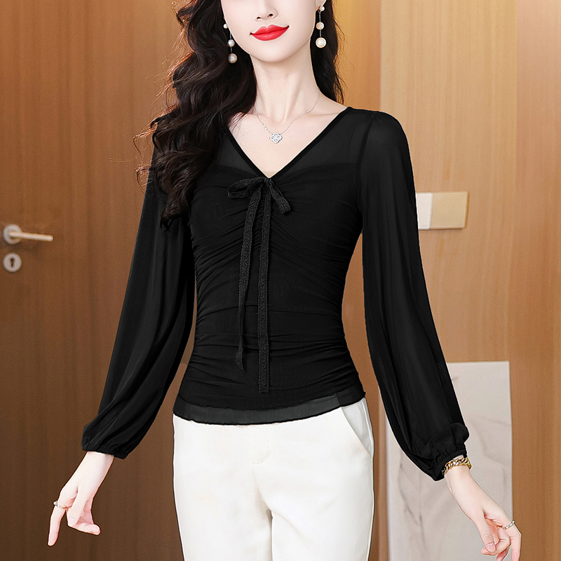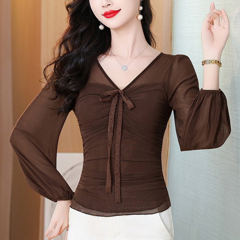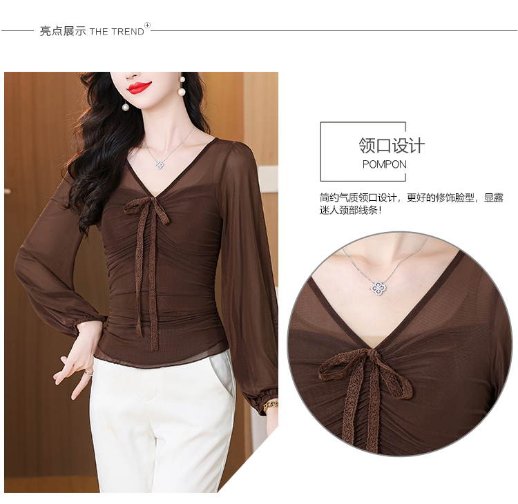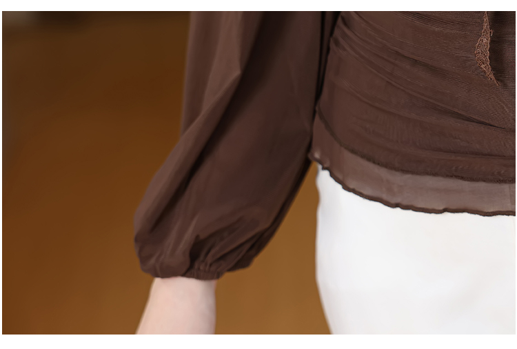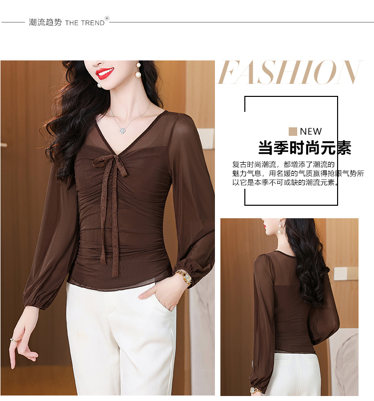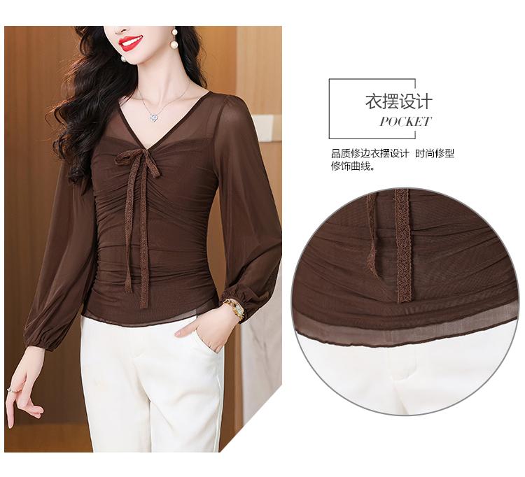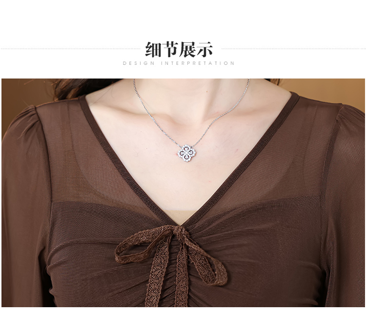 원본 원단 고급 품질 패션 목이버섯 라운드 넥 셔츠 어머니 드레스 표지 고기 디스플레이 패션 다용도 쉬폰 톱