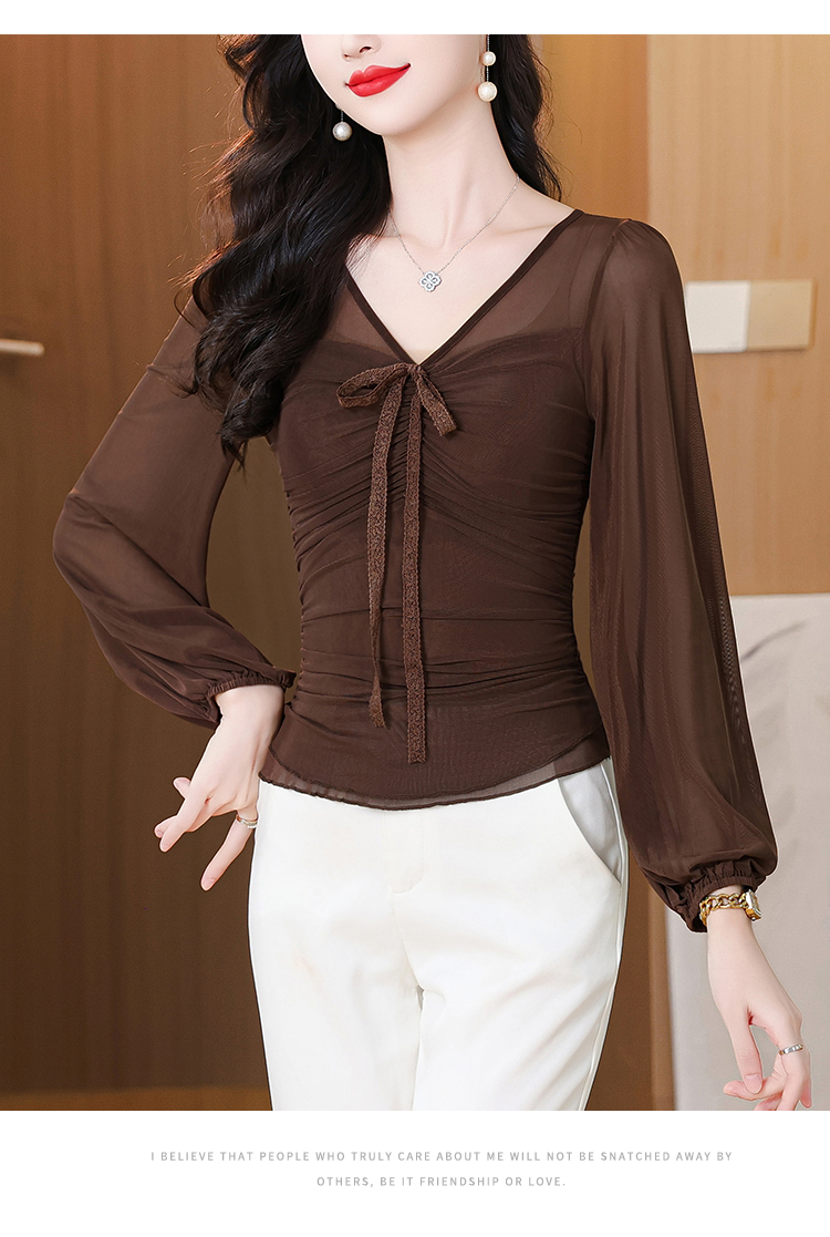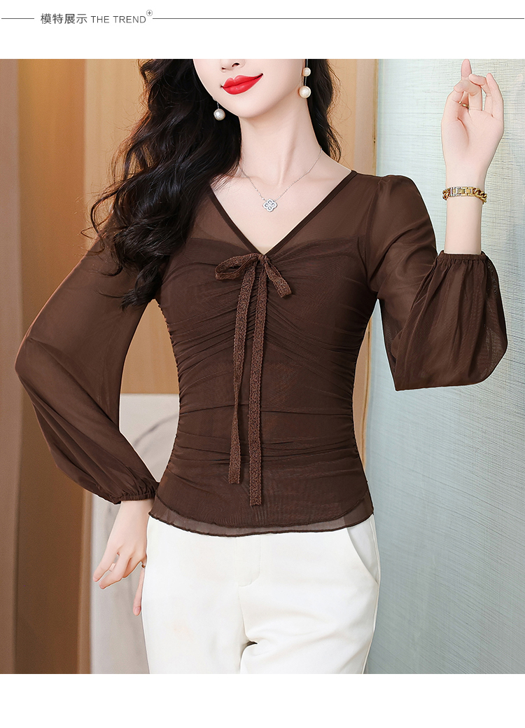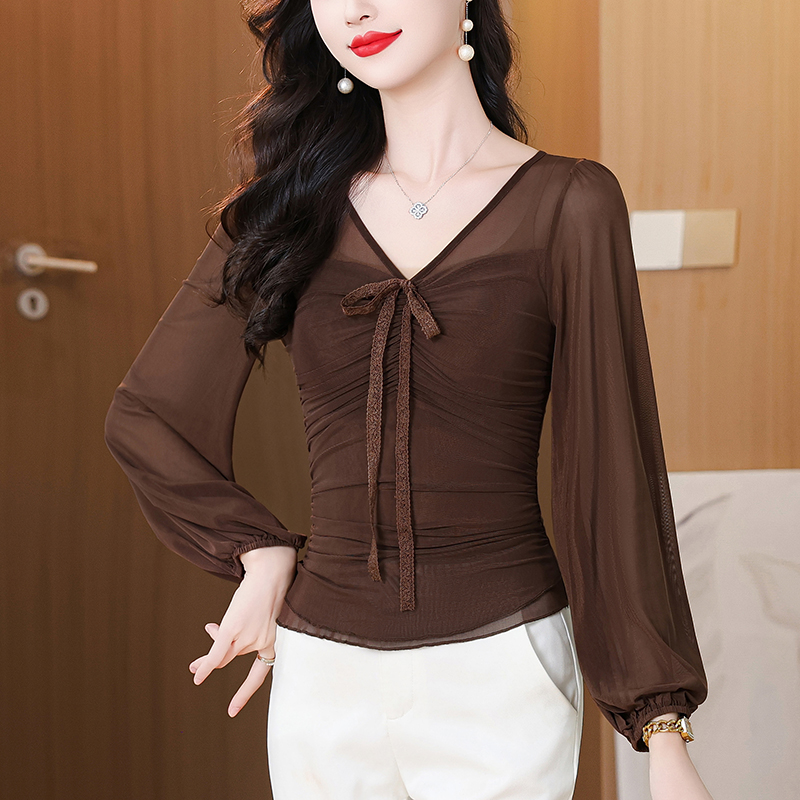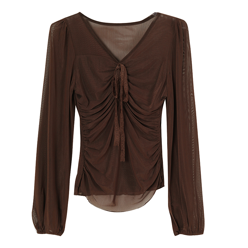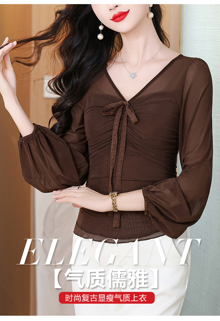 원본 원단 고급 품질 패션 목이버섯 라운드 넥 셔츠 어머니 드레스 표지 고기 디스플레이 패션 다용도 쉬폰 톱